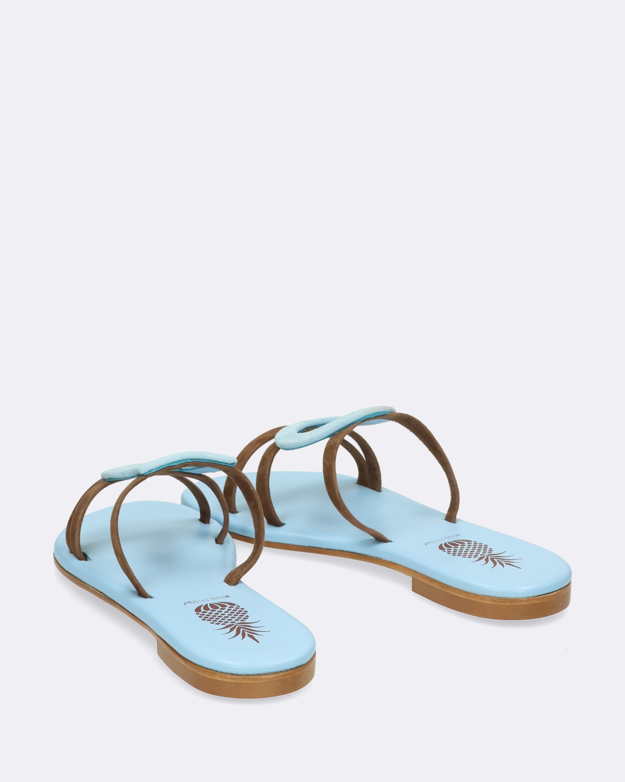 Low sandals in dark brown and light blue suede, 15mm heel, padded leather insole, leather sole, round toe, made in Italy, Ananas Spring Summer 2025 women's collection