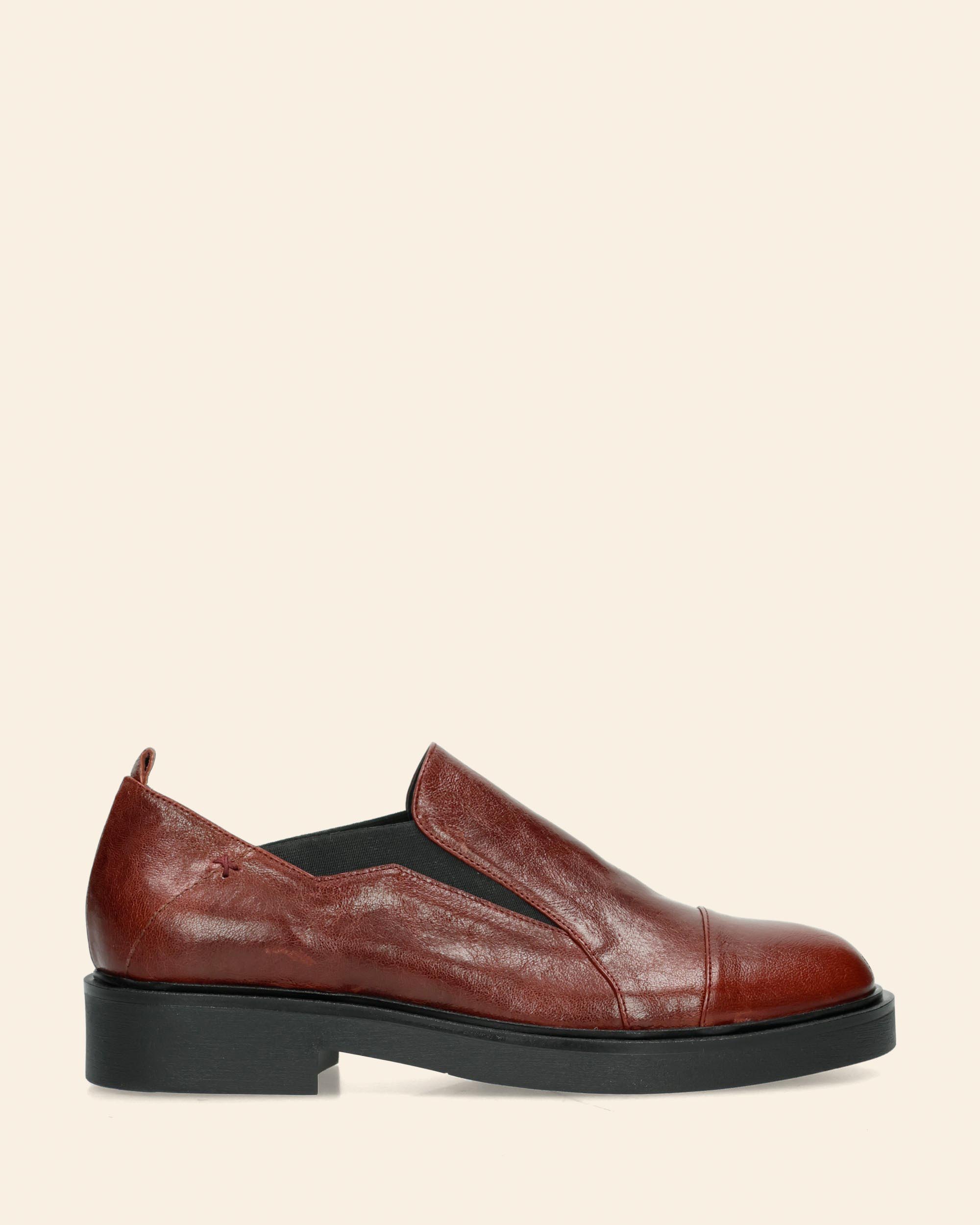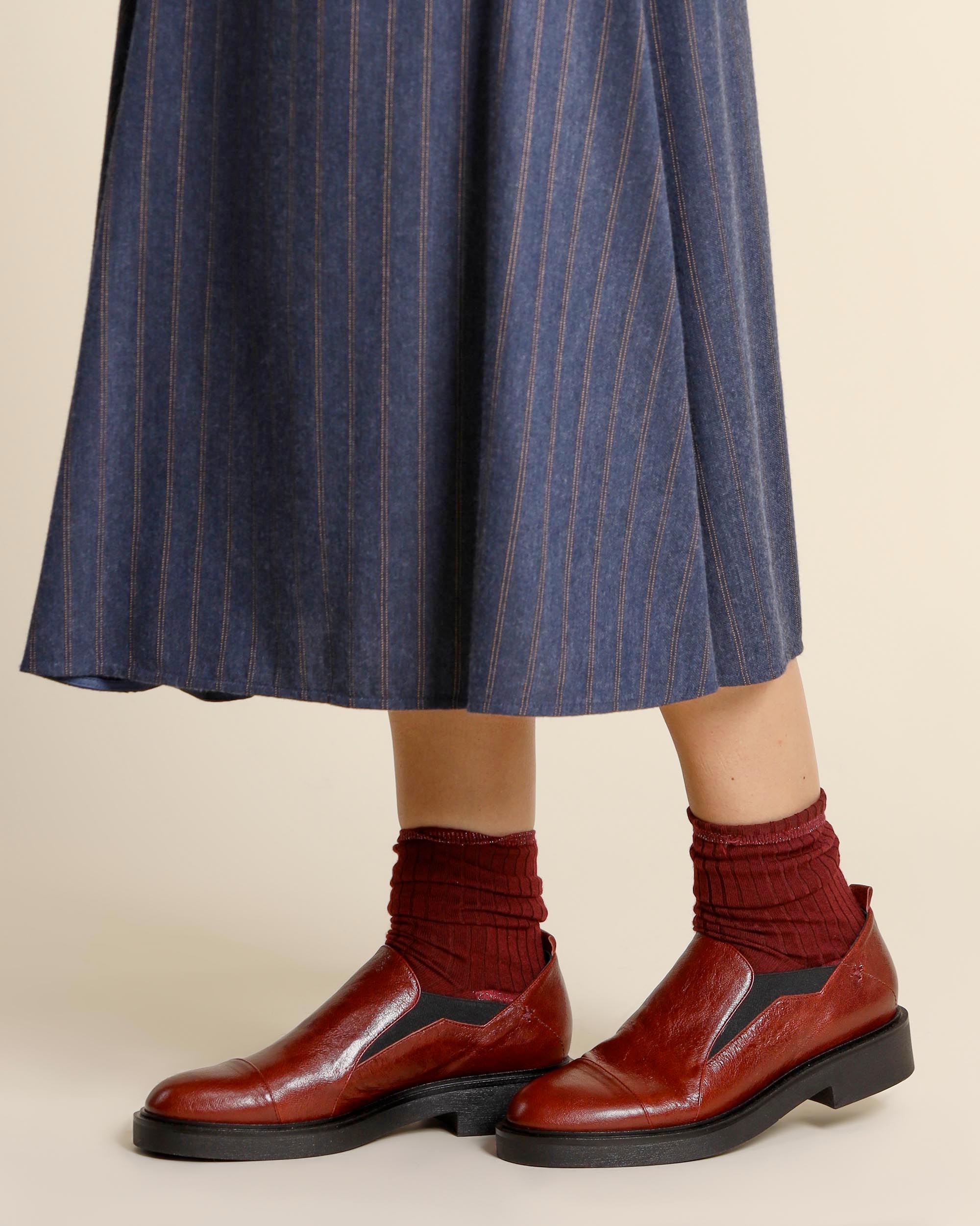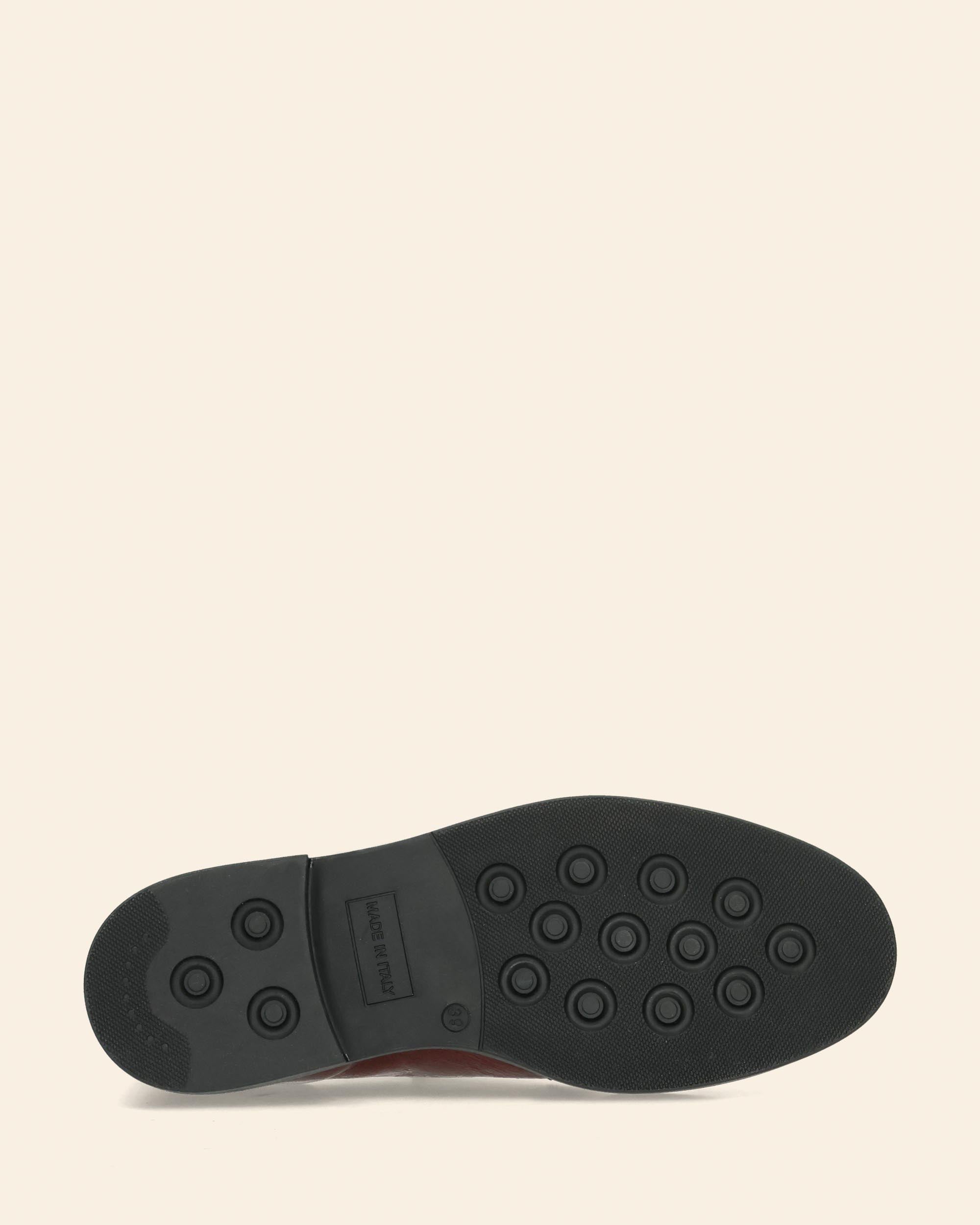 Burgundy leather shoes, contrasting black elastic bands, round toe, matching back strap, 30mm heel, rubber sole, leather insole and lining, made in Italy, Illogica autumn winter 2025/2026 collection