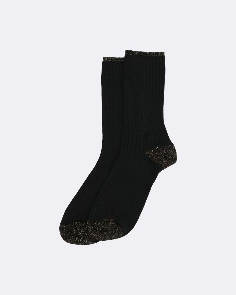 Short socks in black virgin wool and stretch cotton, one size, made in Italy, Alto Milano collection