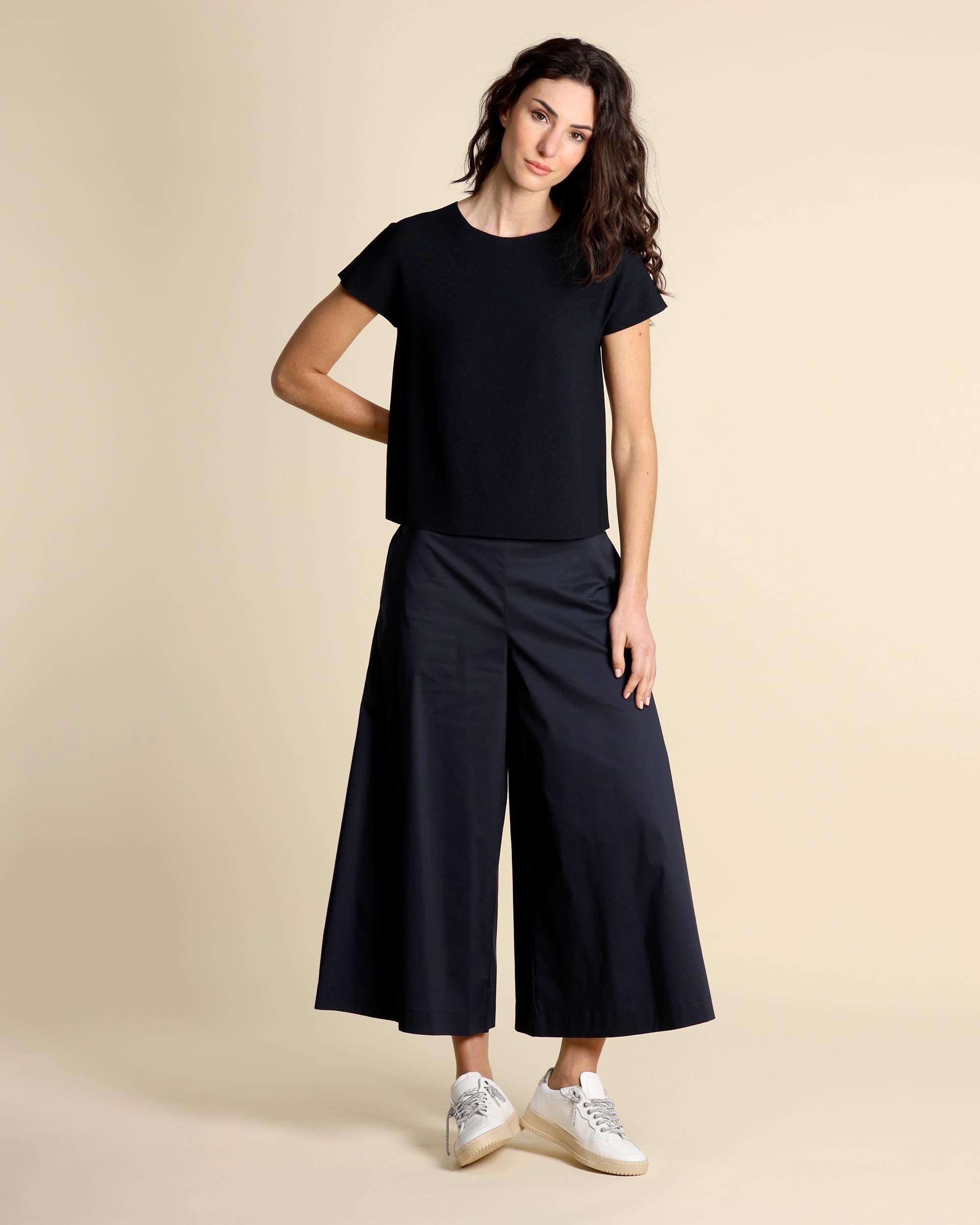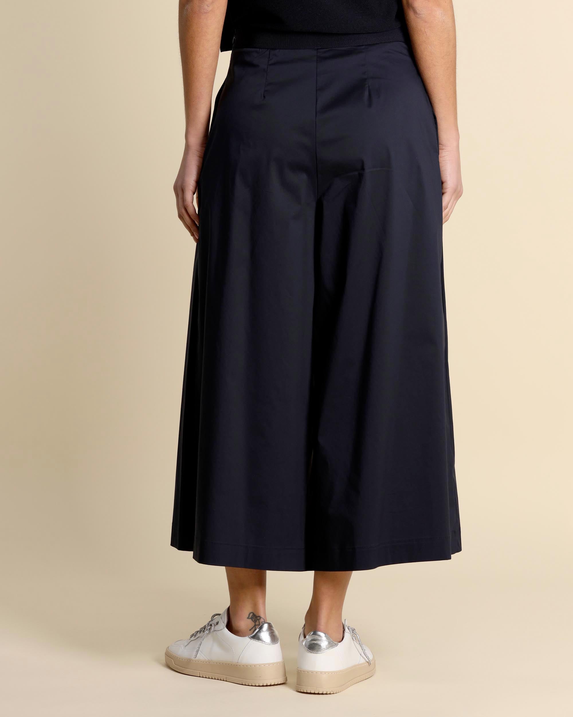 Blue culottes in stretch cotton blend poplin, waist with visible elastic, wide fit, inset pockets on the side, made in Italy, the model is wearing a size 42, the model has the following measurements: height 178, bust 86, waist 65, hips 93, Liviana Conti women's collection Spring Summer 2026
