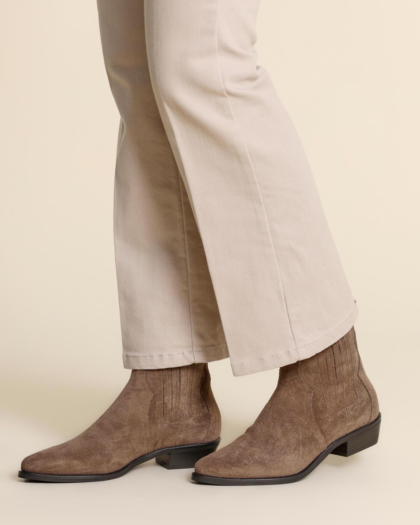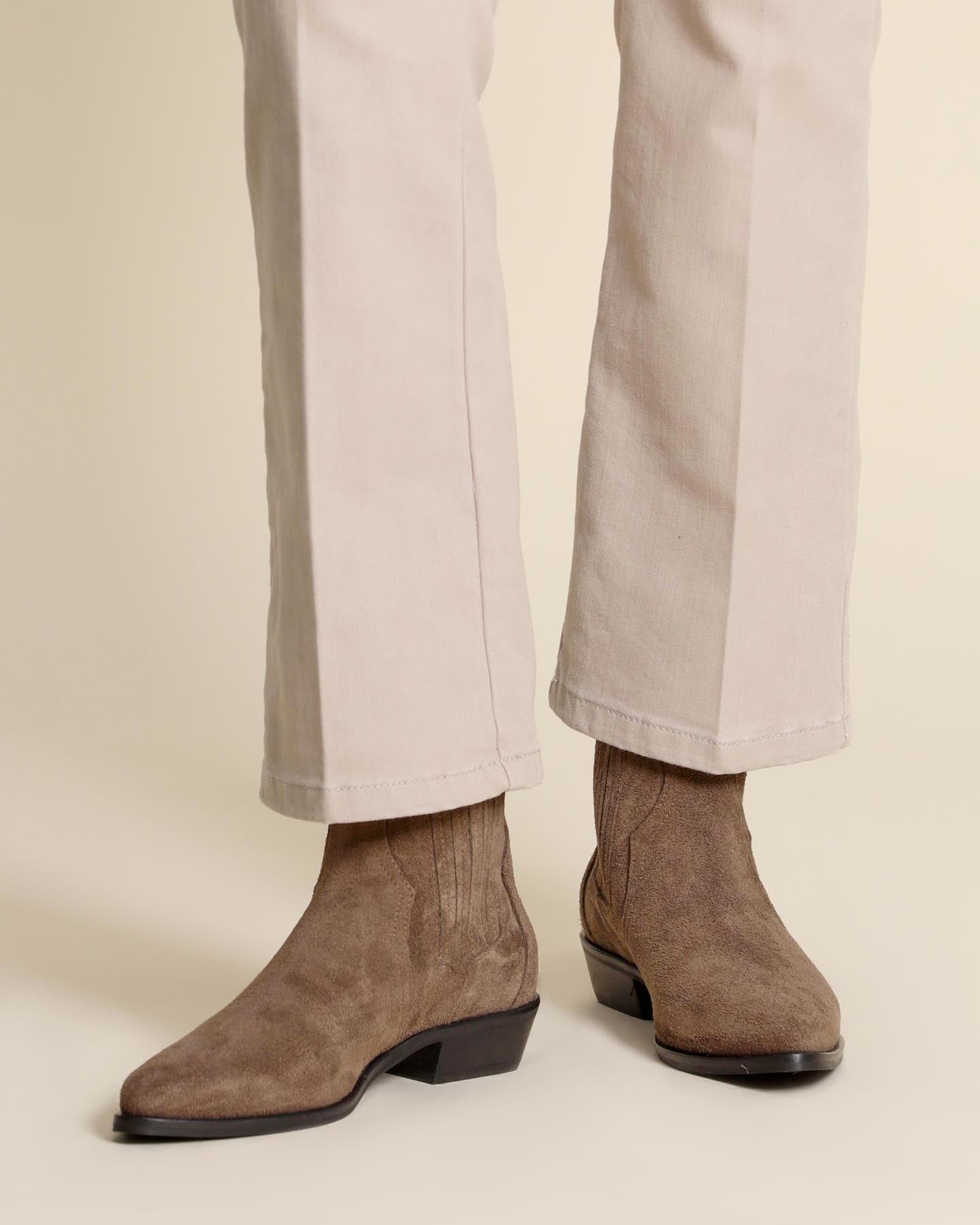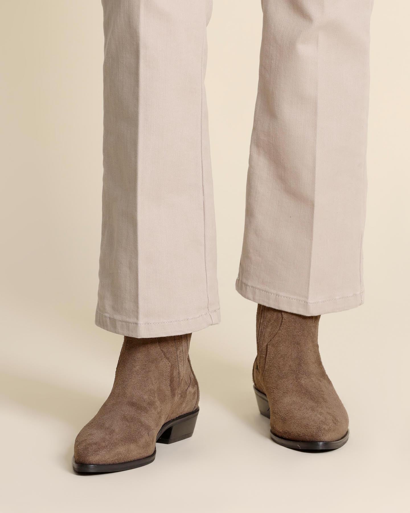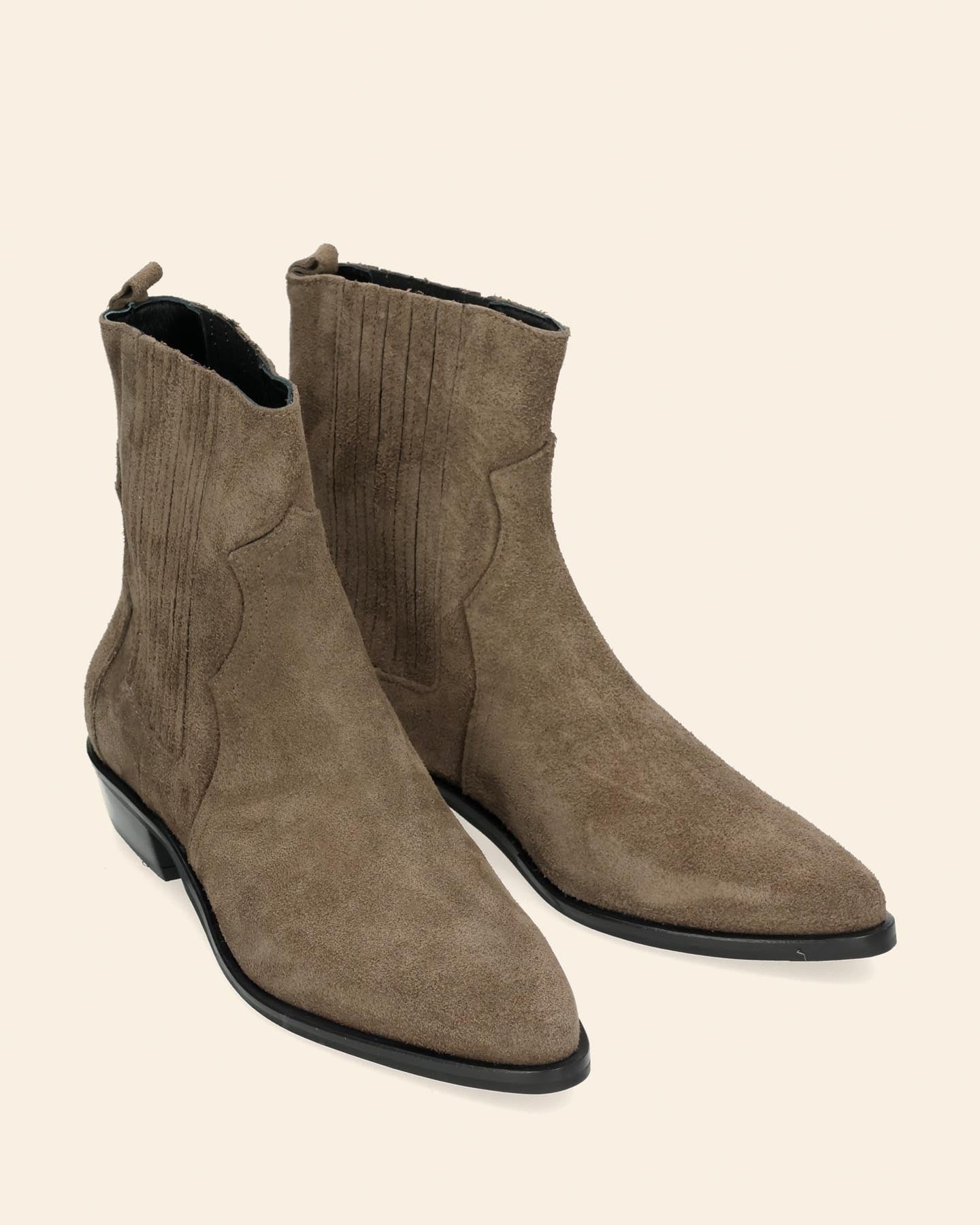 Stivaletti in velour taupe, suola in gomma, sottopiede in pelle, tacco 35mm, elastici nascosti sui lati, made in Italy, collezione donna Imma Autunno Inverno 2025/2026