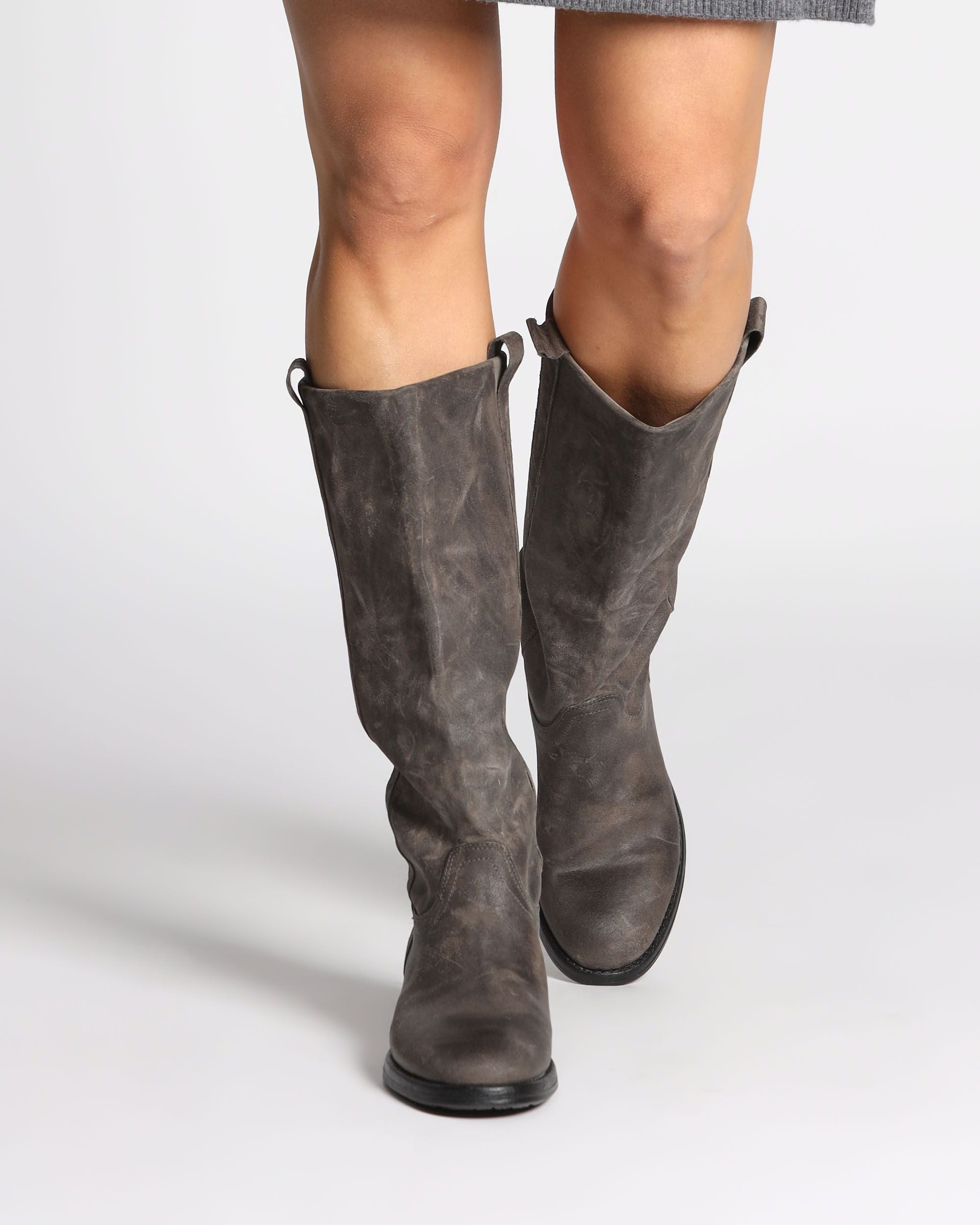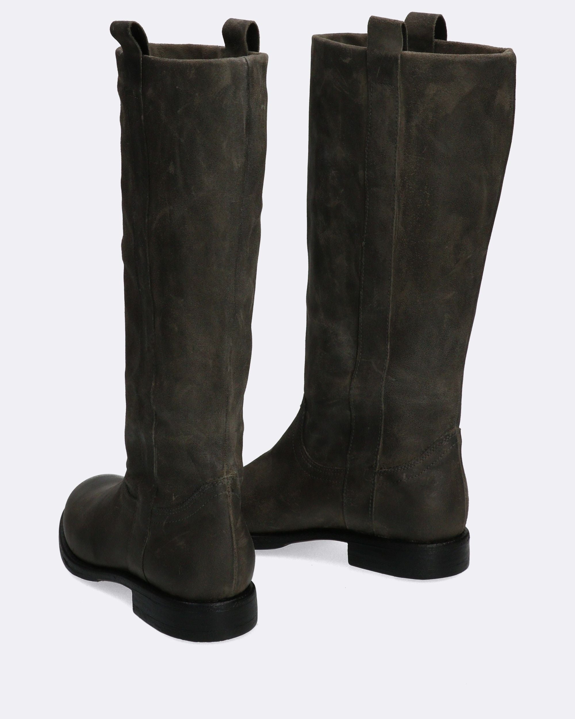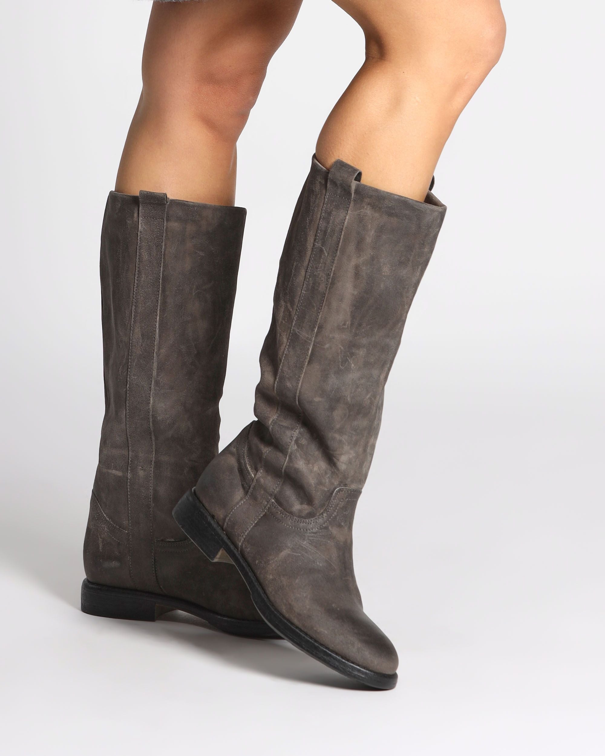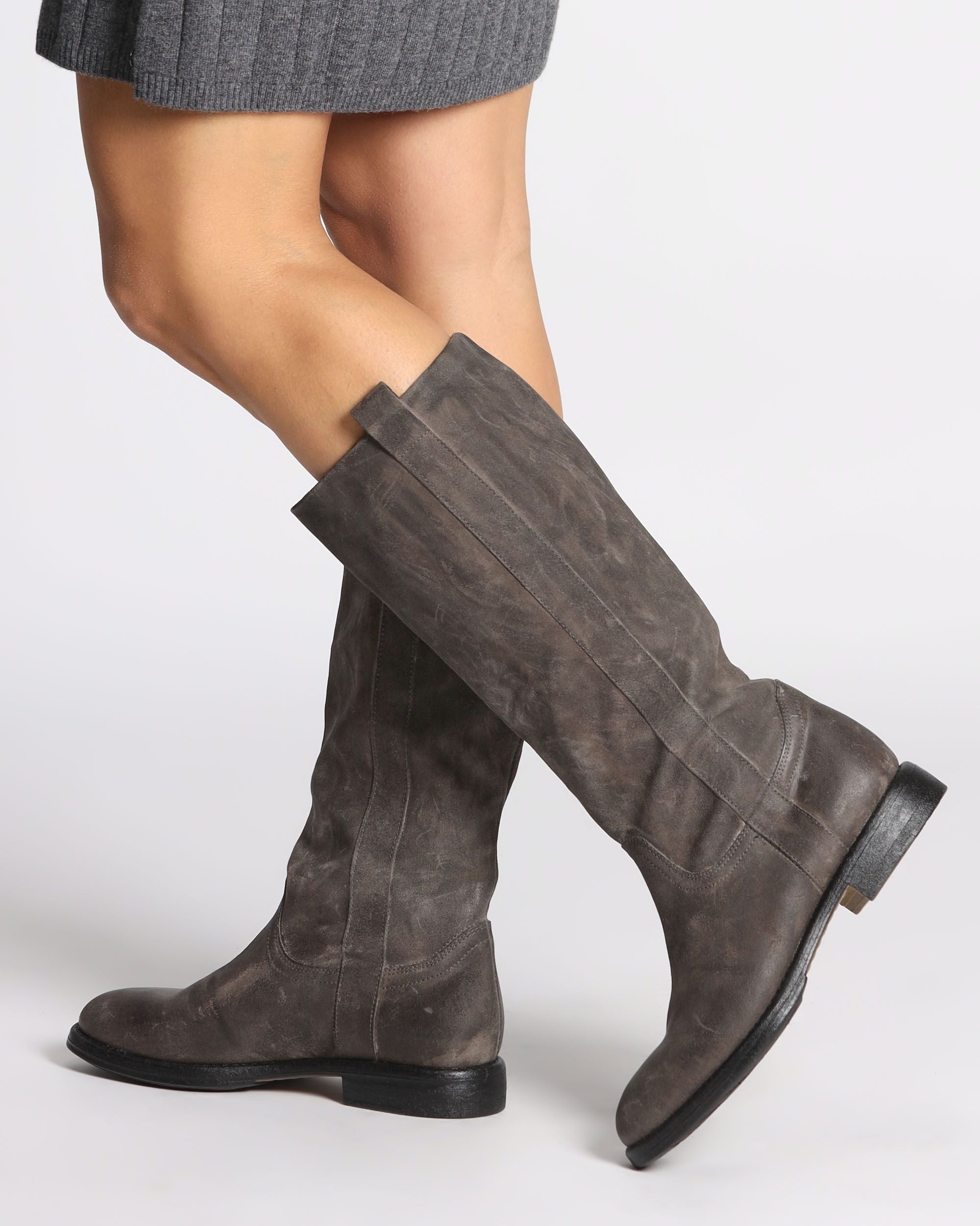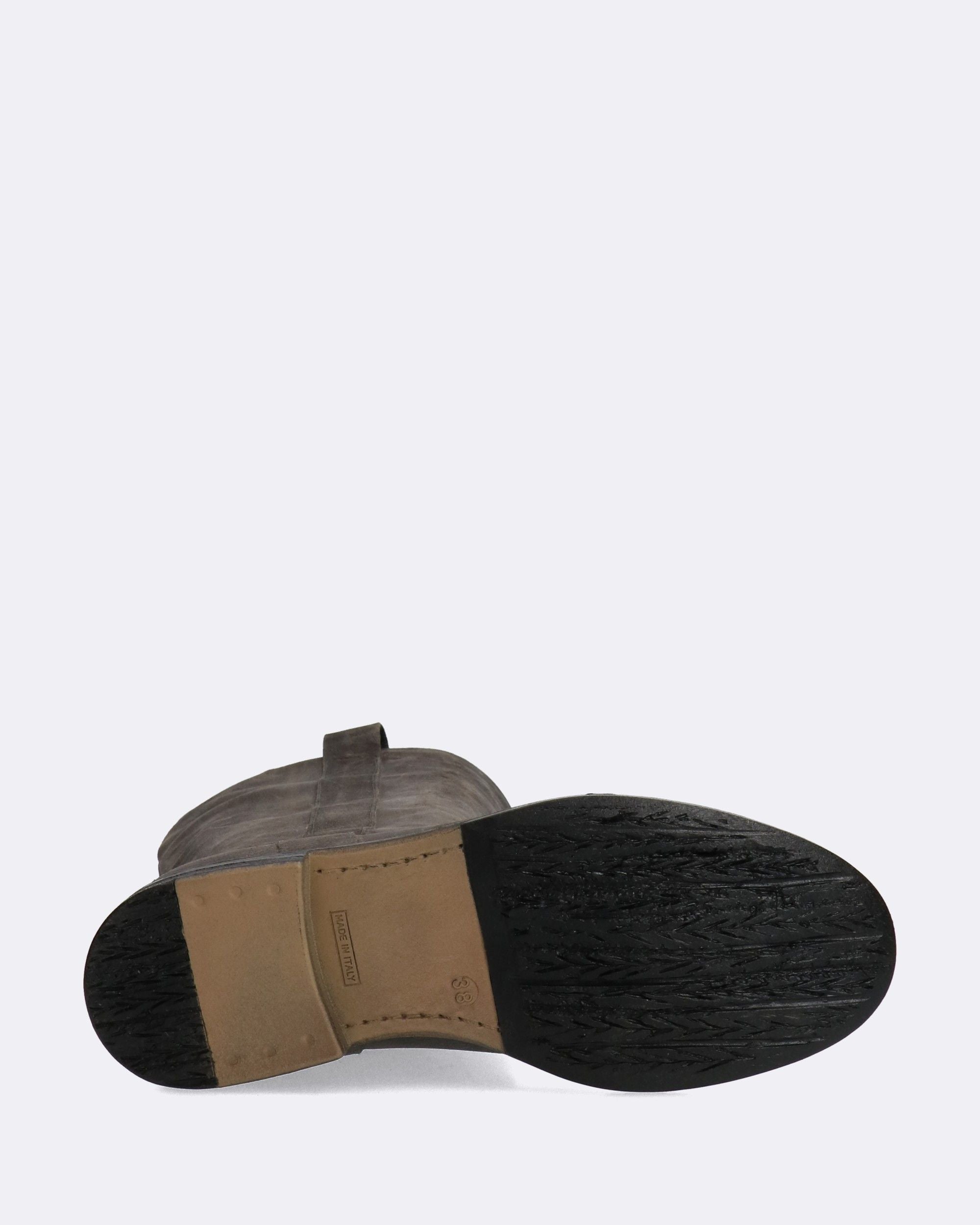 Stivali camperos grigio antracite in crosta, tiranti laterali, tacco 25mm, suola in gomma, sottopiede in pelle, made in Italy, collezione donna Creative Autunno Inverno 2024/25