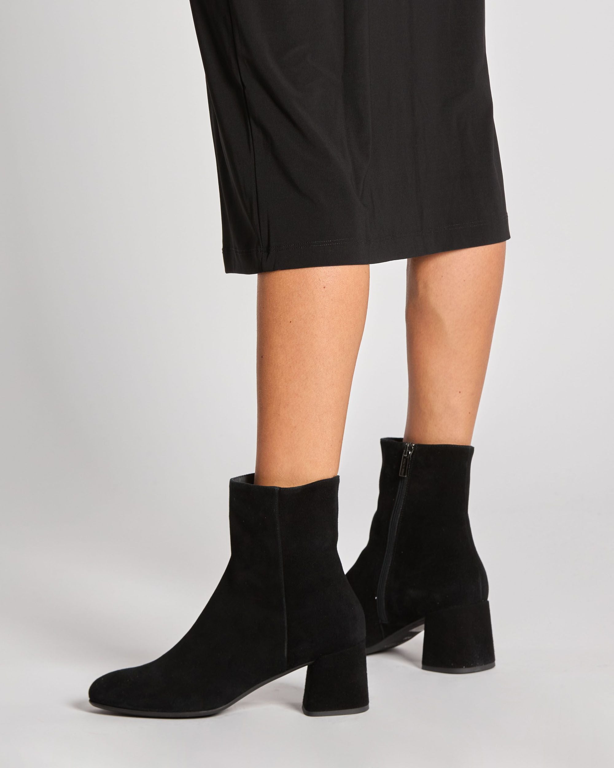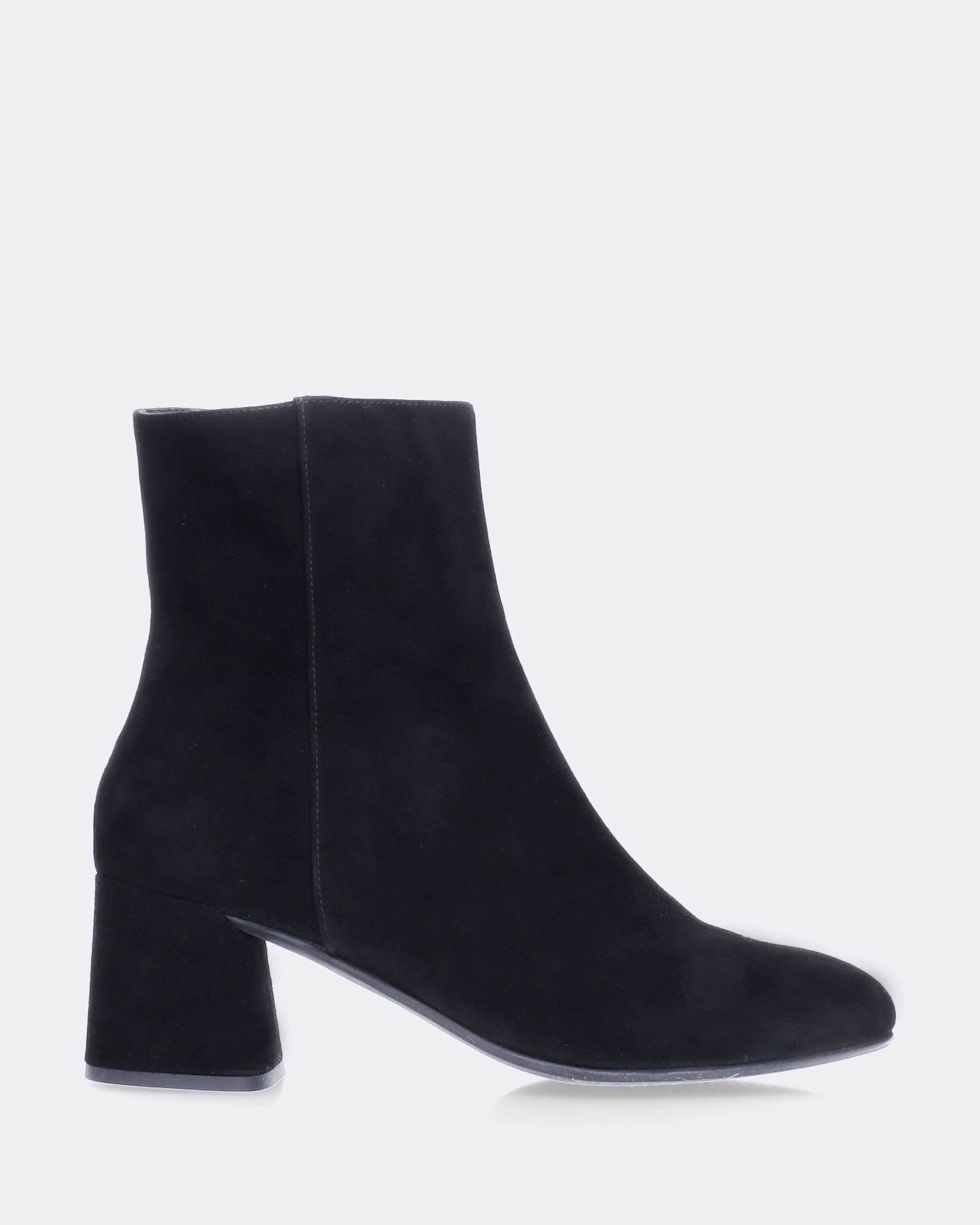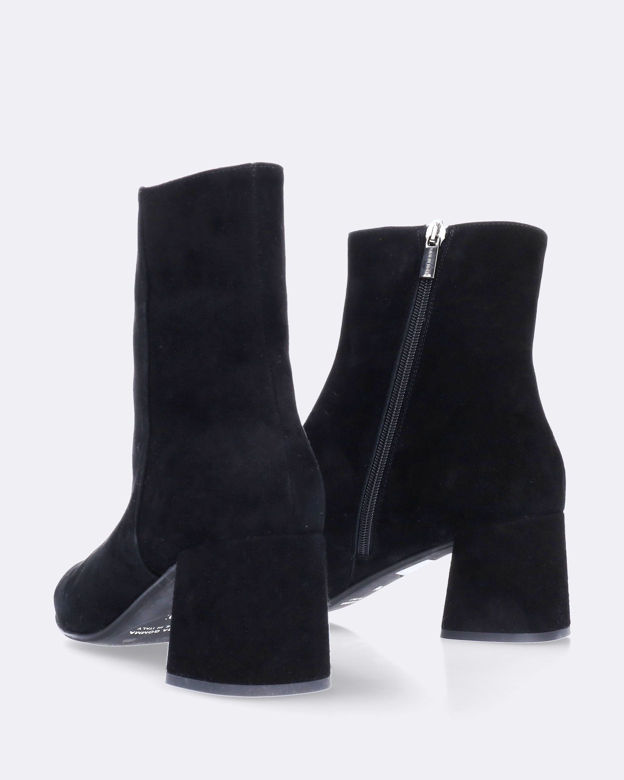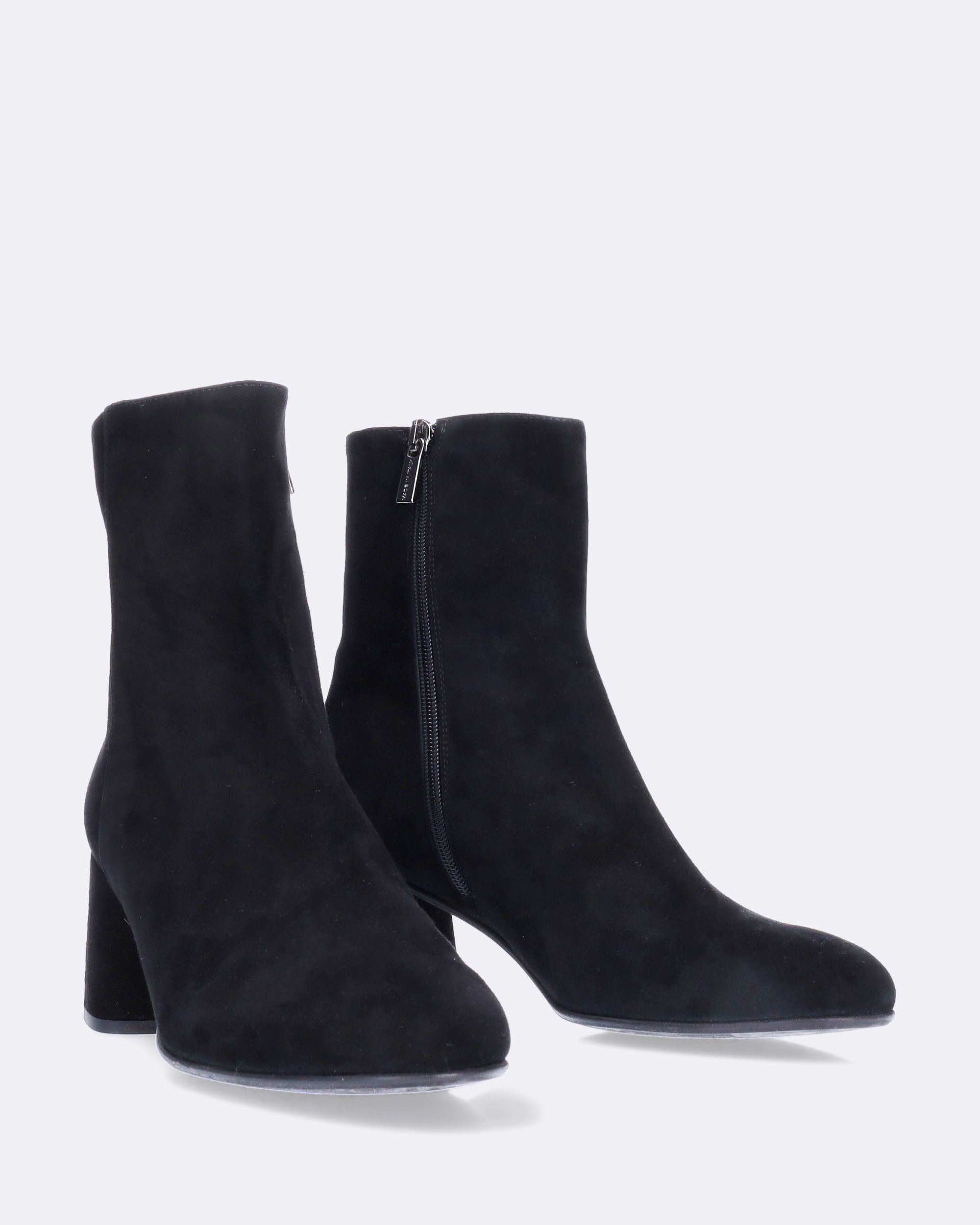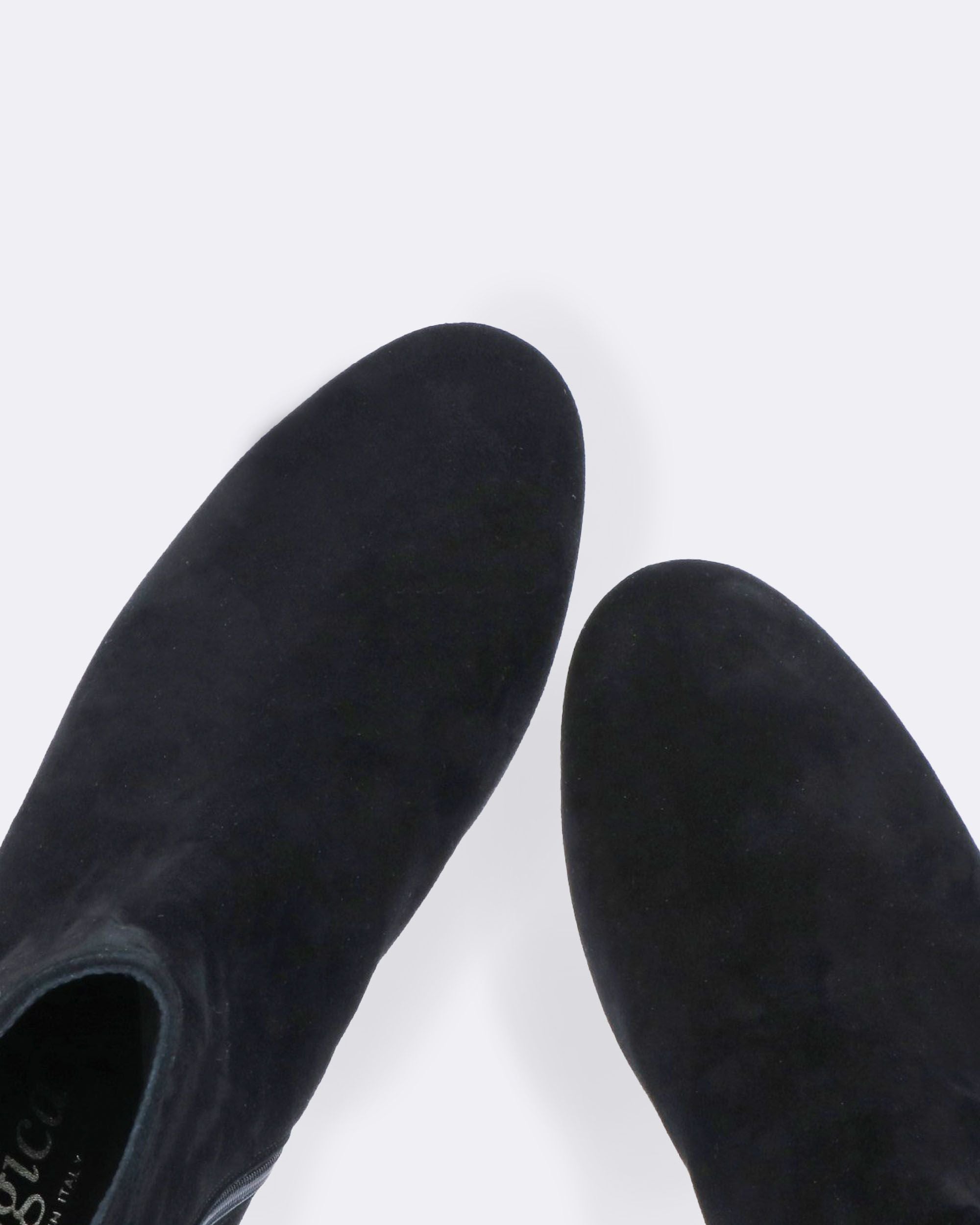 Stivaletti neri in pelle scamosciata, zip laterale, tacco ricoperto 70mm, suola in gomma, fodera in pelle, sottopiede in pelle, made in Italy, collezione donna Illogica Autunno Inverno 2024/25