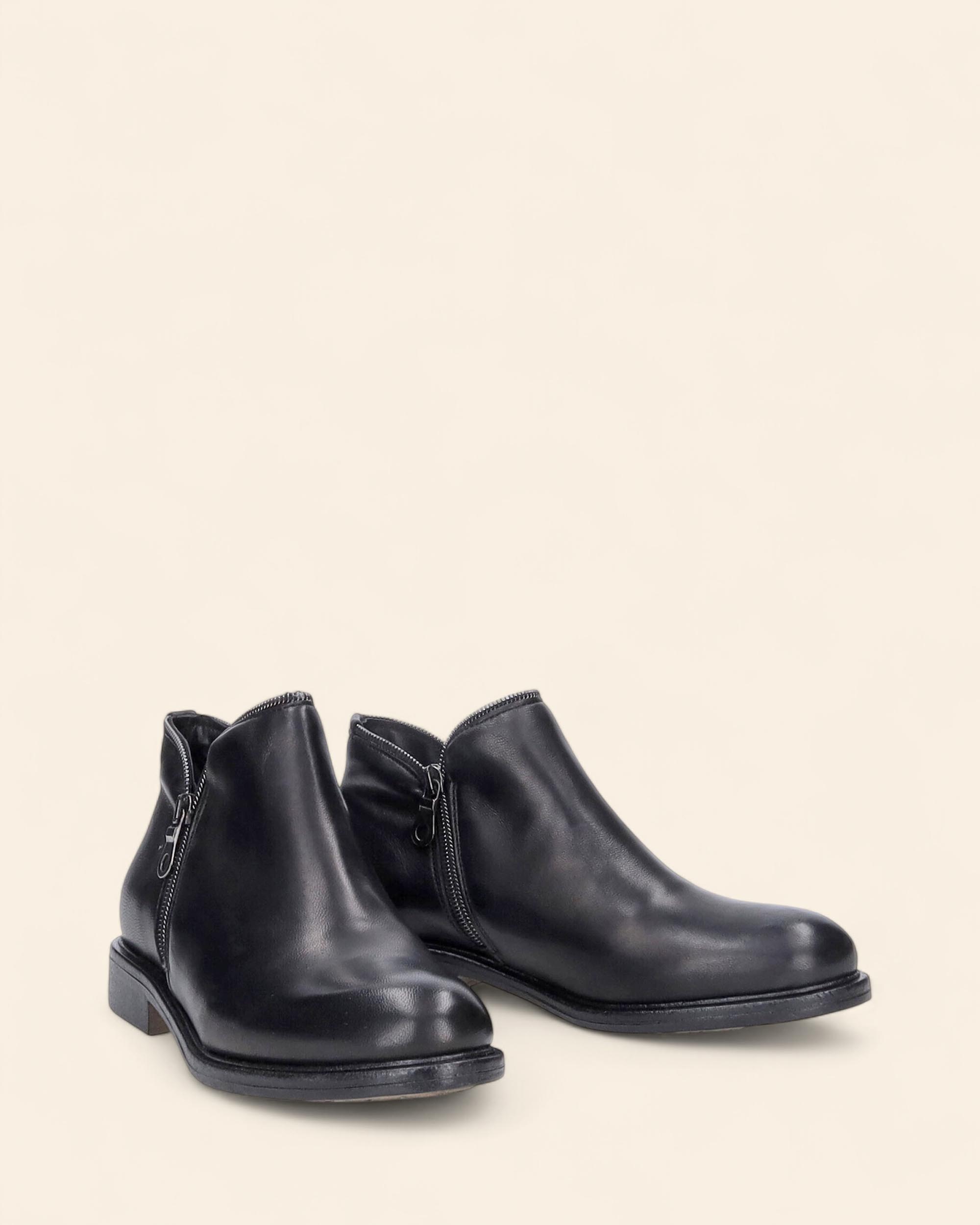 Tronchetti neri in pelle, zip laterali, tacco 30mm, suola in gomma, sottopiede in pelle, fodera in pelle, made in Italy, collezione donna Creative Autunno Inverno 2025/2026