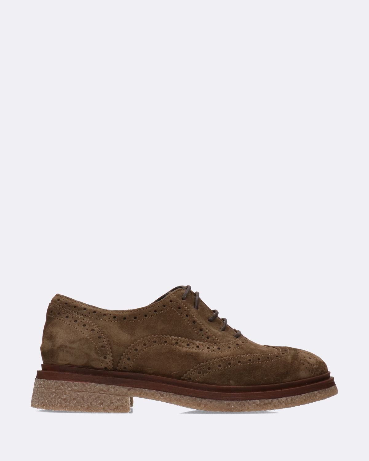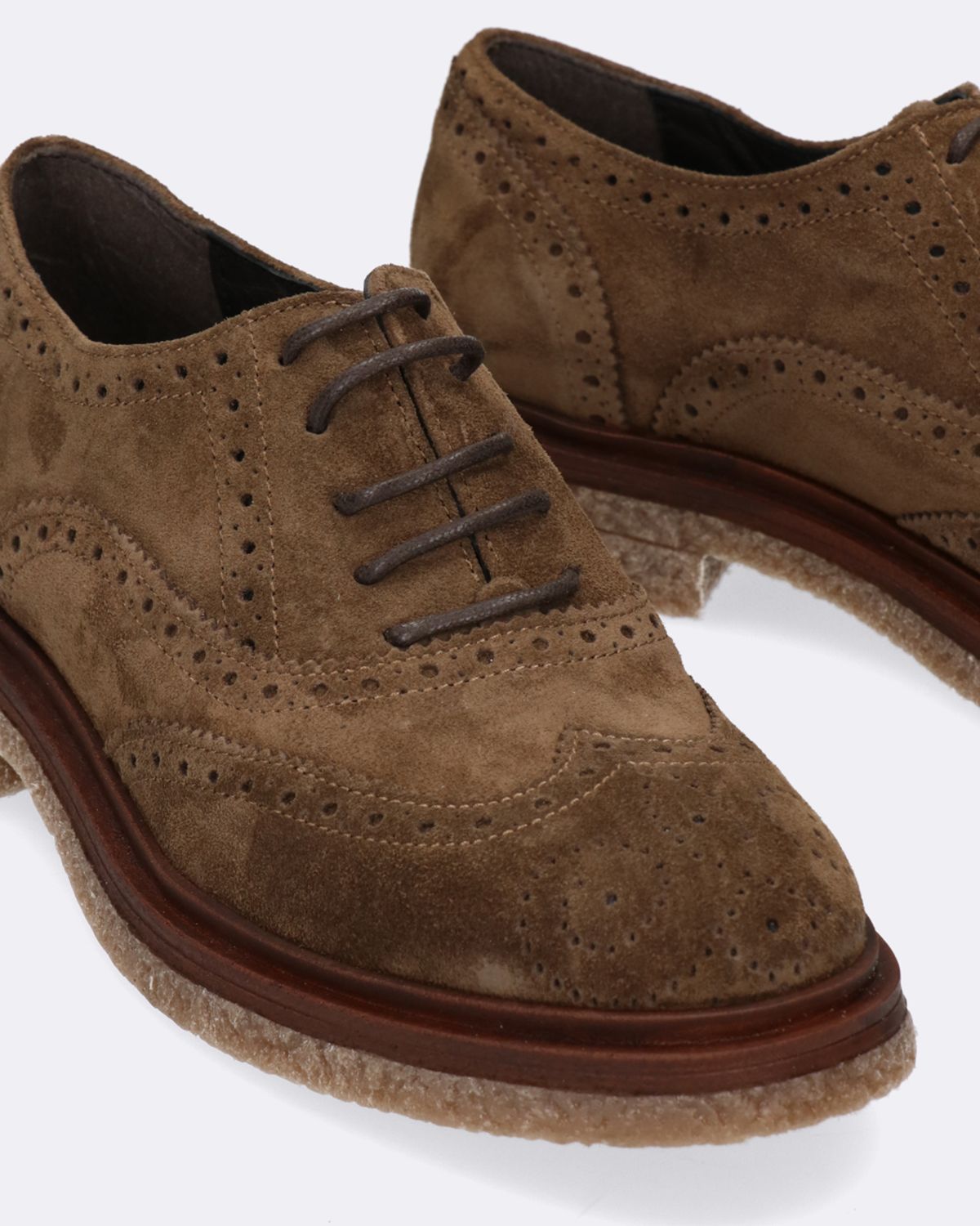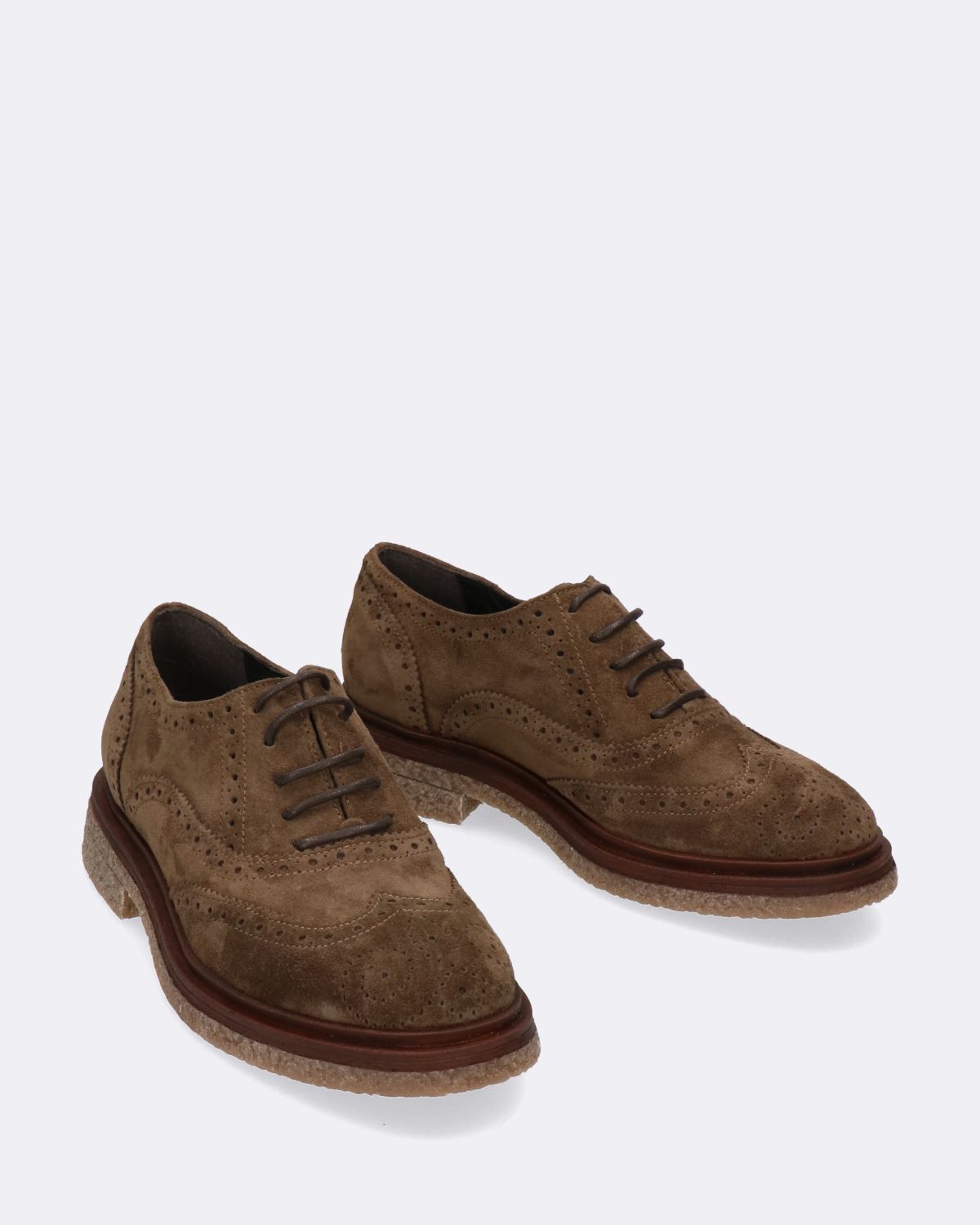 Stringate in pelle scamosciata color tortora, conciata esclusivamente al vegetale, suola in gomma, tacco 30mm, soletta in pelle, lavorazione a coda di rondine, lavorazione artigianale, made in Italy, collezione donna Creative Autunno Inverno 2022/23