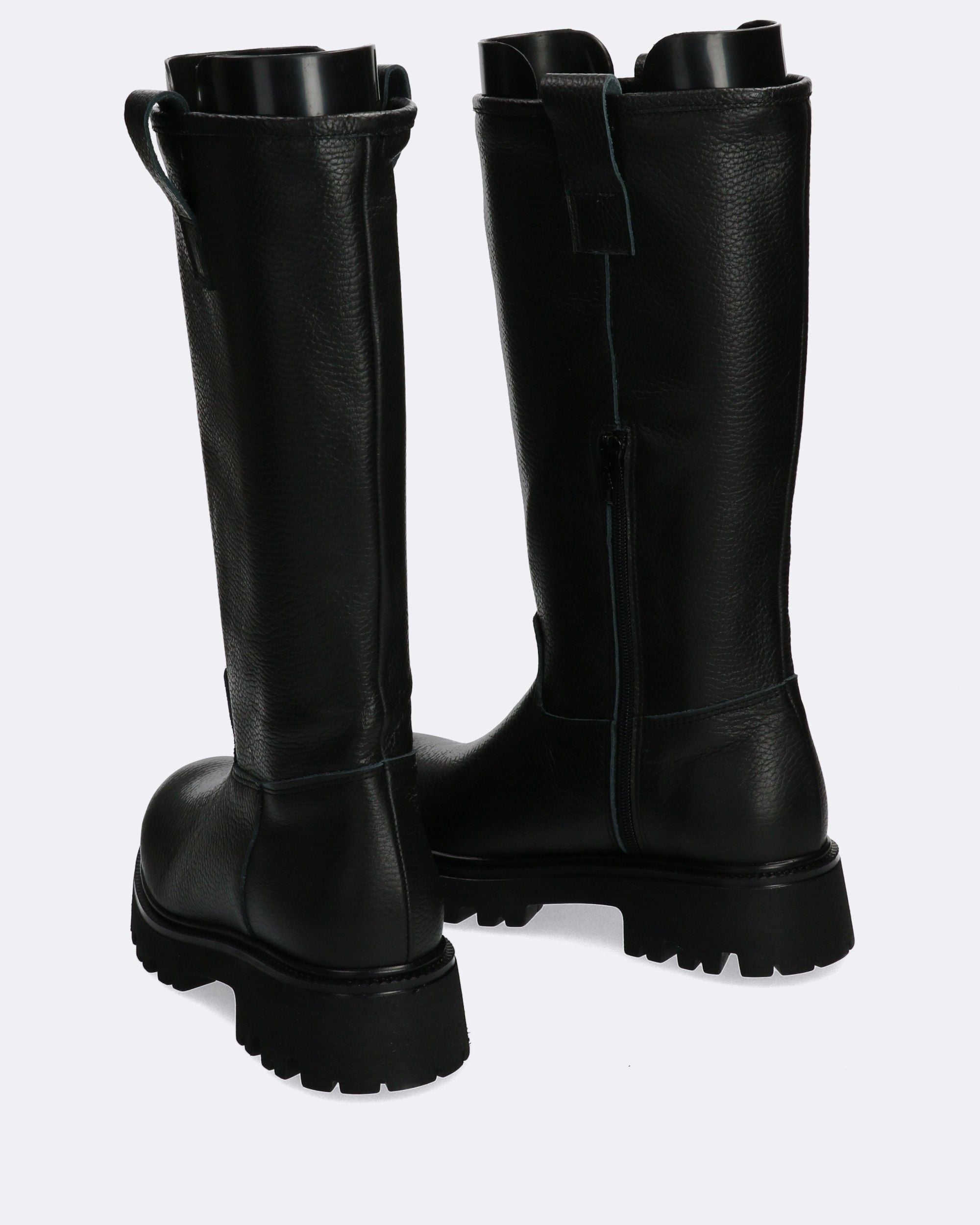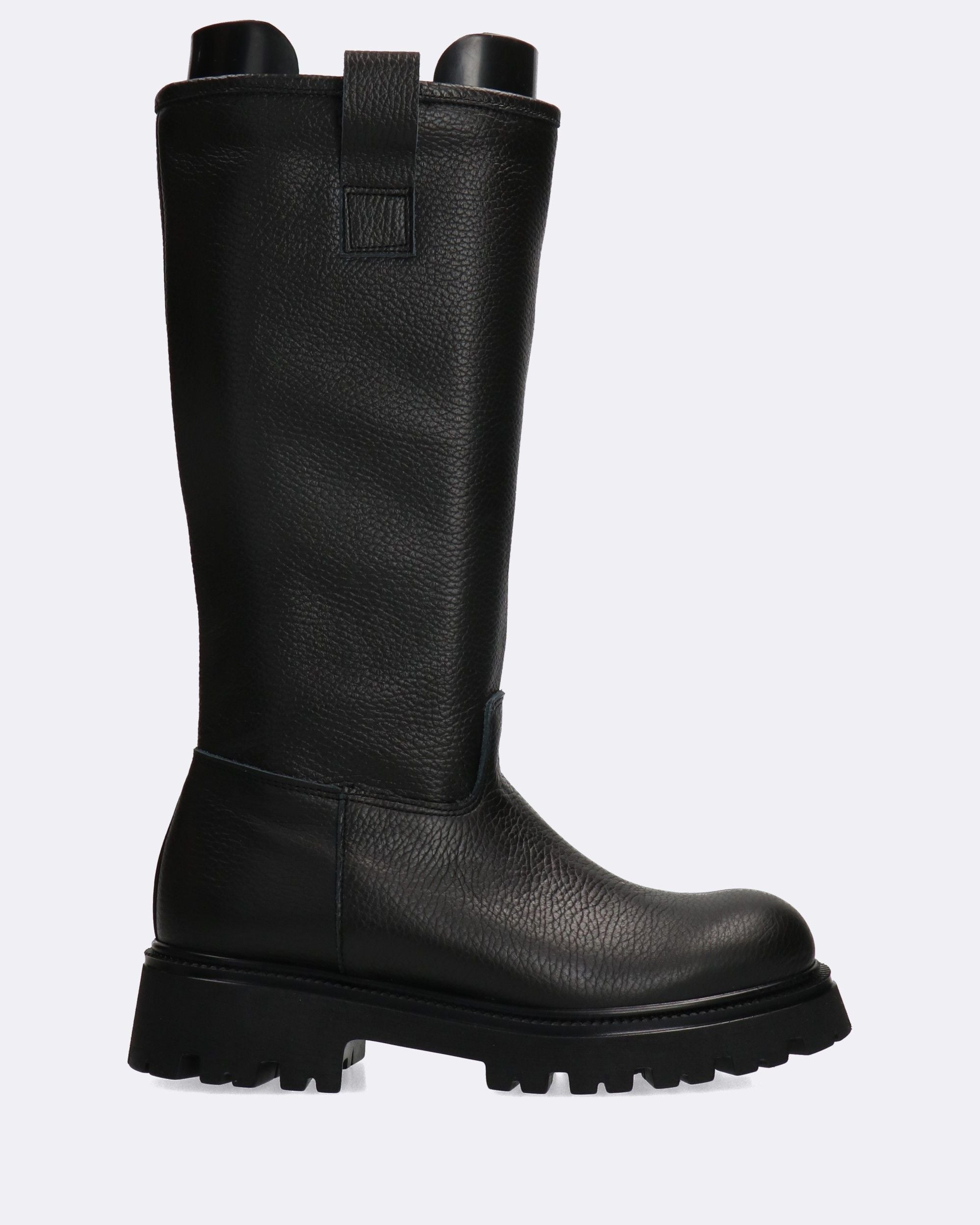 Stivali neri in pelle martellata, chiusura laterale con zip, tacco 40mm, suola in gomma, sottopiede in pelle, tiranti laterali, made in Italy, collezione donna Creative Autunno Inverno 2024/25