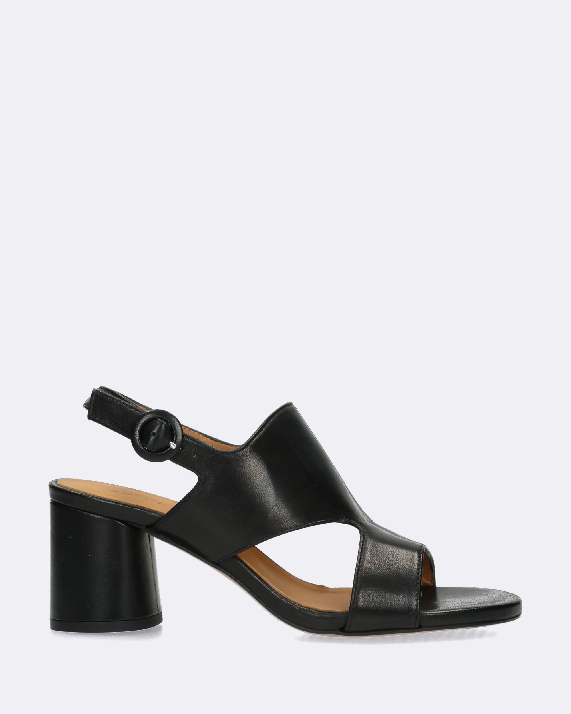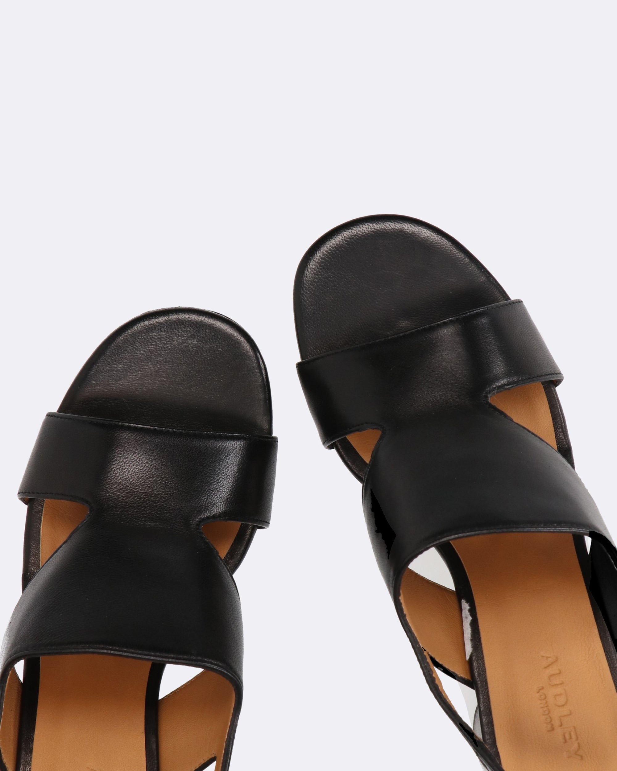 Sandali neri con tacco in pelle, sottopiede in pelle imbottito, suola in cuoio, tacco ricoperto 60mm, cinturino regolabile con fibbia ricoperta, collezione donna Audley London Primavera Estate 2025