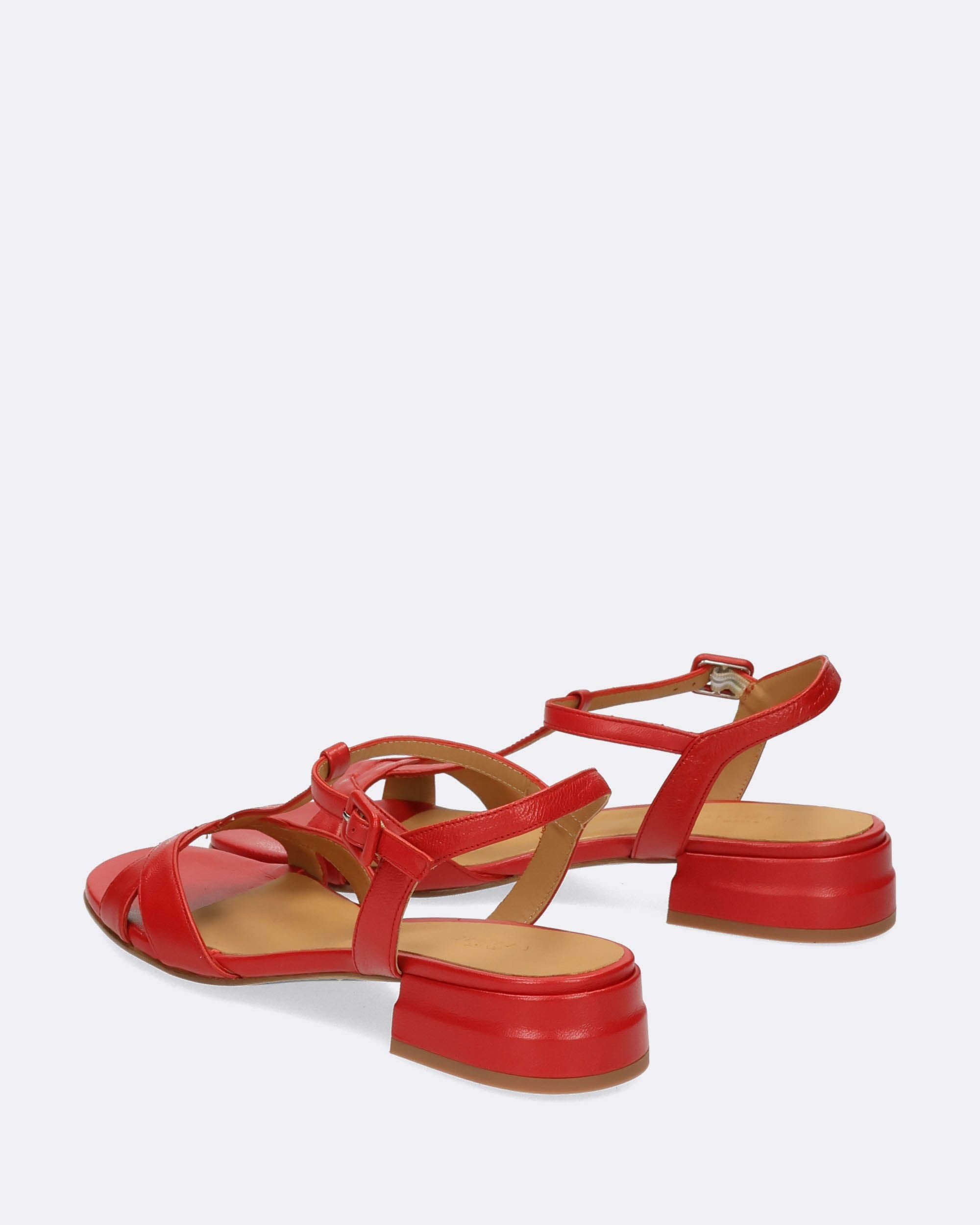 Sandali rossi in pelle, sottopiede in pelle, suola in cuoio, tacco ricoperto 30mm, cinturino regolabile con fibbia ricoperta, collezione donna Audley London Primavera Estate 2025