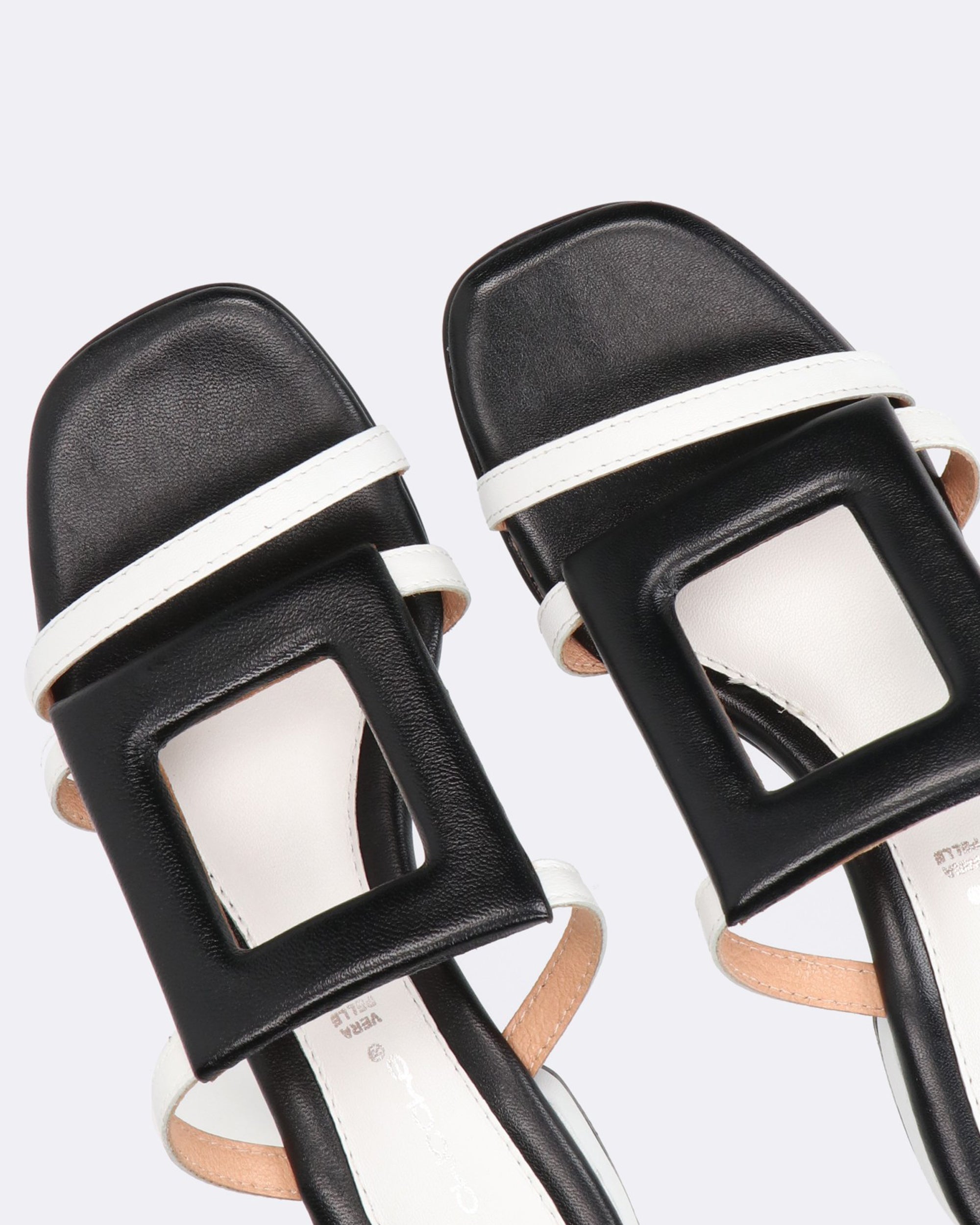 Sandali in pelle bianca con dettaglio in pelle nera, sottopiede in pelle, tacco ricoperto 30mm, suola in cuoio, collezione donna Le Chicche Primavera Estate 2025