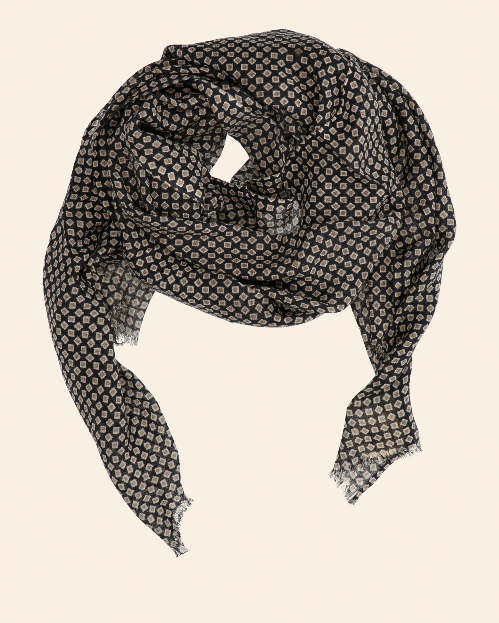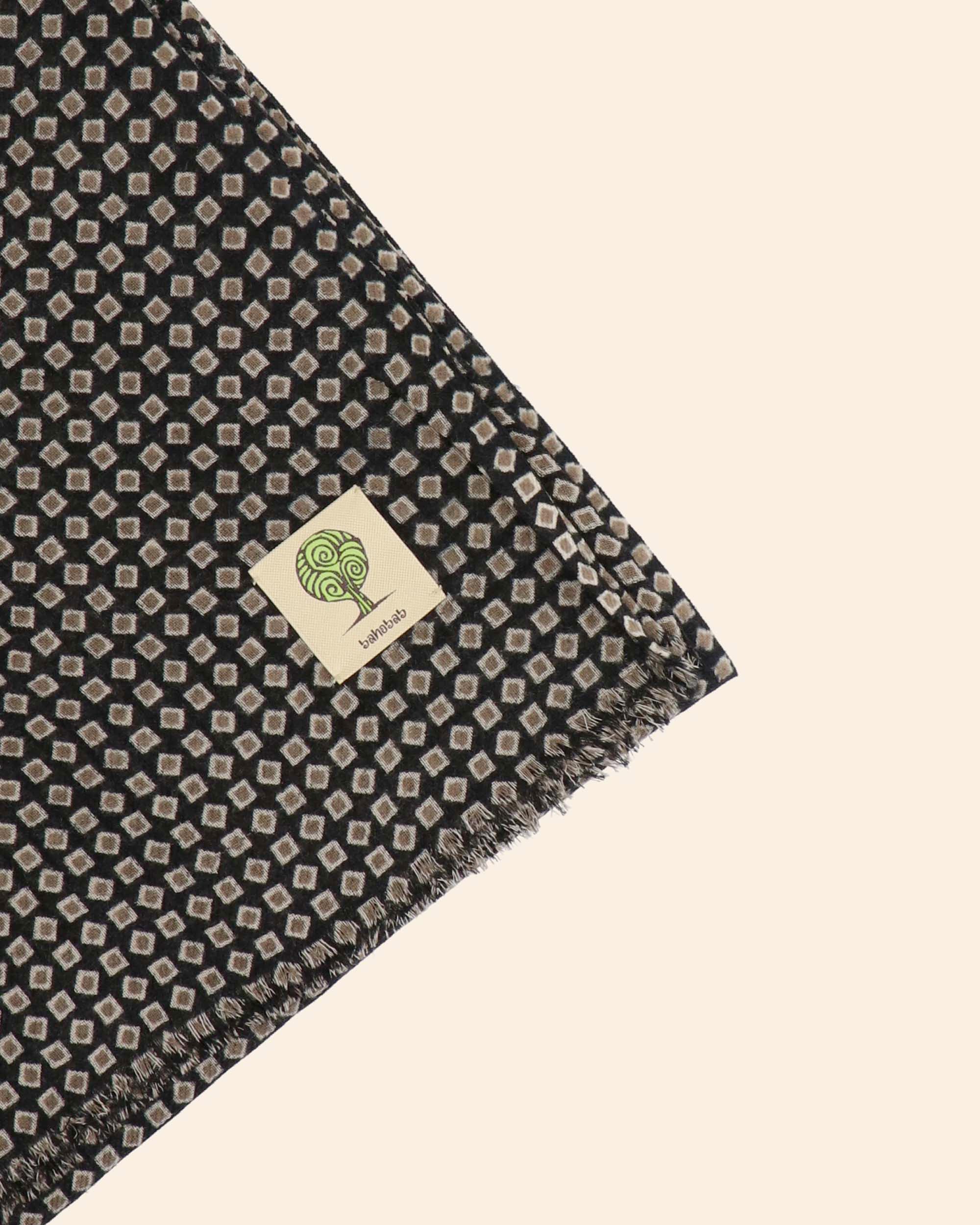 Stola in 100% lana, misura 180x70, fantasia nero e marrone, collezione autunno inverno Bahobab 2025/2026