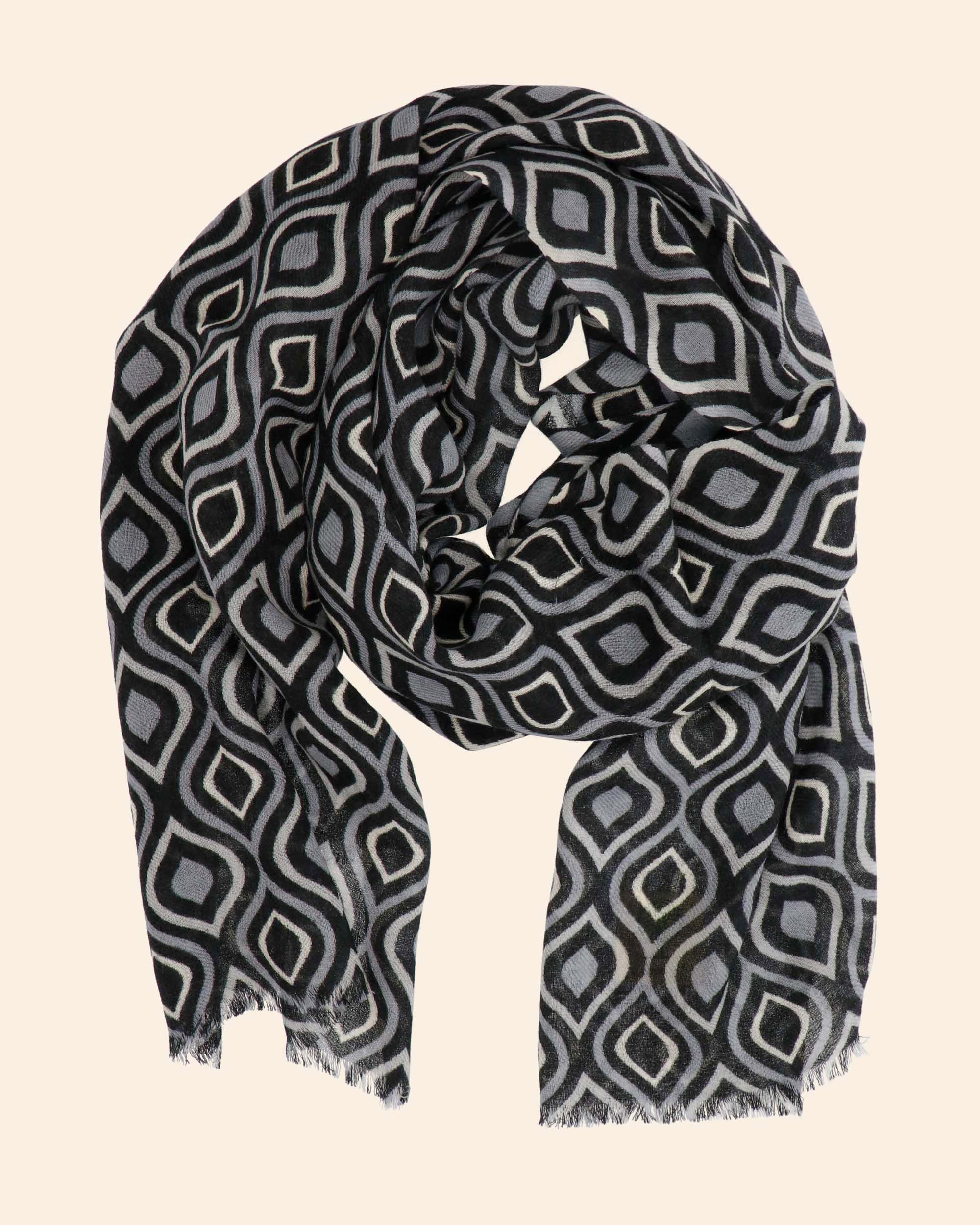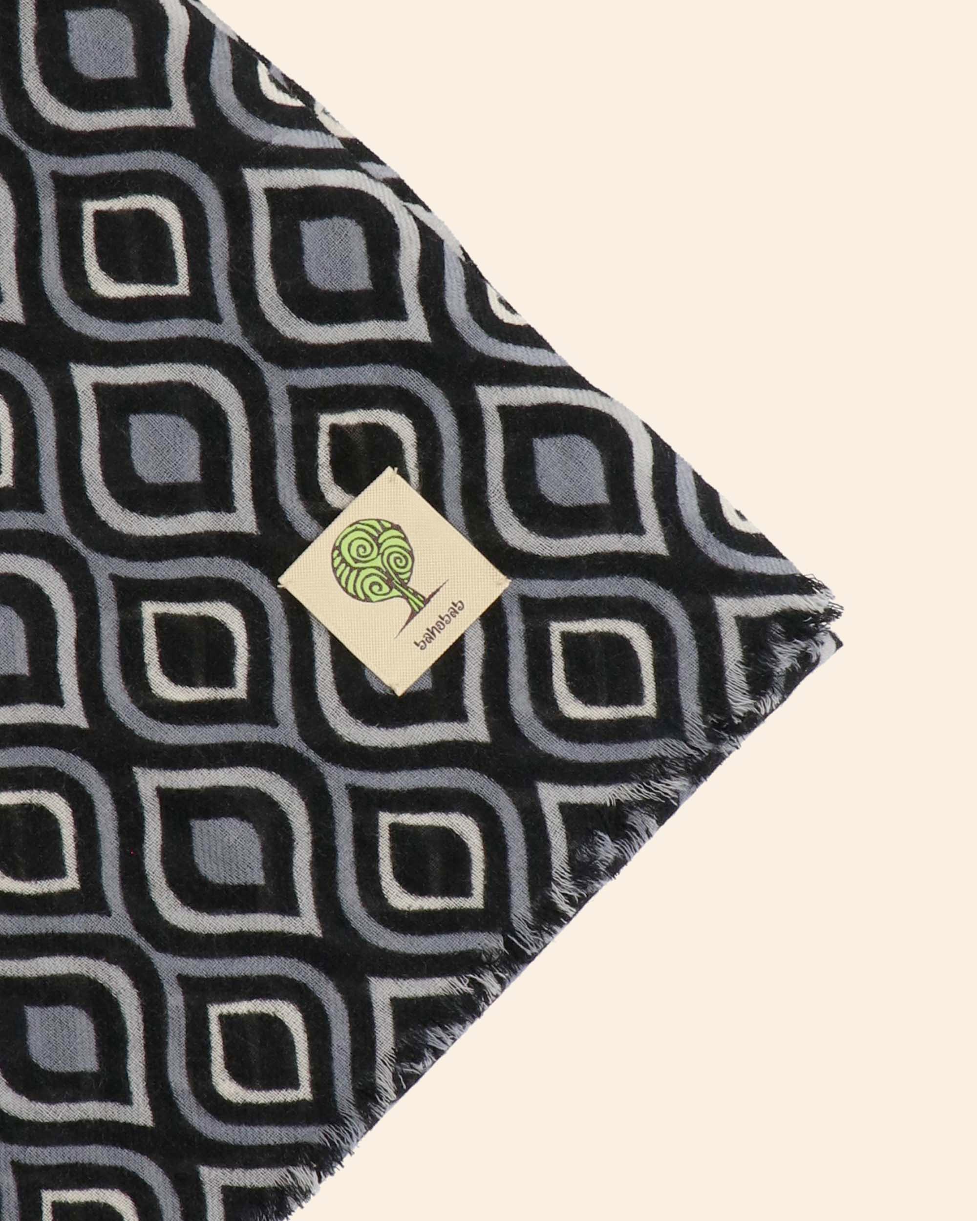 Stola in 100% lana, misura 180x70, fantasia geometrica in bianco e nero, collezione autunno inverno Bahobab 2025/2026