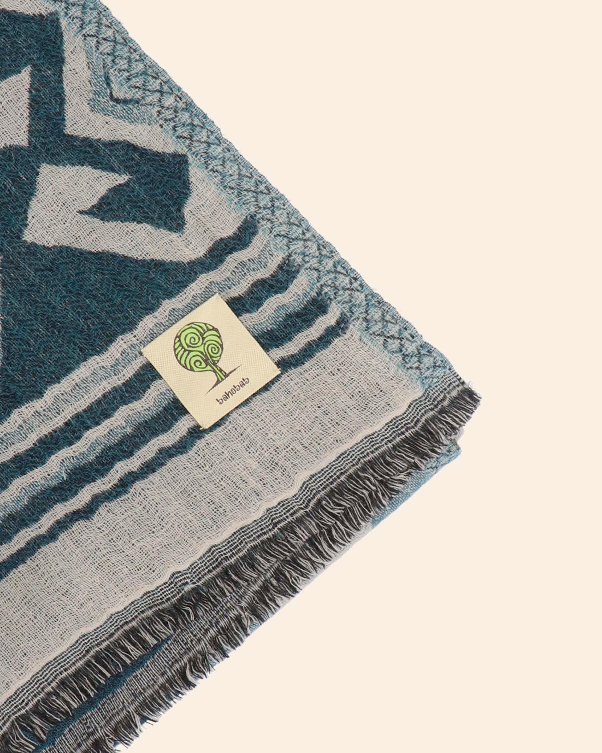 Stola in 100% lana, misura 200x70, fantasia in colore petrolio e beige, collezione Bahobab autunno inverno 2025/2026