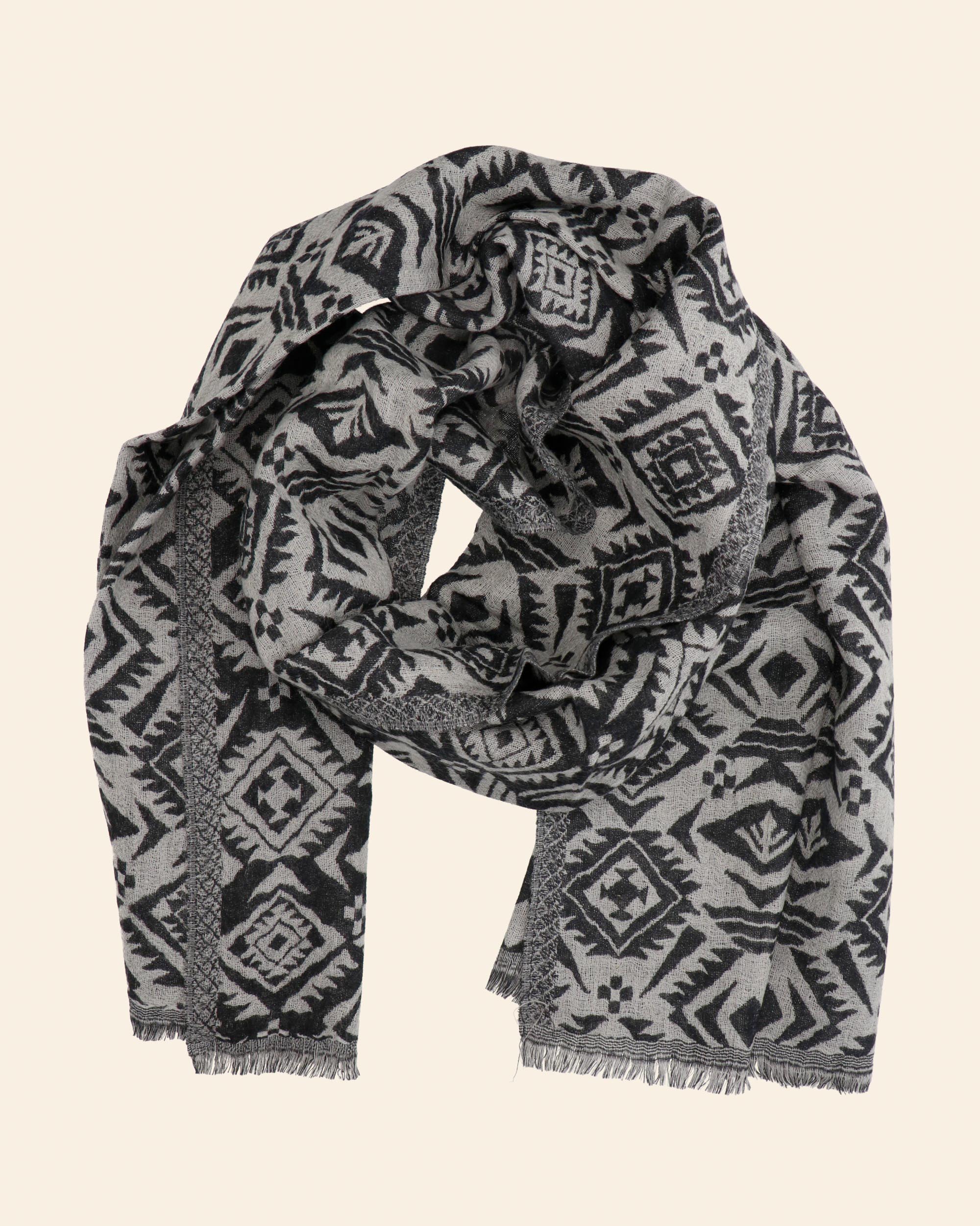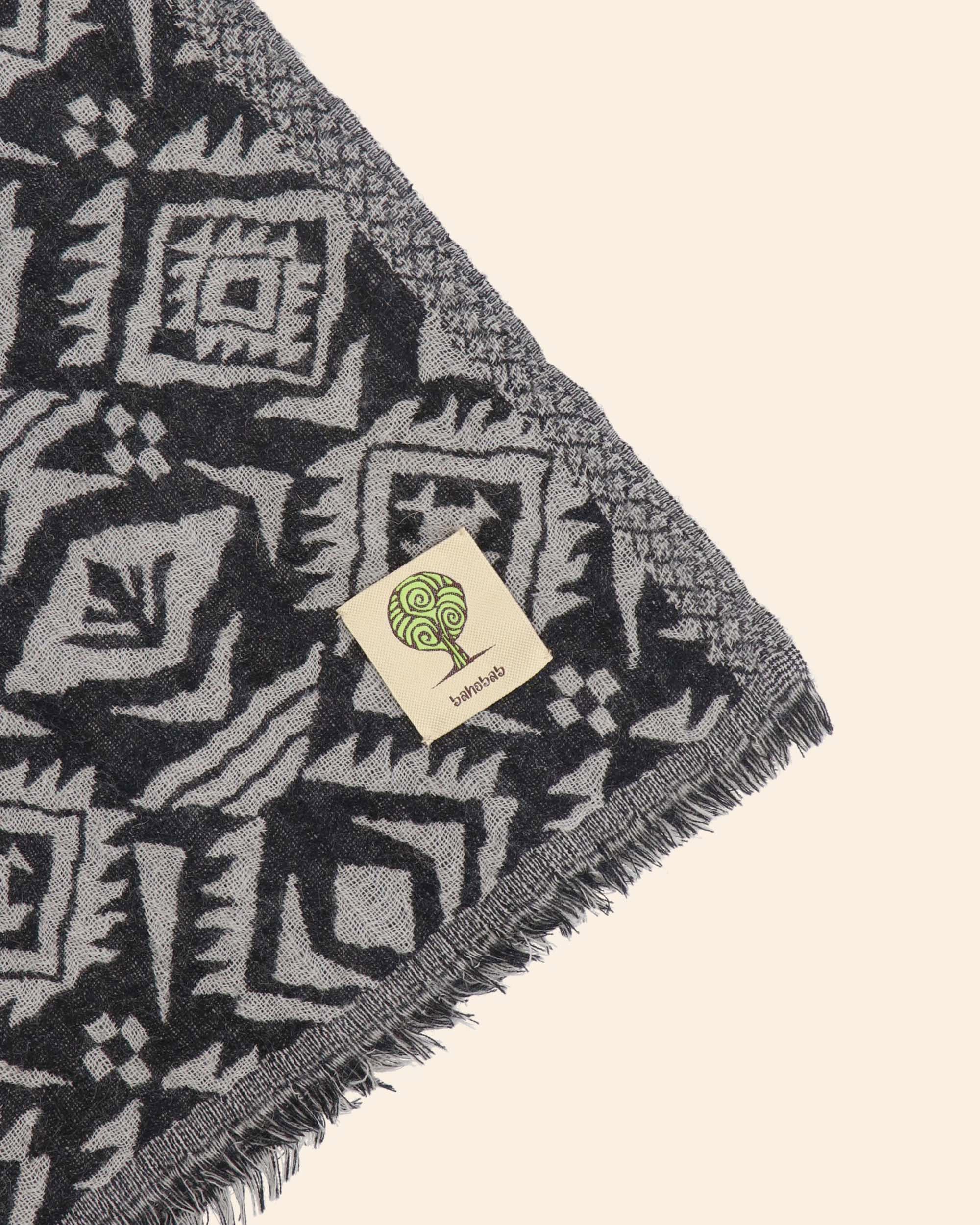 Stola in 100% lana, misura 200x70, fantasia in colore bianco e nero, collezione Bahobab autunno inverno 2025/2026
