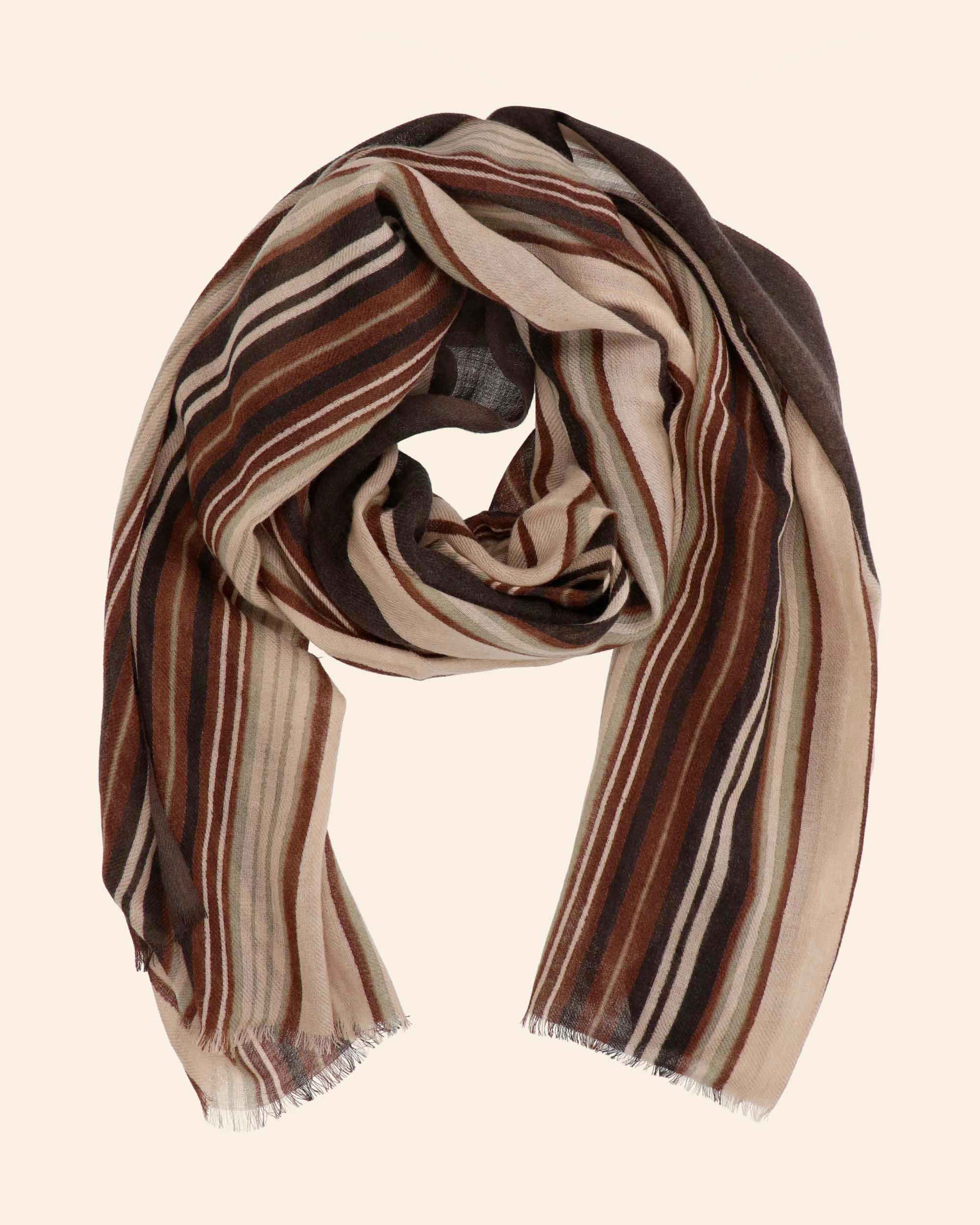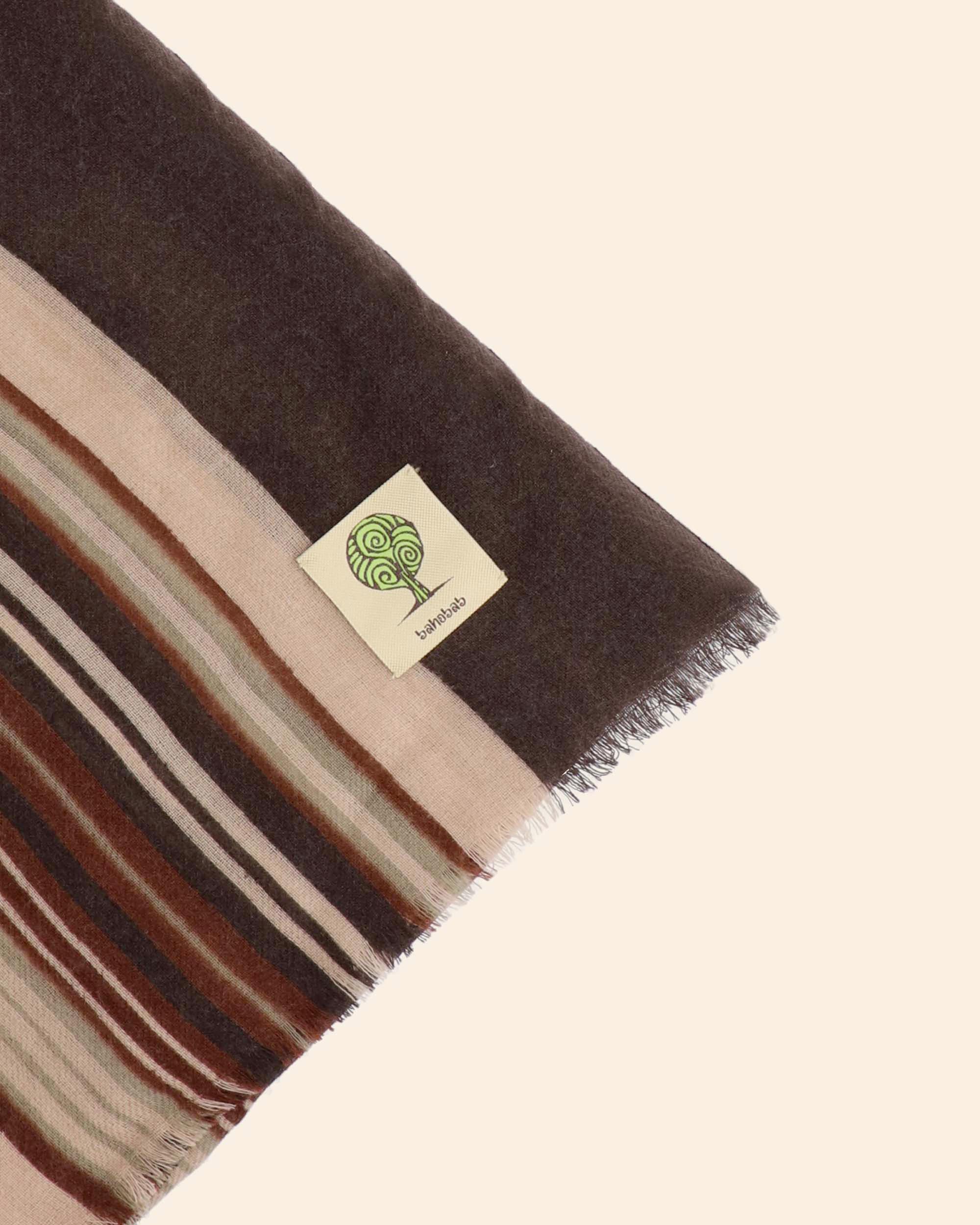 Stola in 100% lana, misura 180x70, fantasia a righe marrone, collezione autunno inverno Bahobab 2025/2026