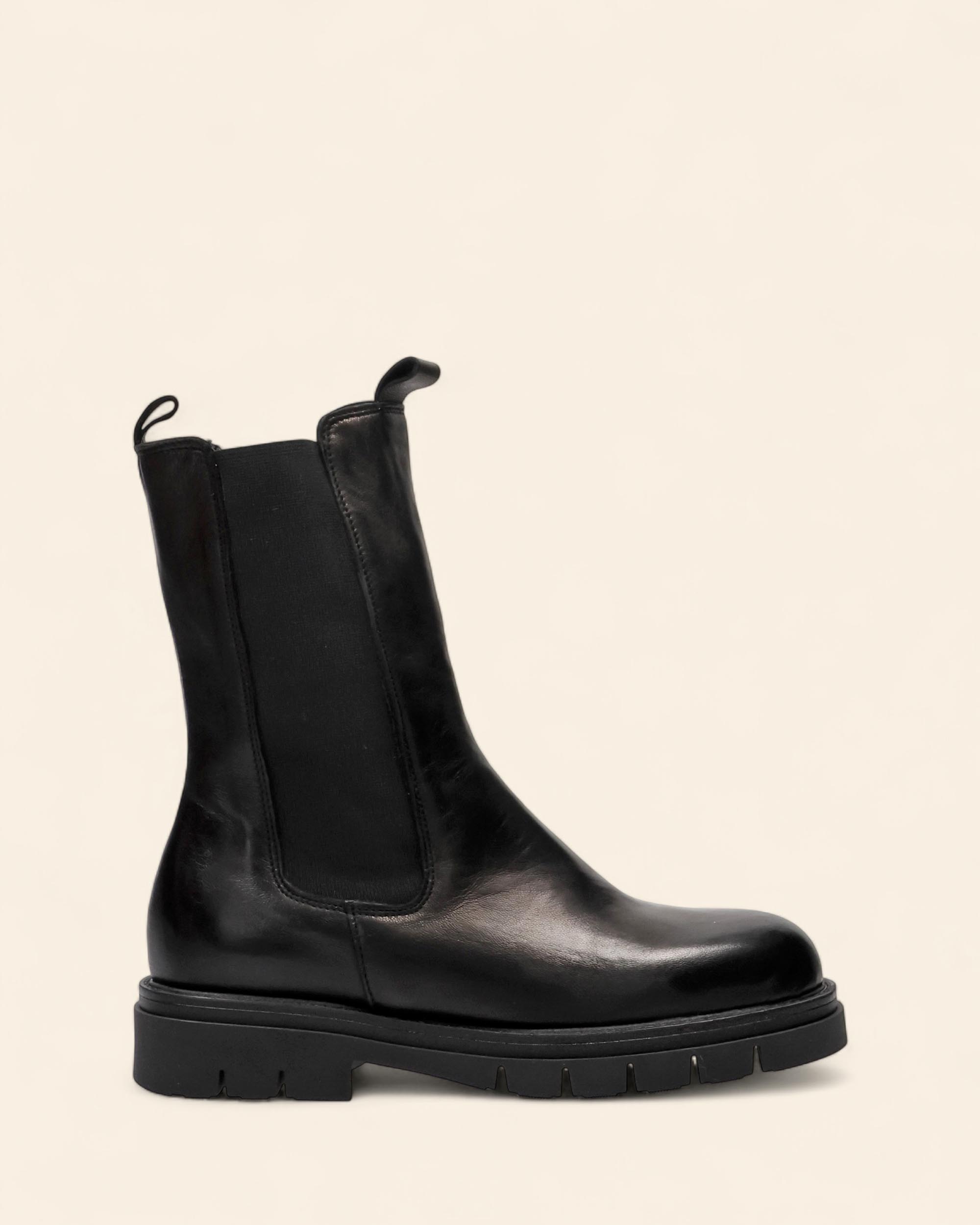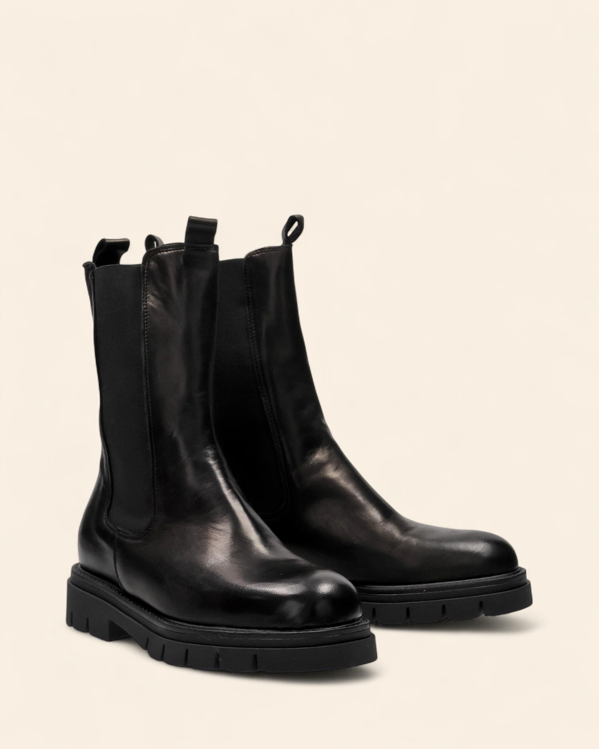 Beatles in pelle nera, fodera in pelle, sottopiede in pelle, suola in gomma, tacco 35mm, punta tonda, elastici in tinta, tirante in tinta, made in Italy, collezione Cretative autunno inverno 2025/2026