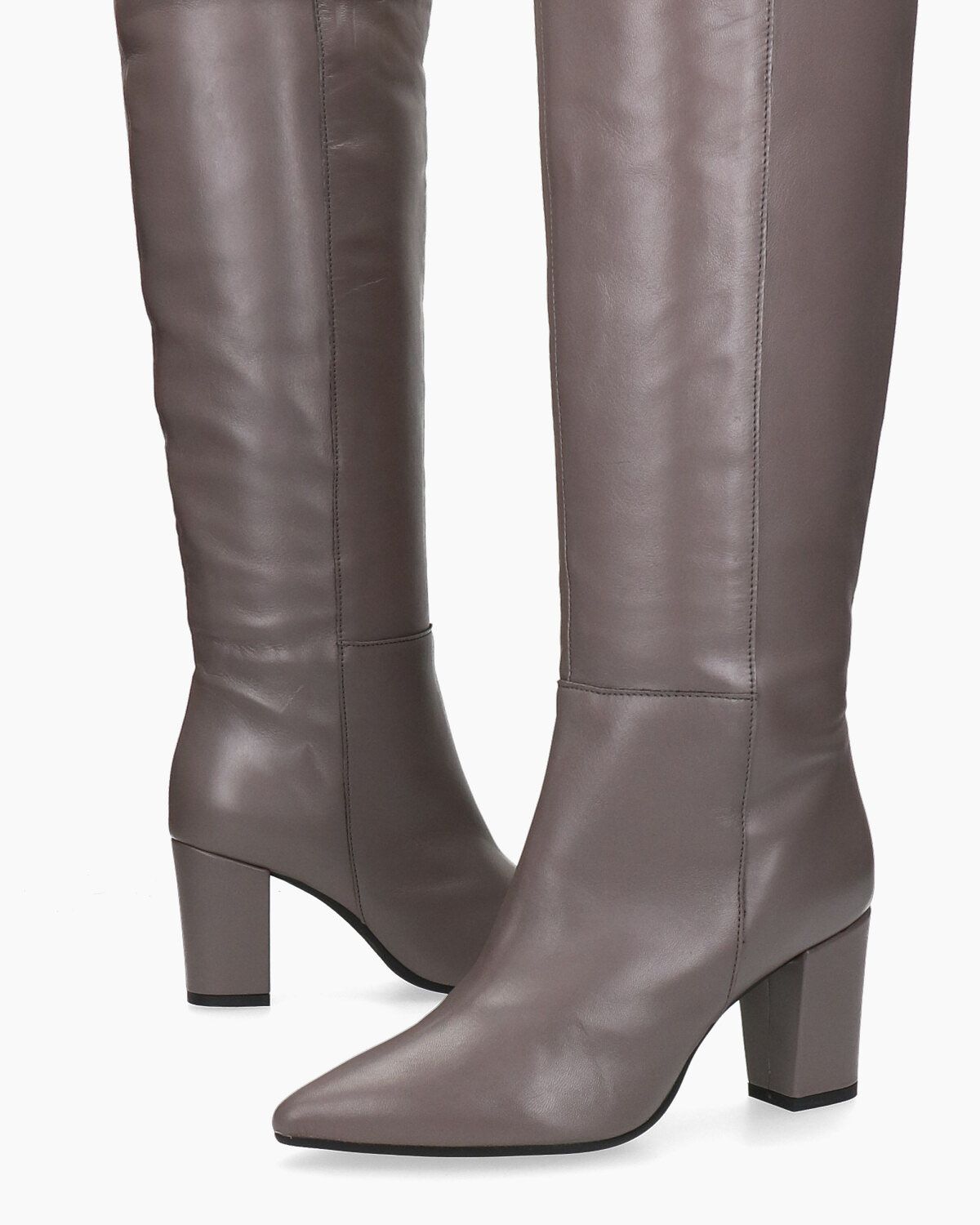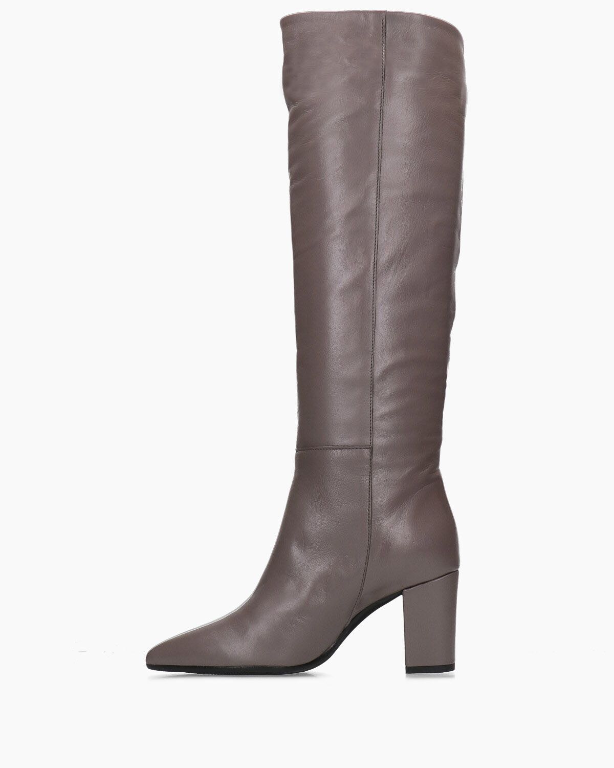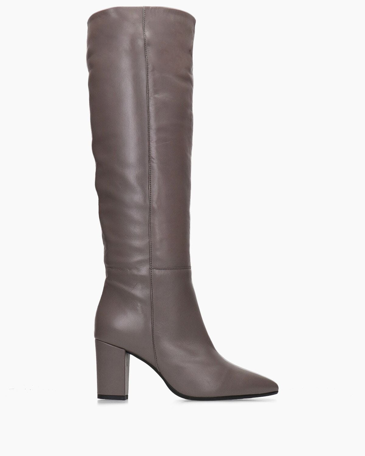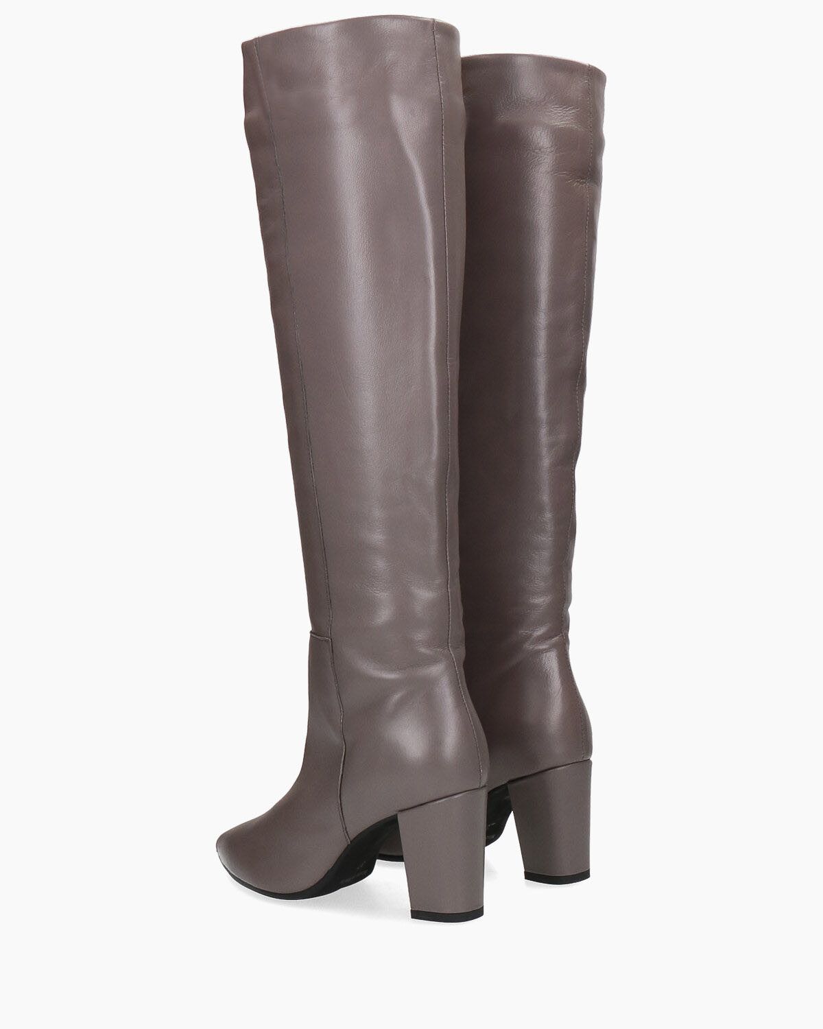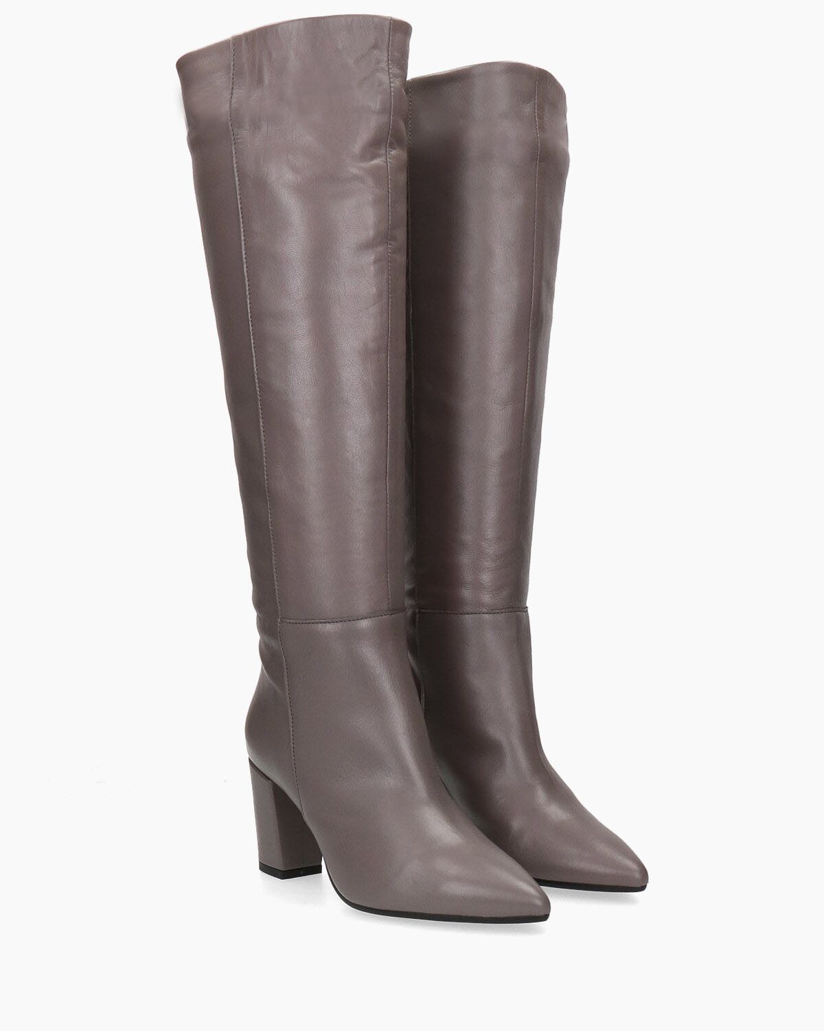 Stivali in morbida pelle grigia, suola in gomma, tacco ricoperto 70mm, soletta in pelle, linea a tubo, a punta, lavorazione artigianale, made in Italy, collezione donna Elena del Chio Autunno Inverno 2021/2022