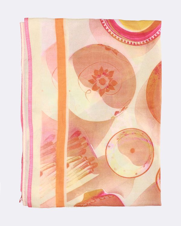 Stola patch arancio, beige e ciliegia in seta e cotone 100mm x 200mm, collezione donna Pyaar Primavera Estate 2024
