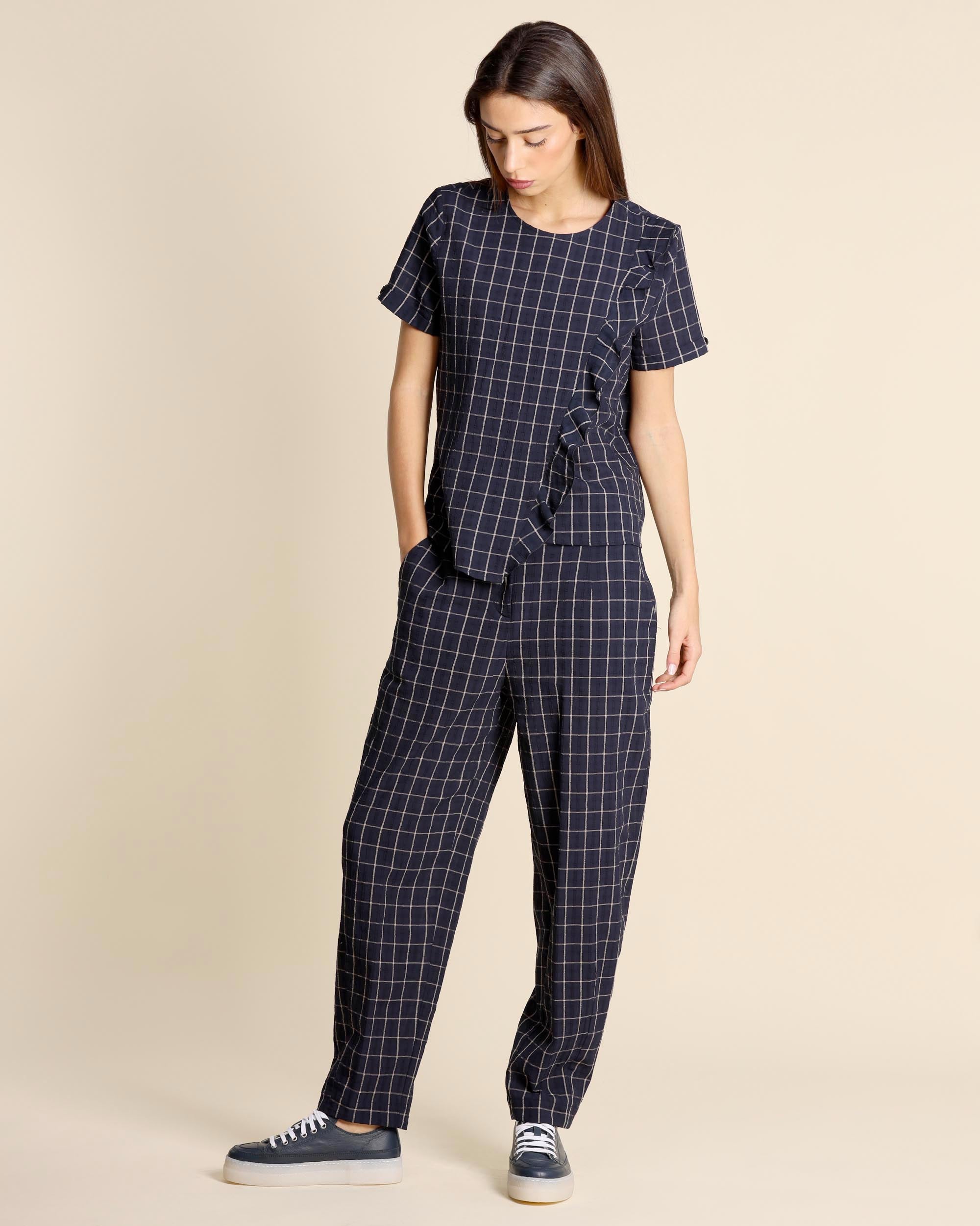 Pantaloni in crepe di cotone e viscosa