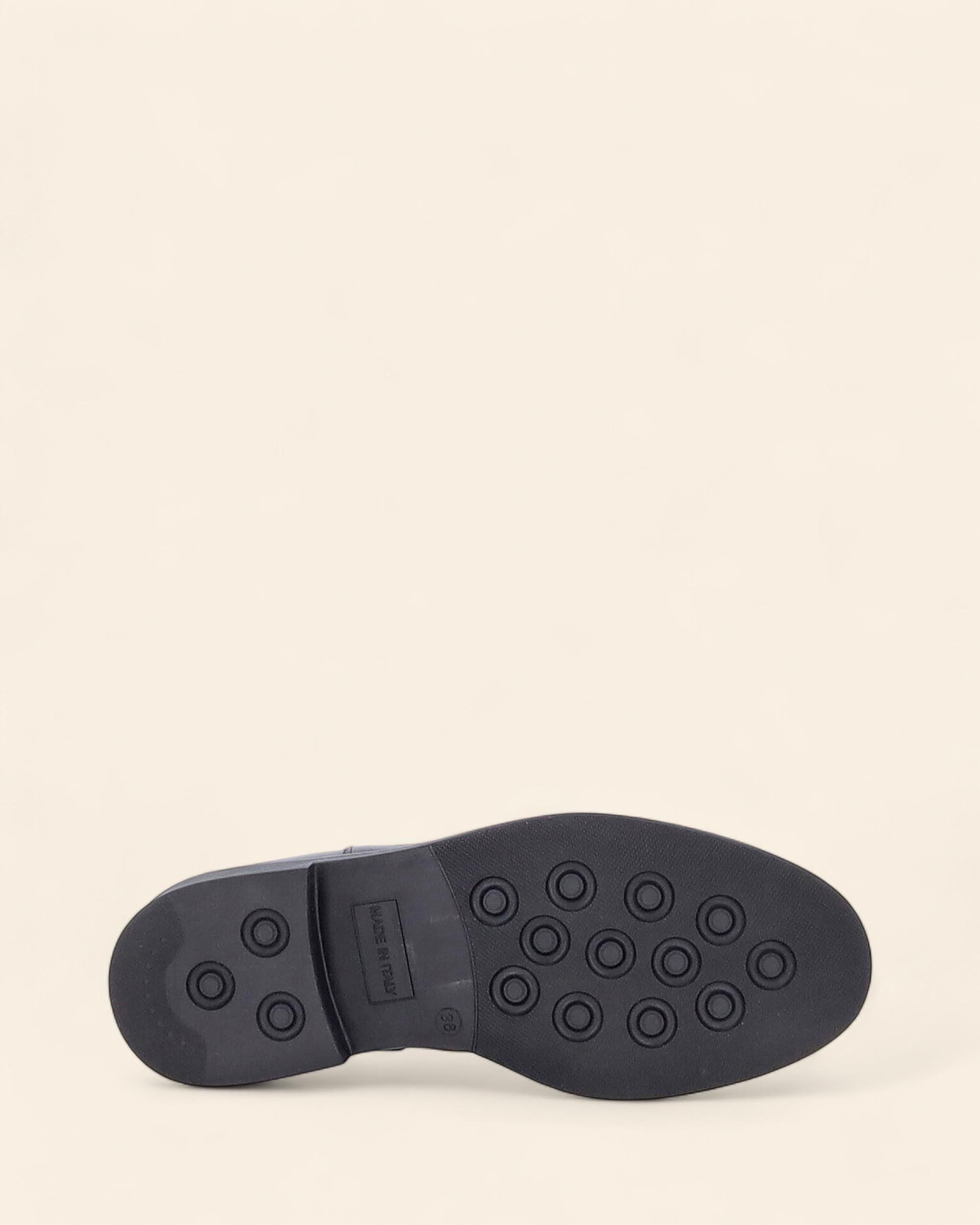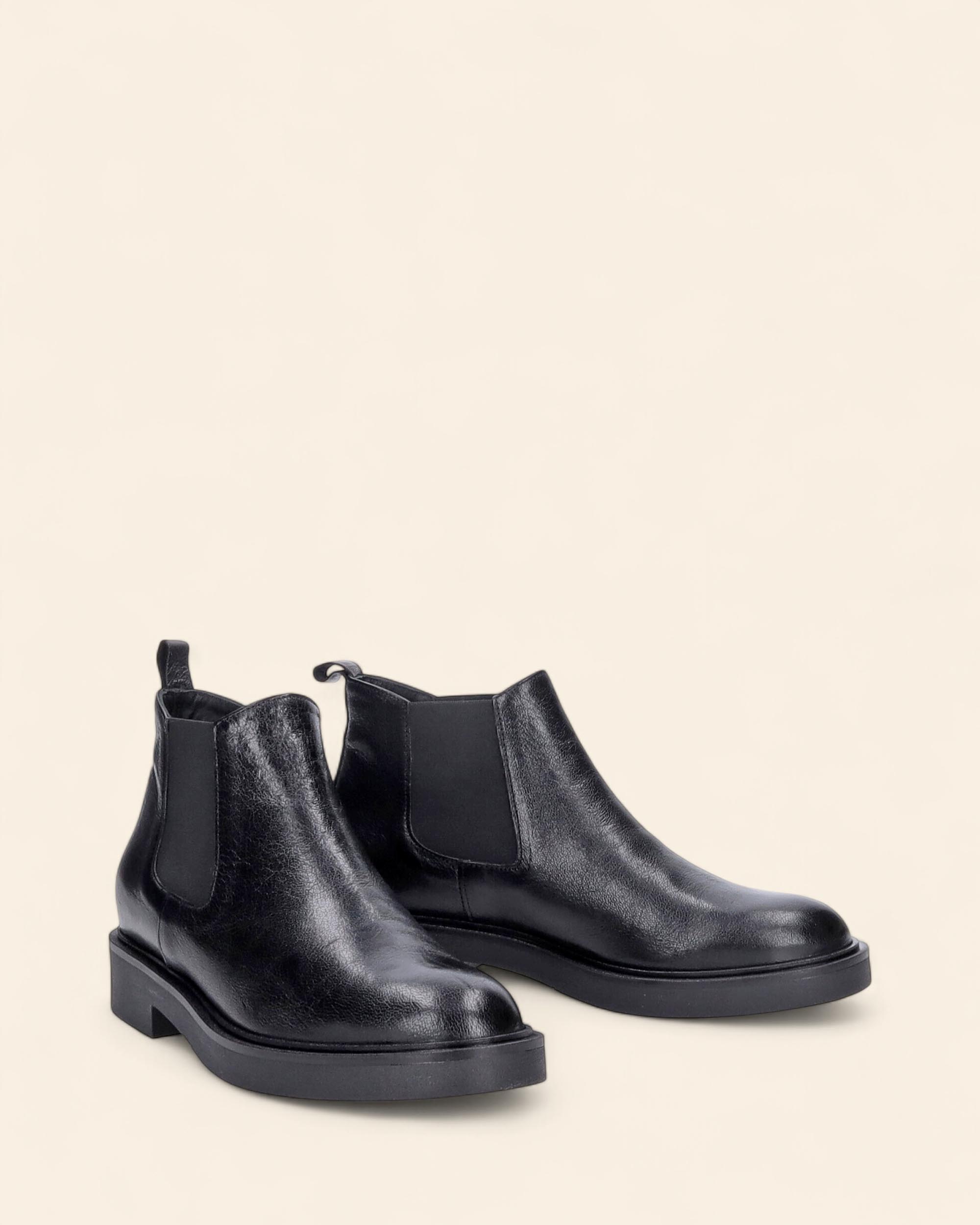 Beatles in pelle nera, sottopiede in pelle, fodera in pelle, suola in gomma, punta tonda, elastici laterali in tinta, tacco 30mm, tirante in tinta, Made in Italy, collezione autunno inverno Illogica 2025/2026