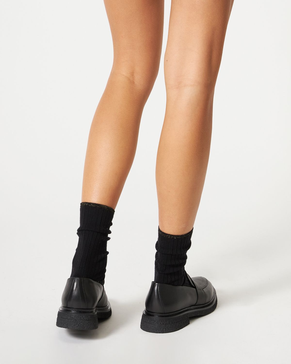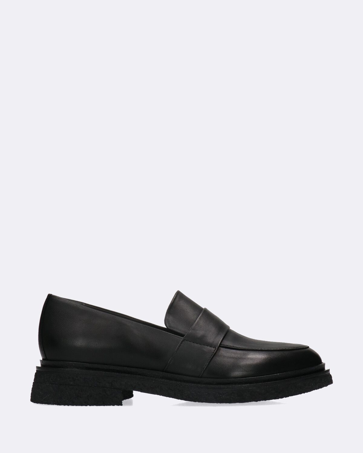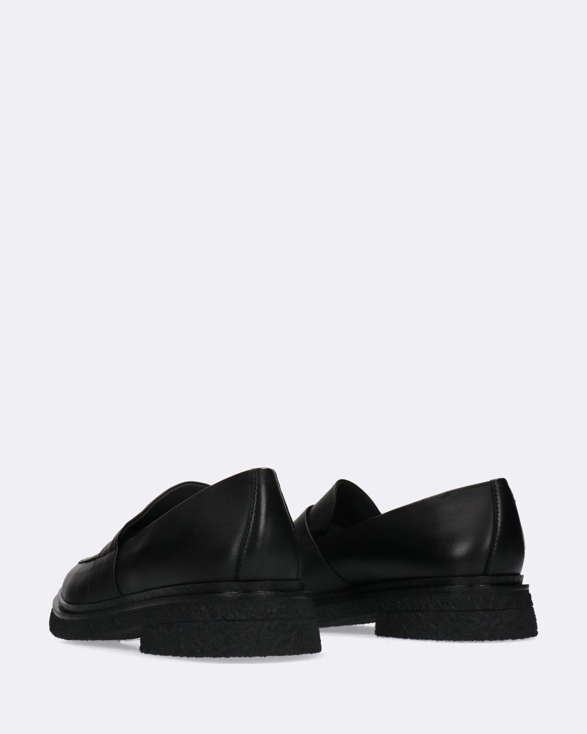 Mocassini in morbida pelle nera, punta tonda, fodera in pelle, suola in gomma, tacco 30mm, made in Italy, Collezione Fruit Autunno Inverno 2023/24