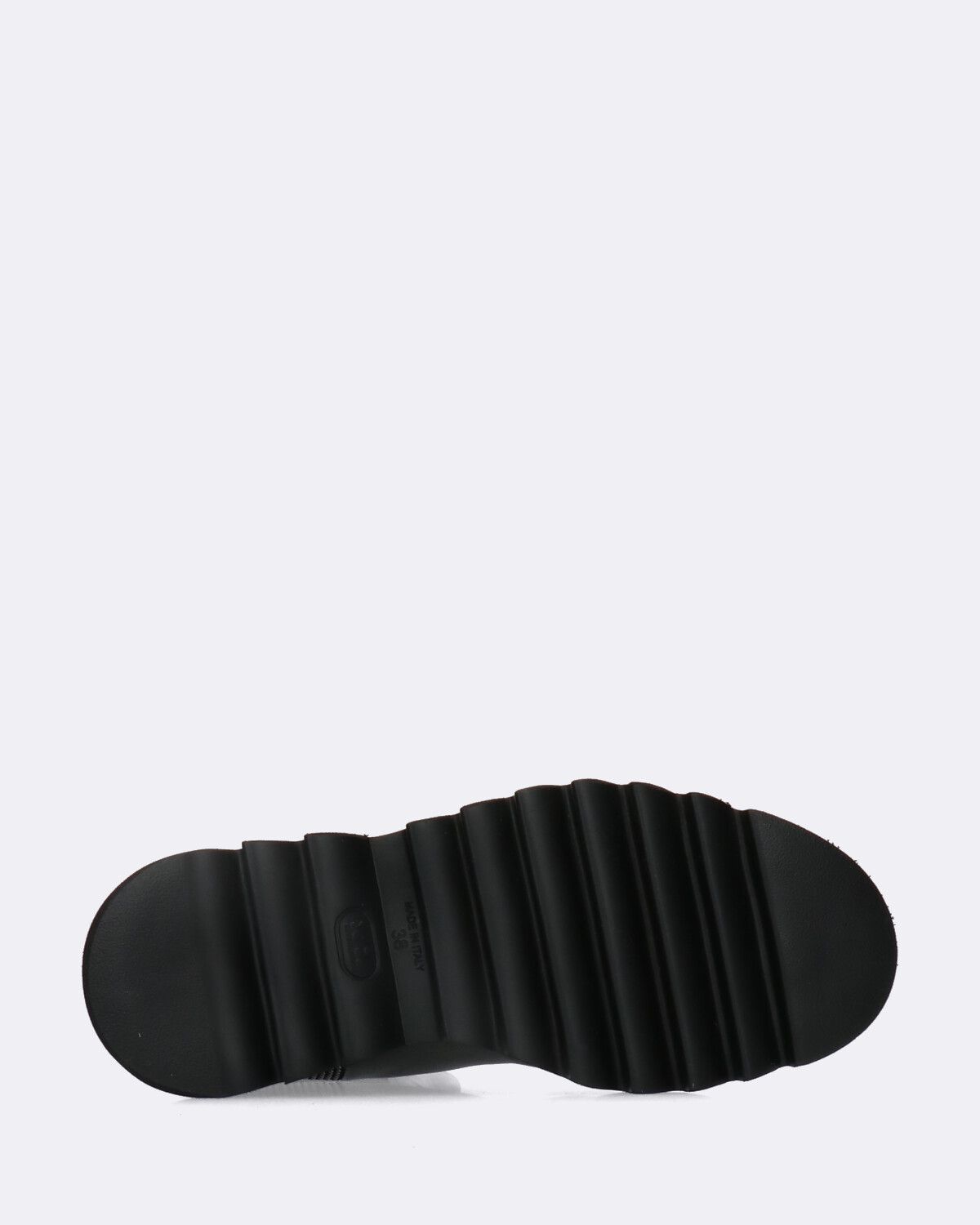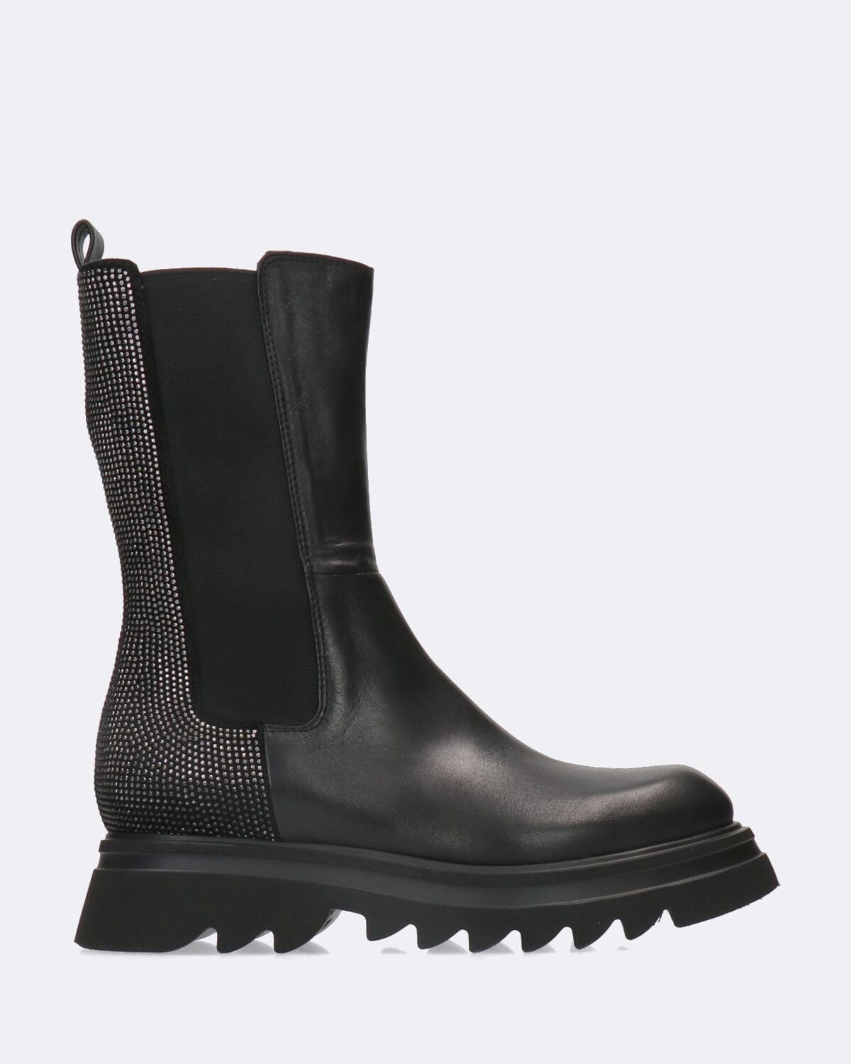 Beatles in pelle nera, dettaglio di borchiette nella parte posteriore, elastici laterali in tinta, fodera in pelle, soletta in pelle, tirante in pelle, suola ultra leggera in gomma, tacco 40mm, Made in Italy, Collezione Autunno Inverno Fruit 2023/24