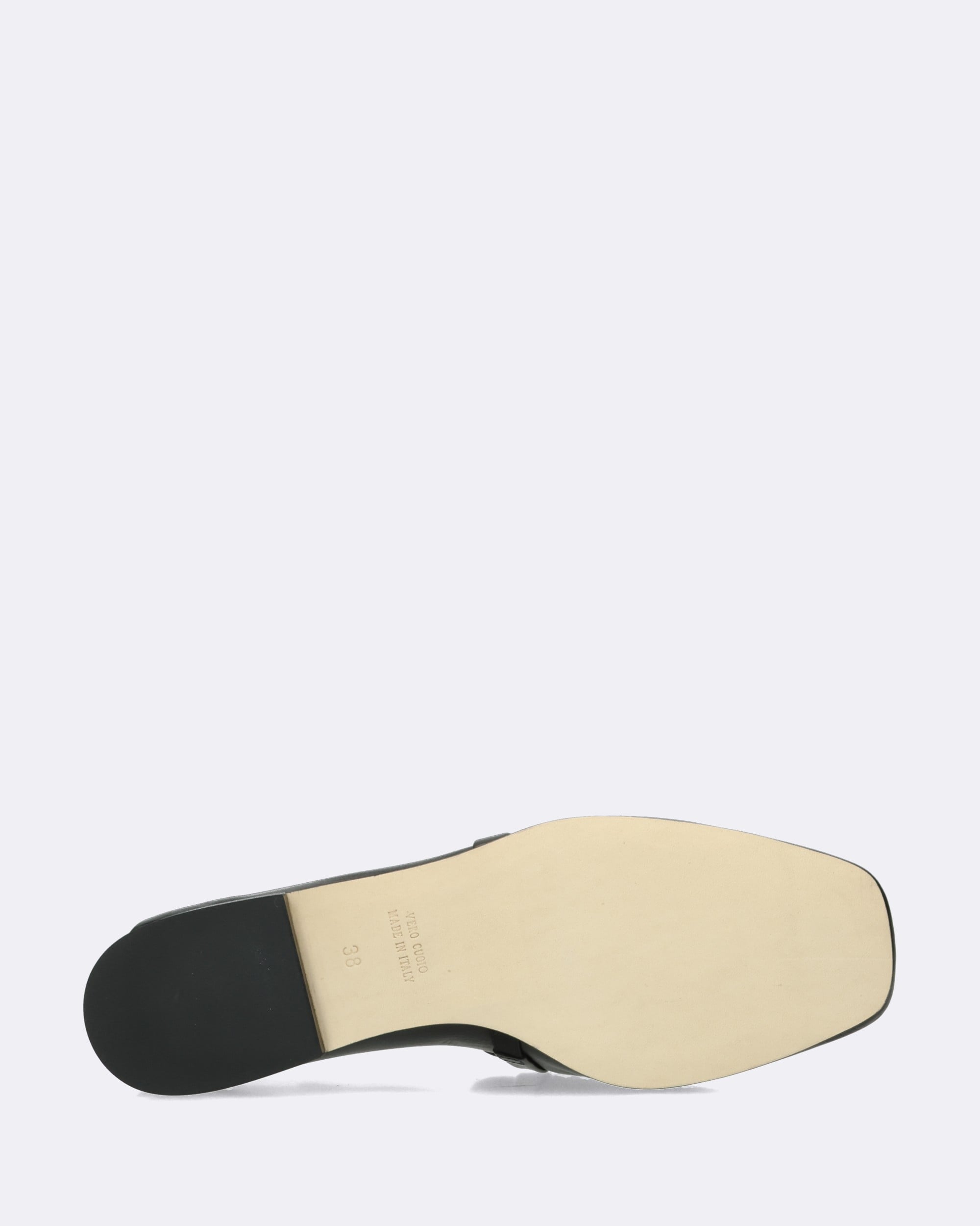 Mocassini neri in morbida pelle, tacco 15mm, sottopiede in pelle, suola in cuoio, si può indossare anche come sabot, made in Italy, collezione donna Fruit Primavera Estate 2025