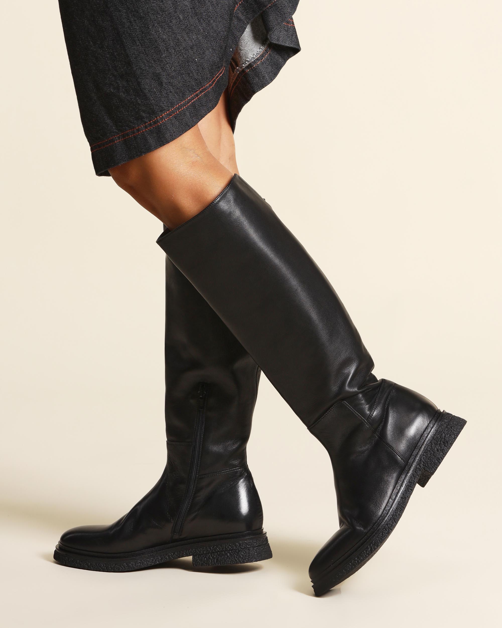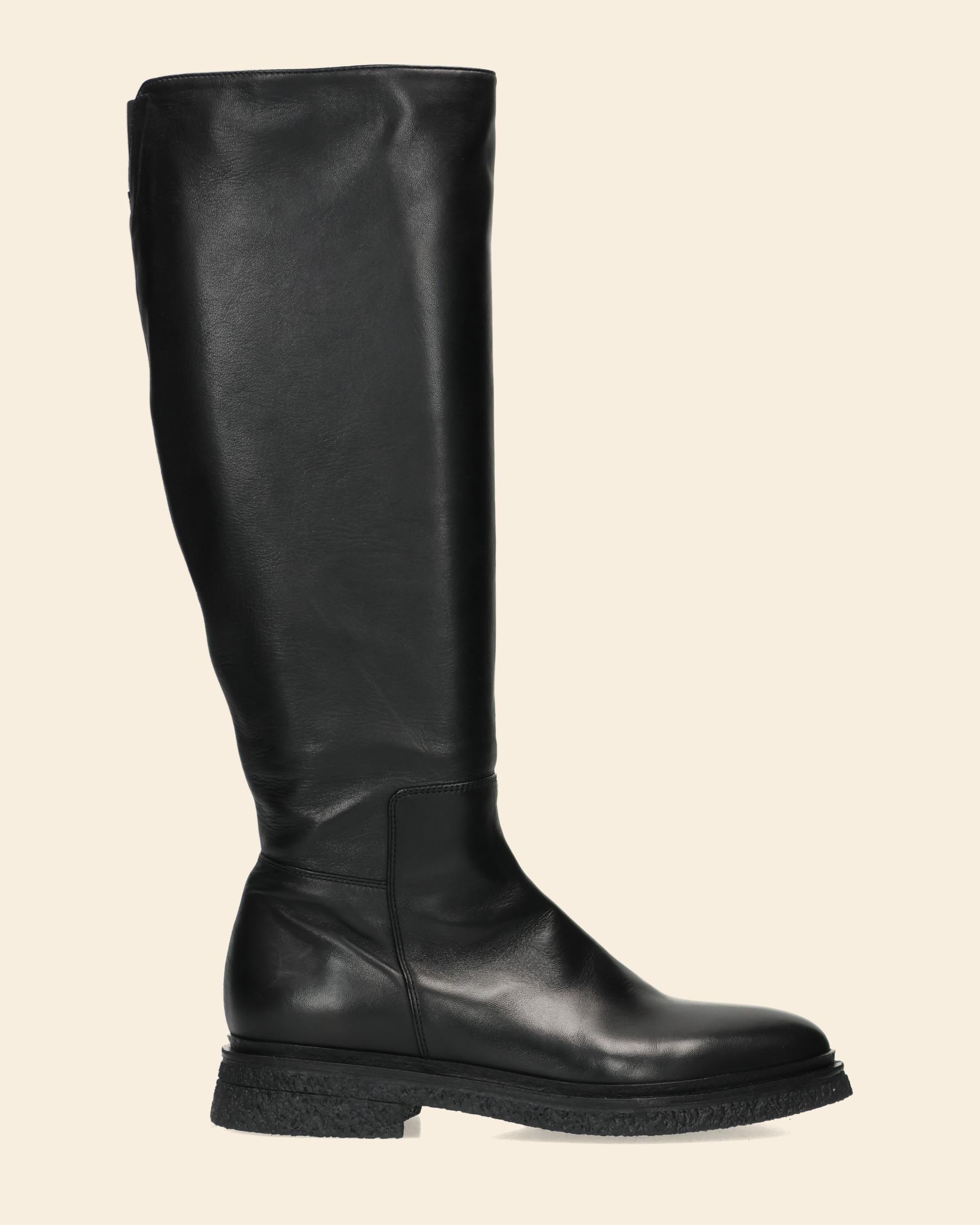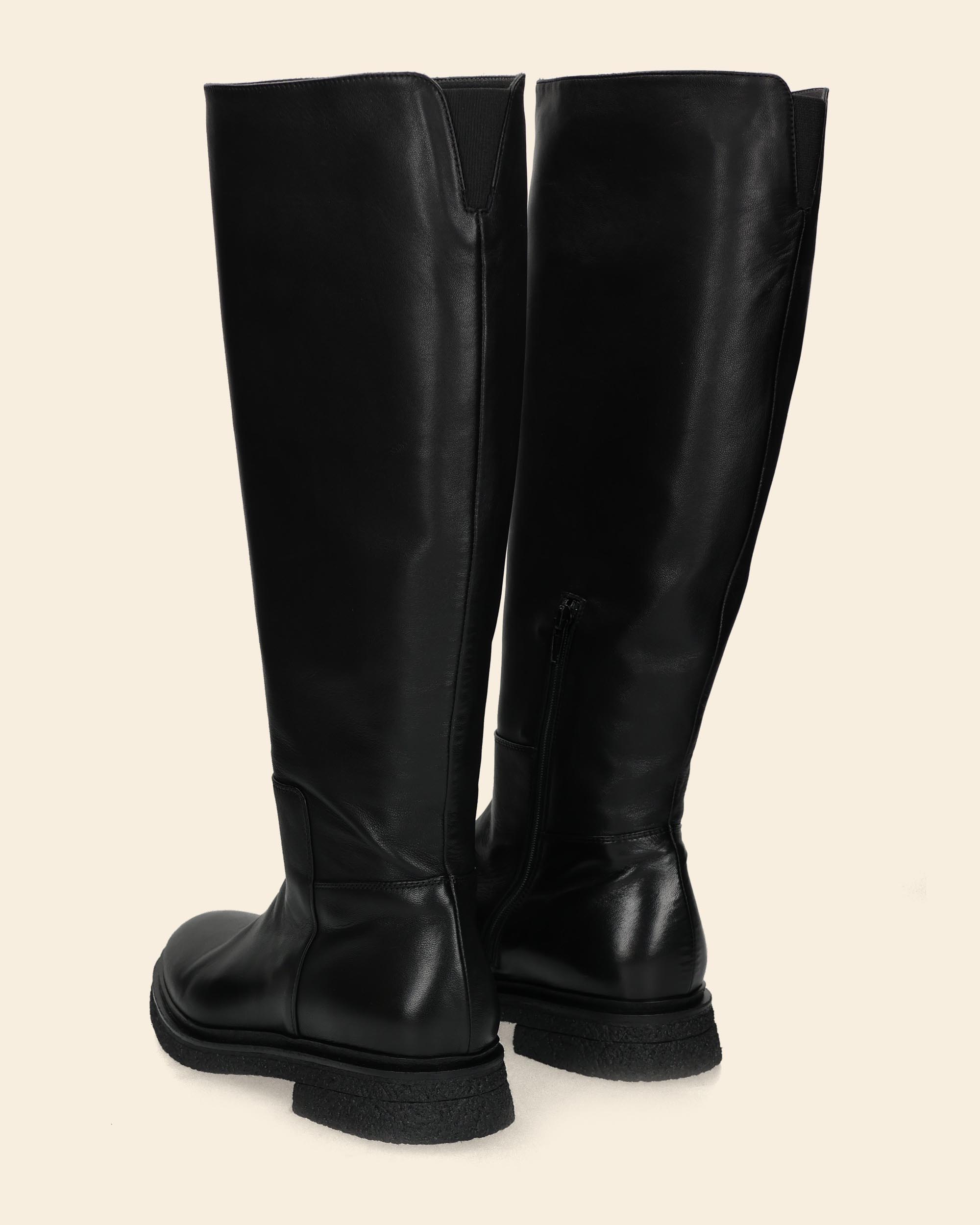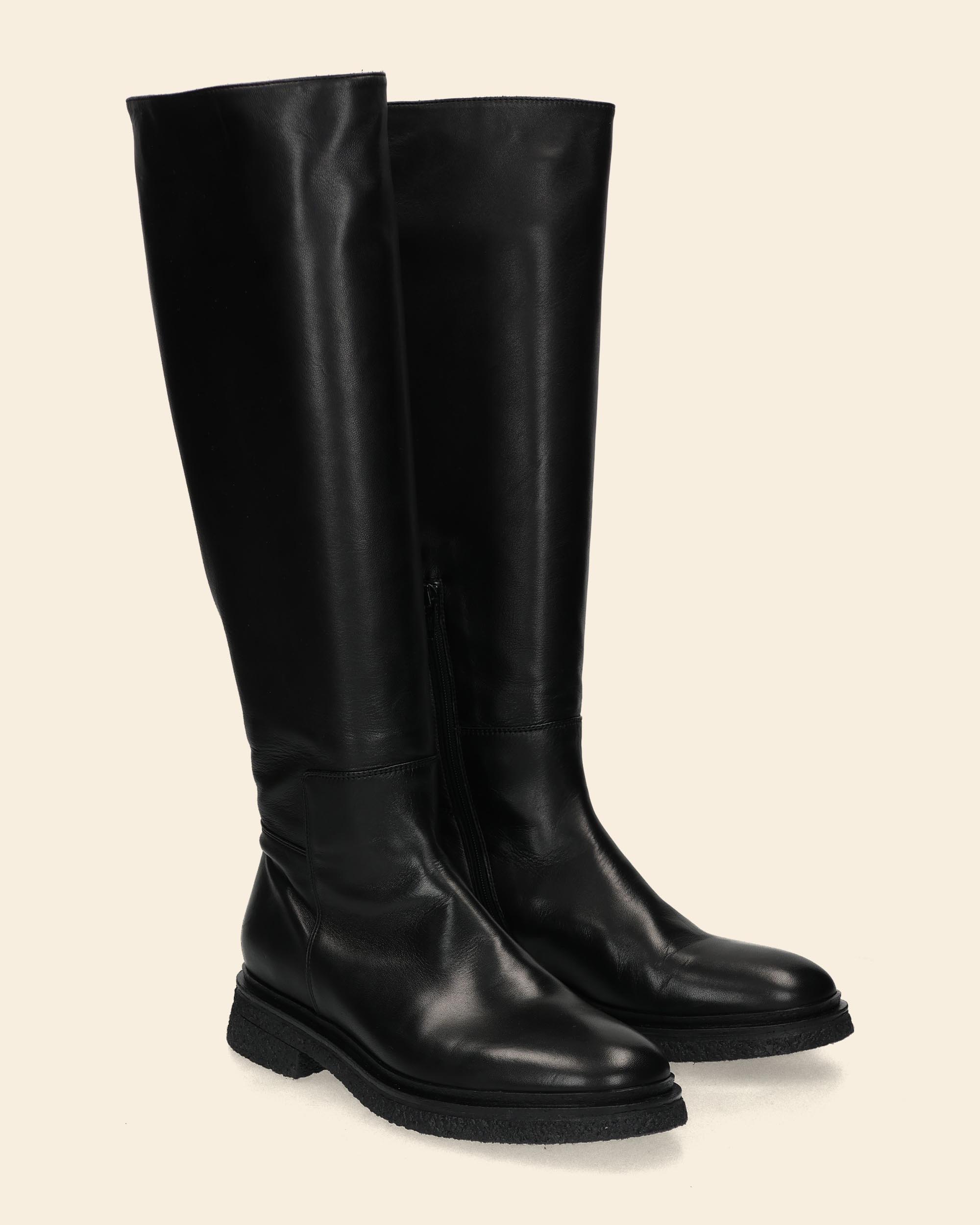 Stivali in pelle nera ultramorbida, chiusura laterale con zip, inserto elastico sul gambale dietro, suola in gomma, tacco 30, fodera in pelle, sottopiede in pelle, made in Italy, collezione donna Fruit Autunno Inverno 2025/26