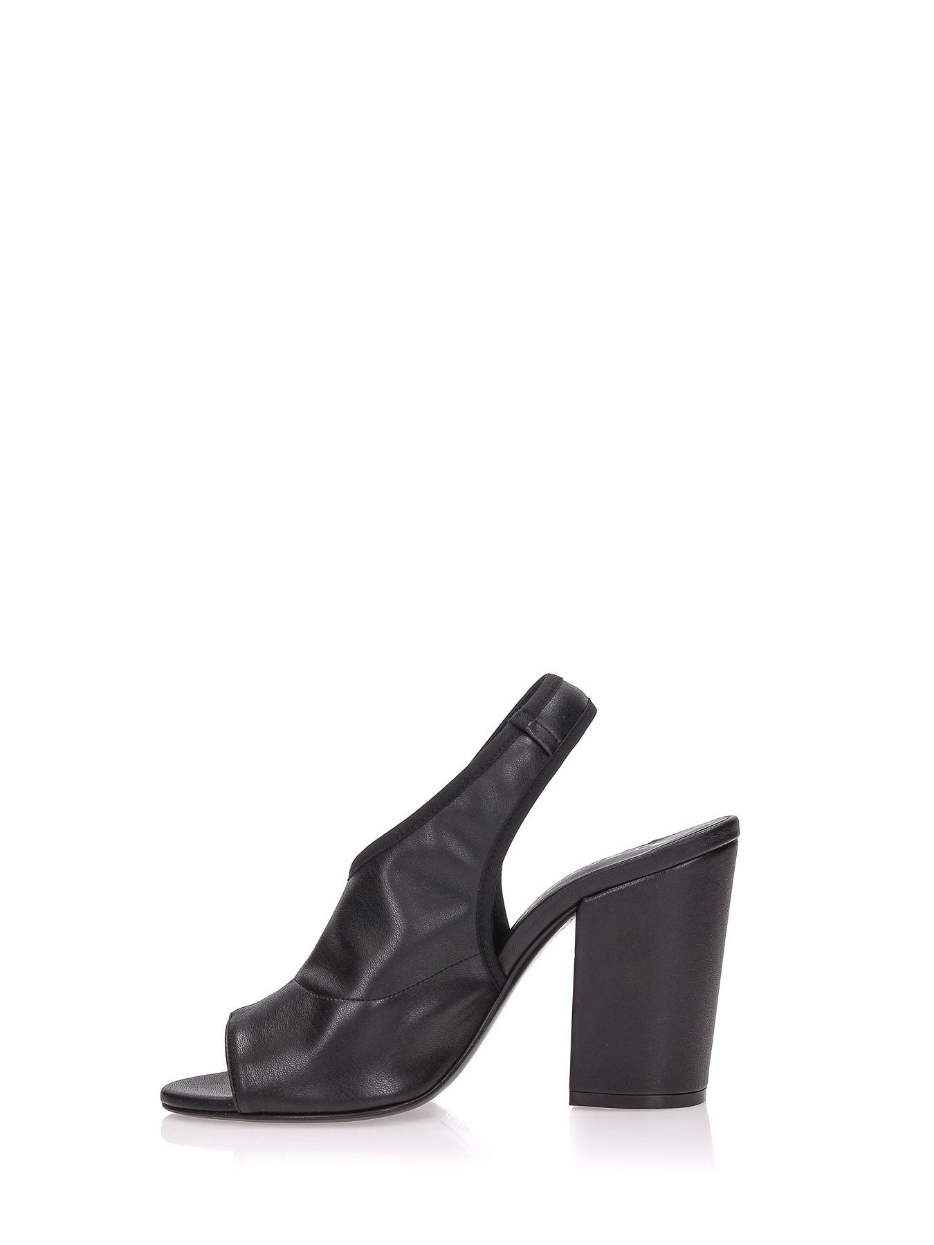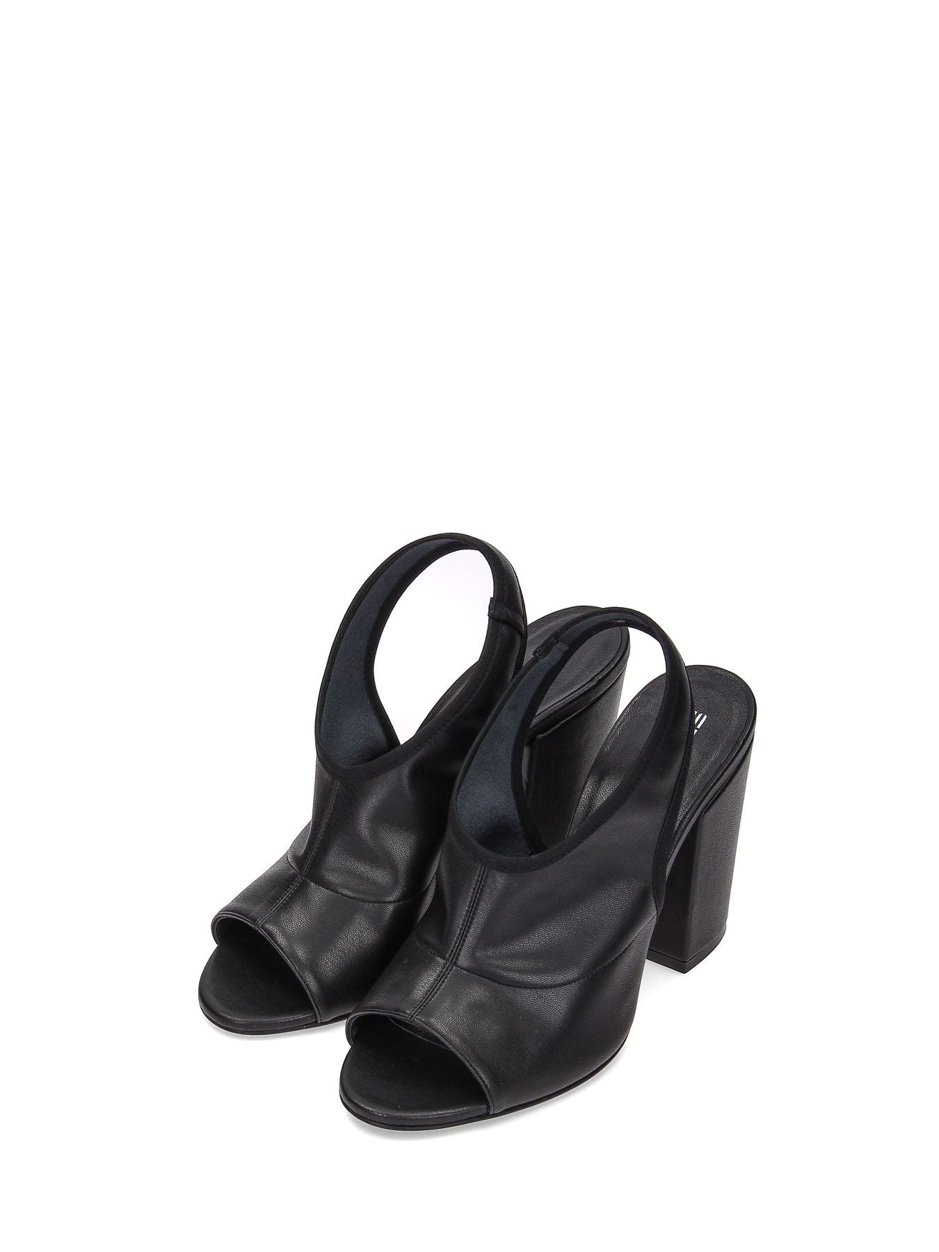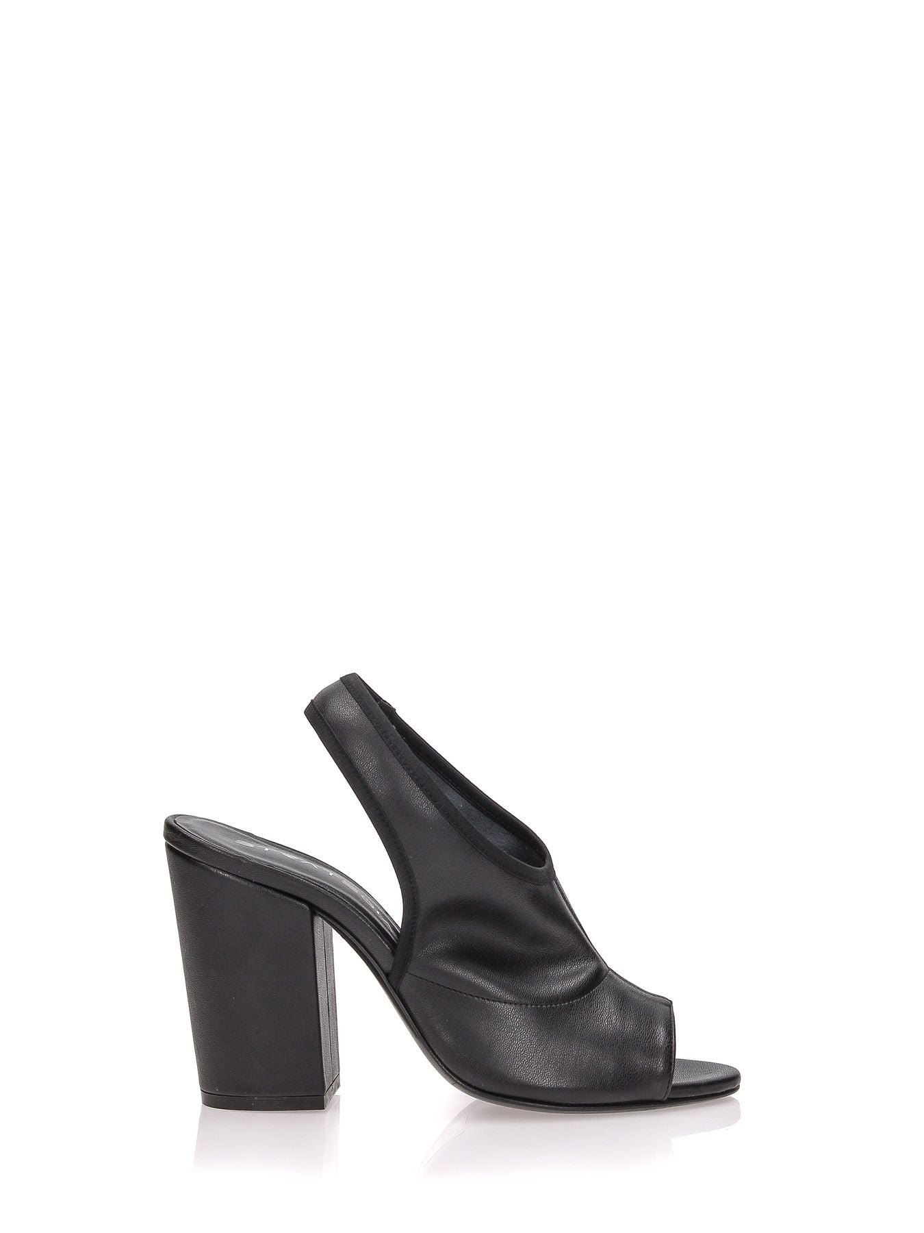 Sandali con tacco in simil pelle stretch nera, suola in cuoio, open toe, sottopiede in pelle, punta tonda, tacco ricoperto 90 mm, made in Italy, collezione donna Strategia Primavera Estate 2019