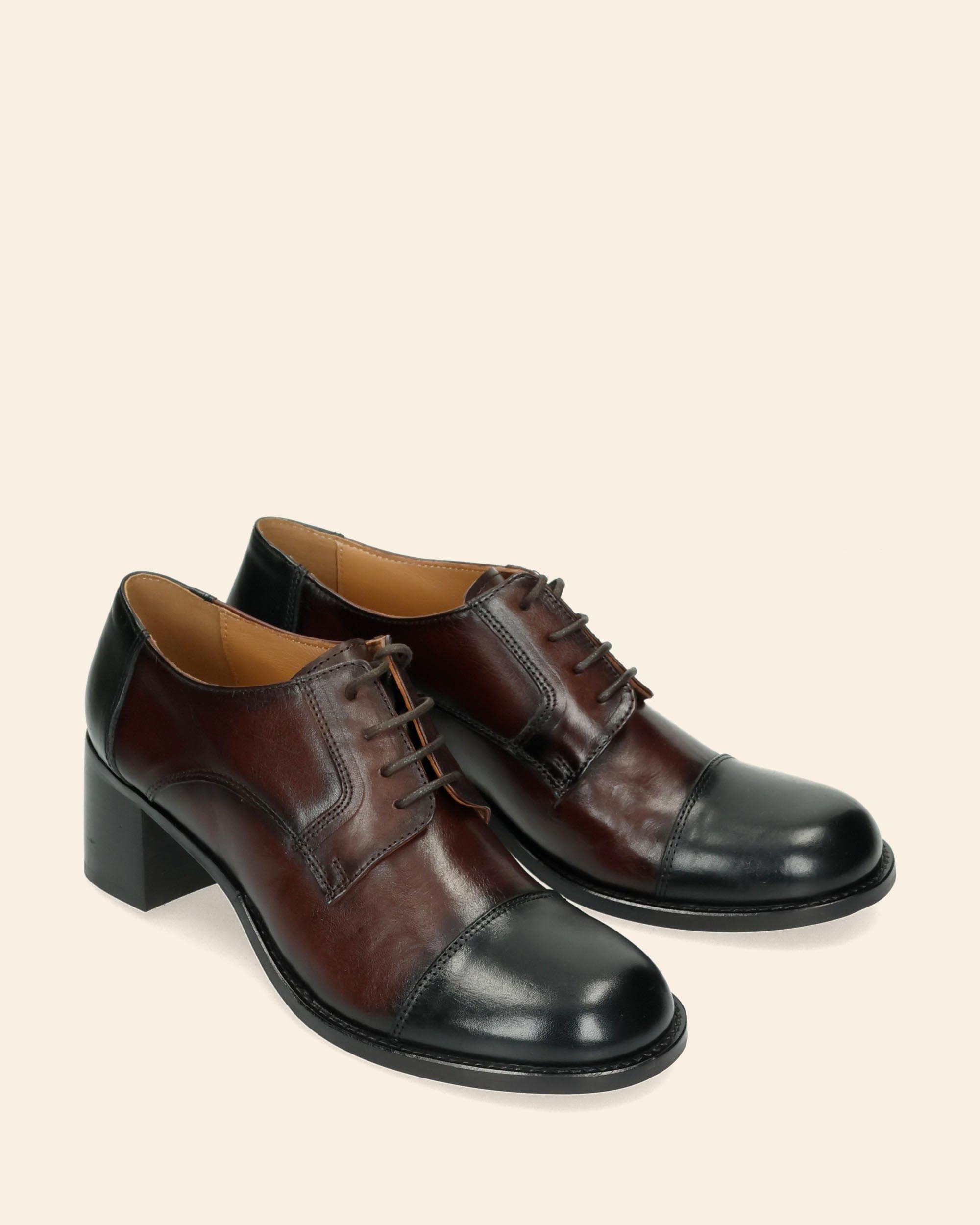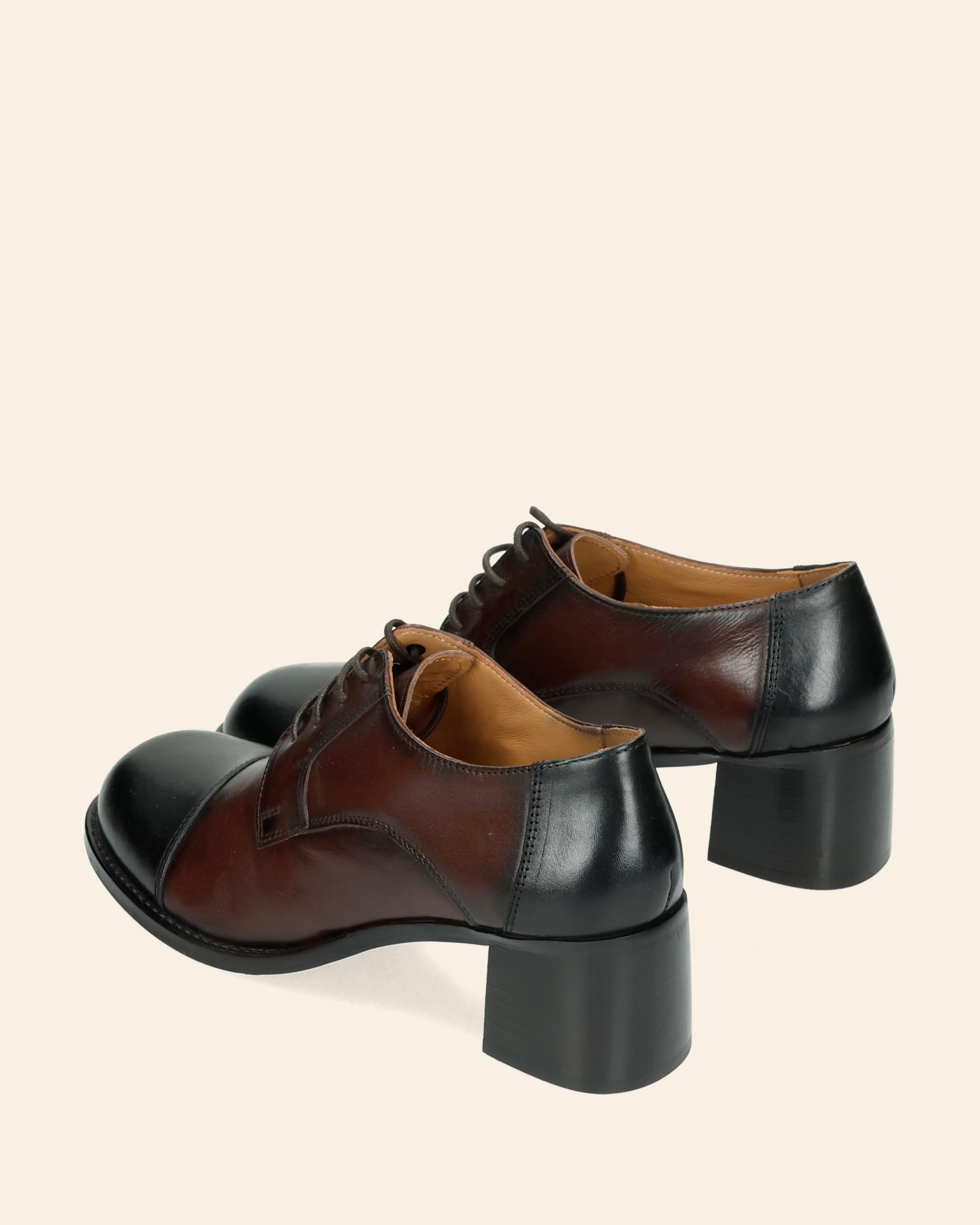 Stringate in pelle bicolor nero e marrone, tacco 60mm, punta tonda, fodera in pelle, sottopiede in pelle, collezione donna Koko Lab Autunno Inverno 2025/2026