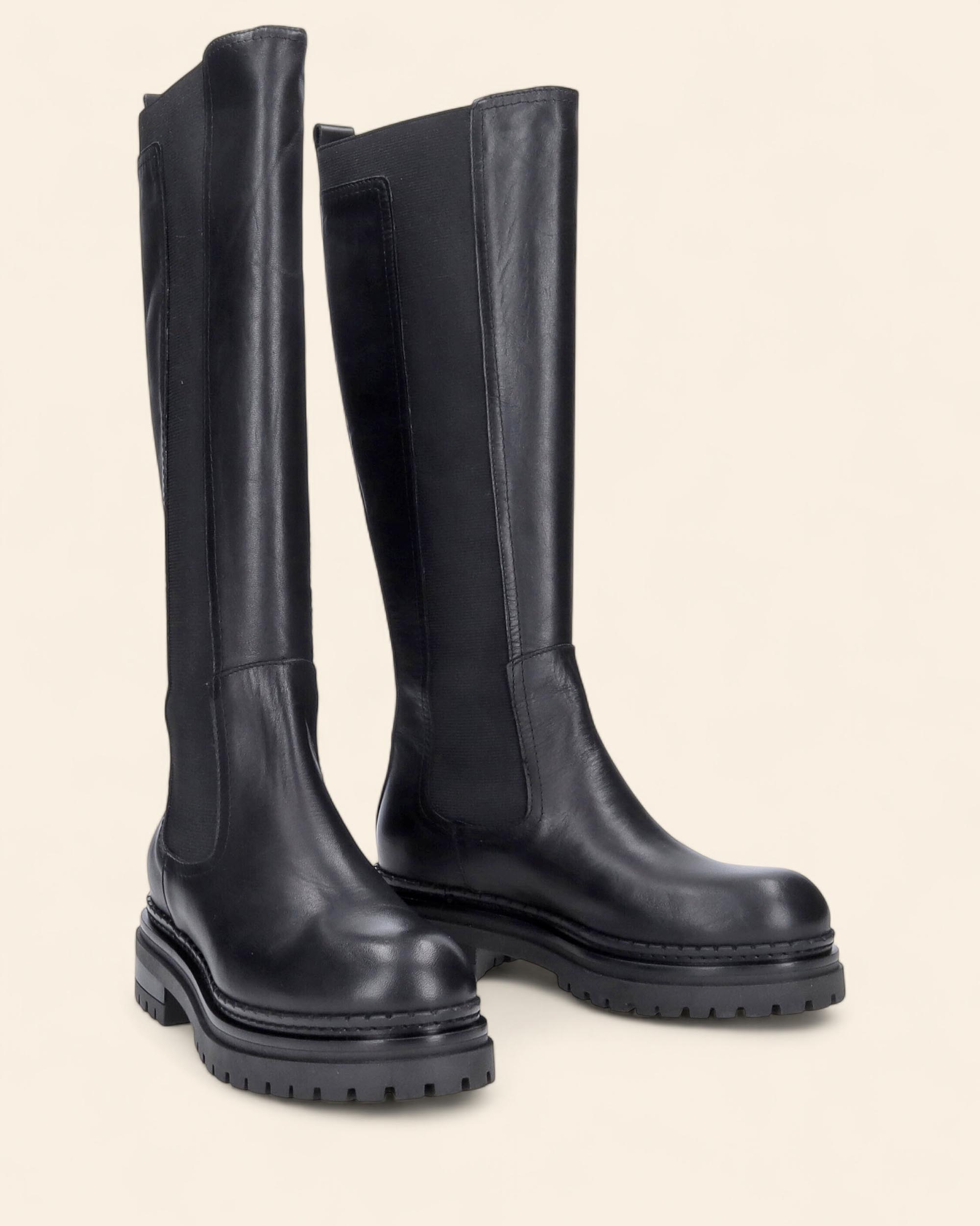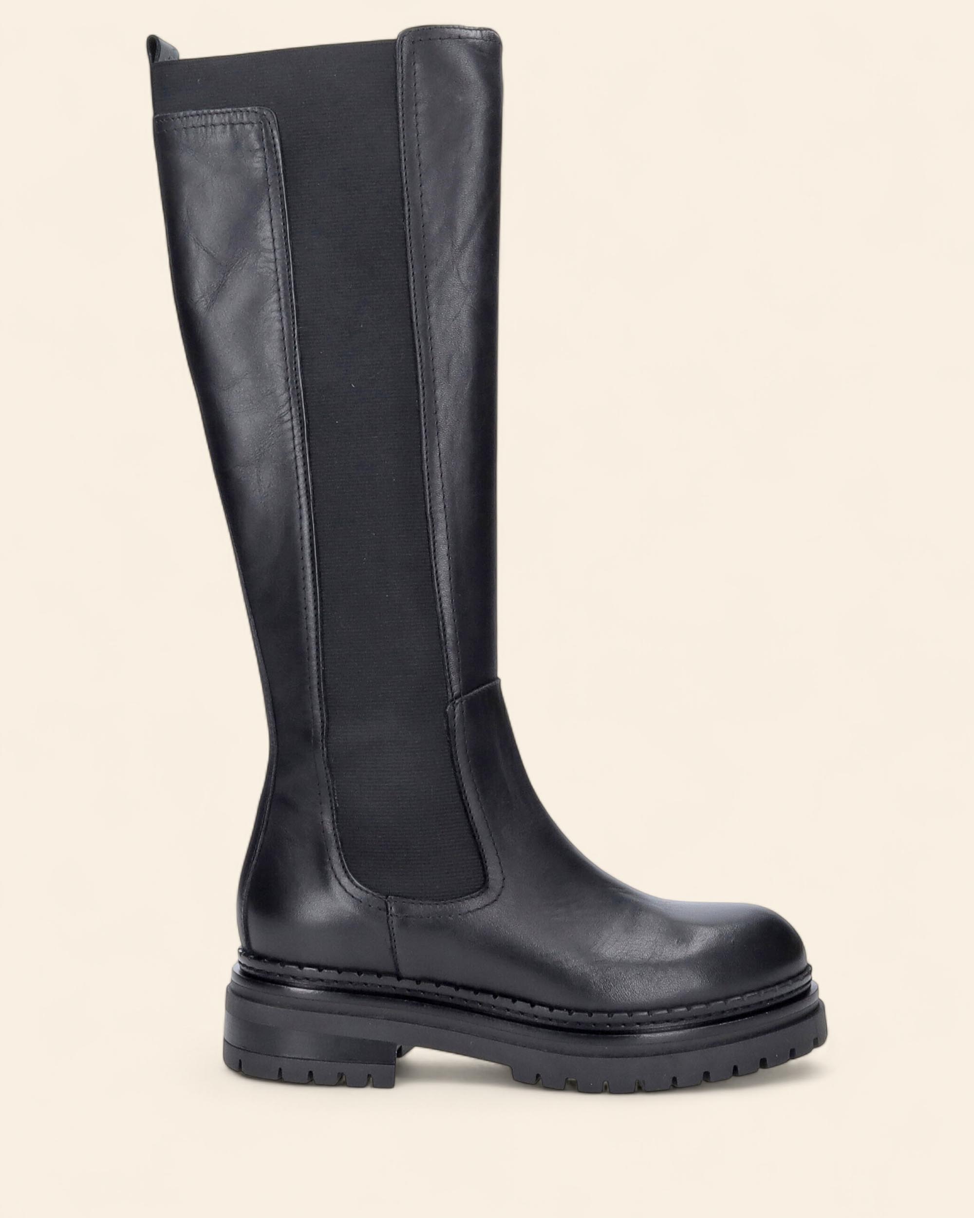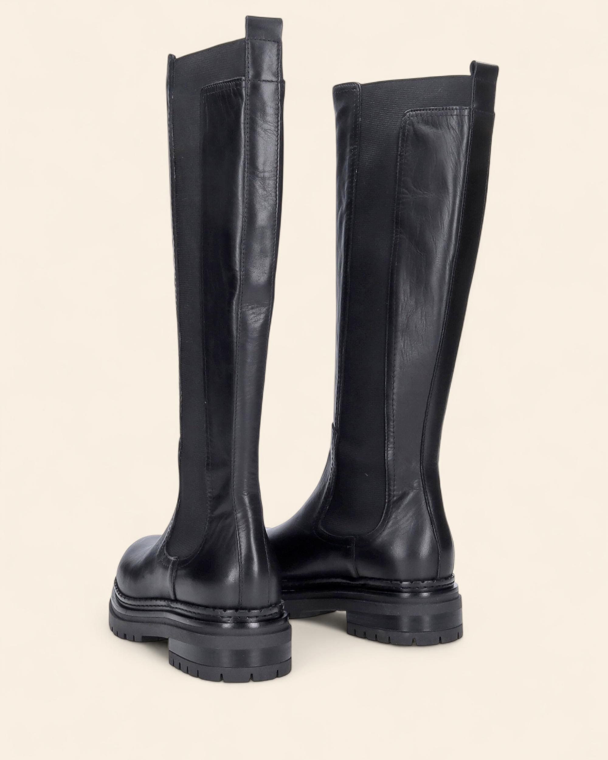 Stivali in pelle nera, fodera in pelle, sottopiede in pelle, suola in gomma, tacco 40mm, punta tonda, elastici laterali in tinta, tirante in tinta, made in Italy, collezione Imma autunno inverno 2025/2026