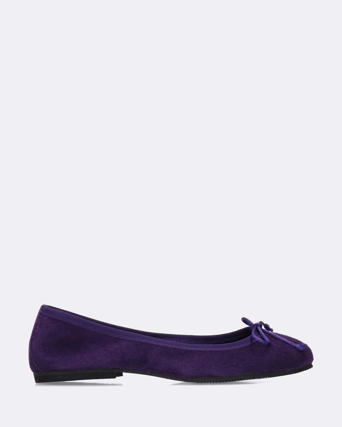 Ballerine in pelle scamosciata viola, tacco 10mm, suola in gomma, soletta in pelle, punta tonda, made in Italy, collezione donna Carina Autunno Inverno 2023/2024