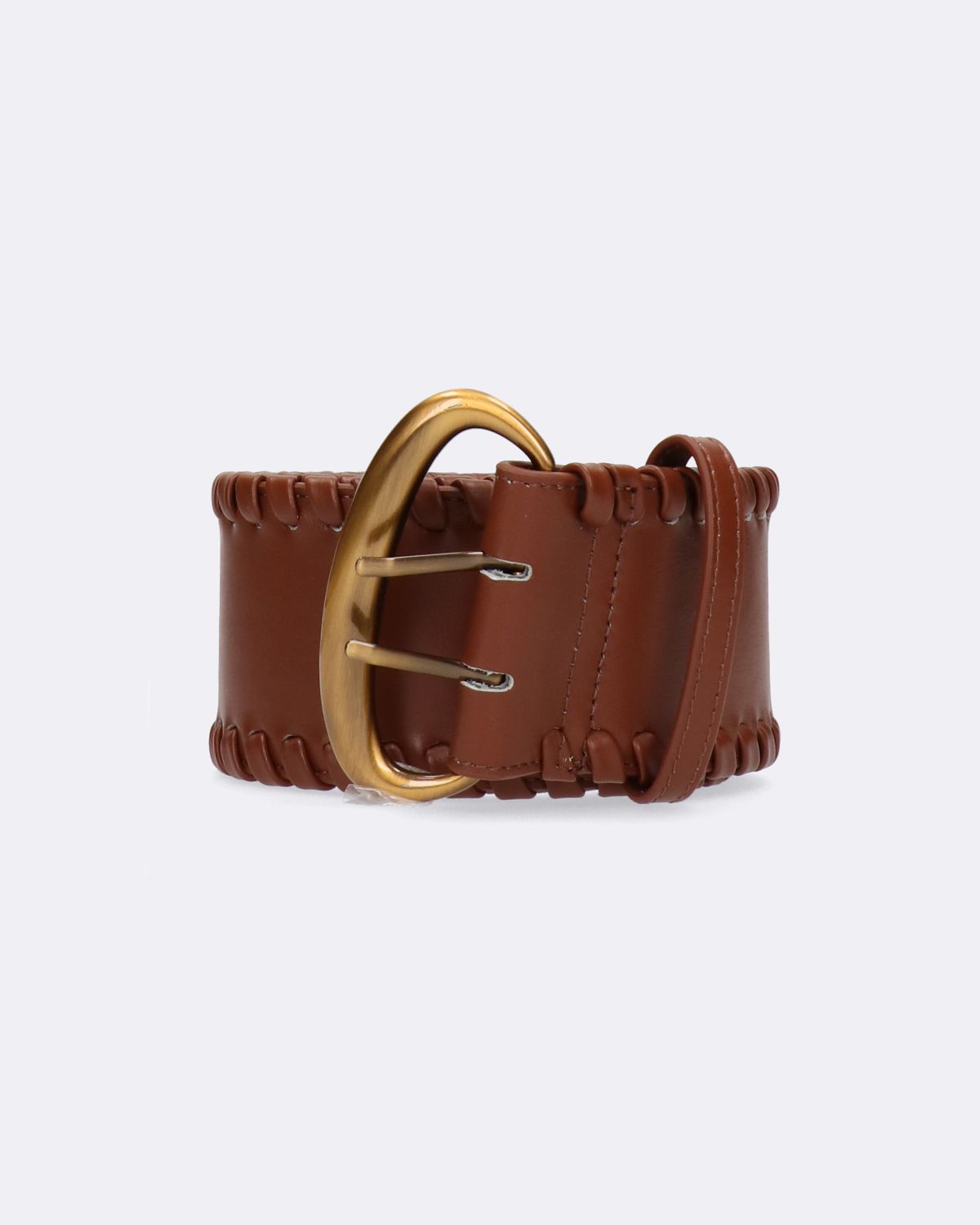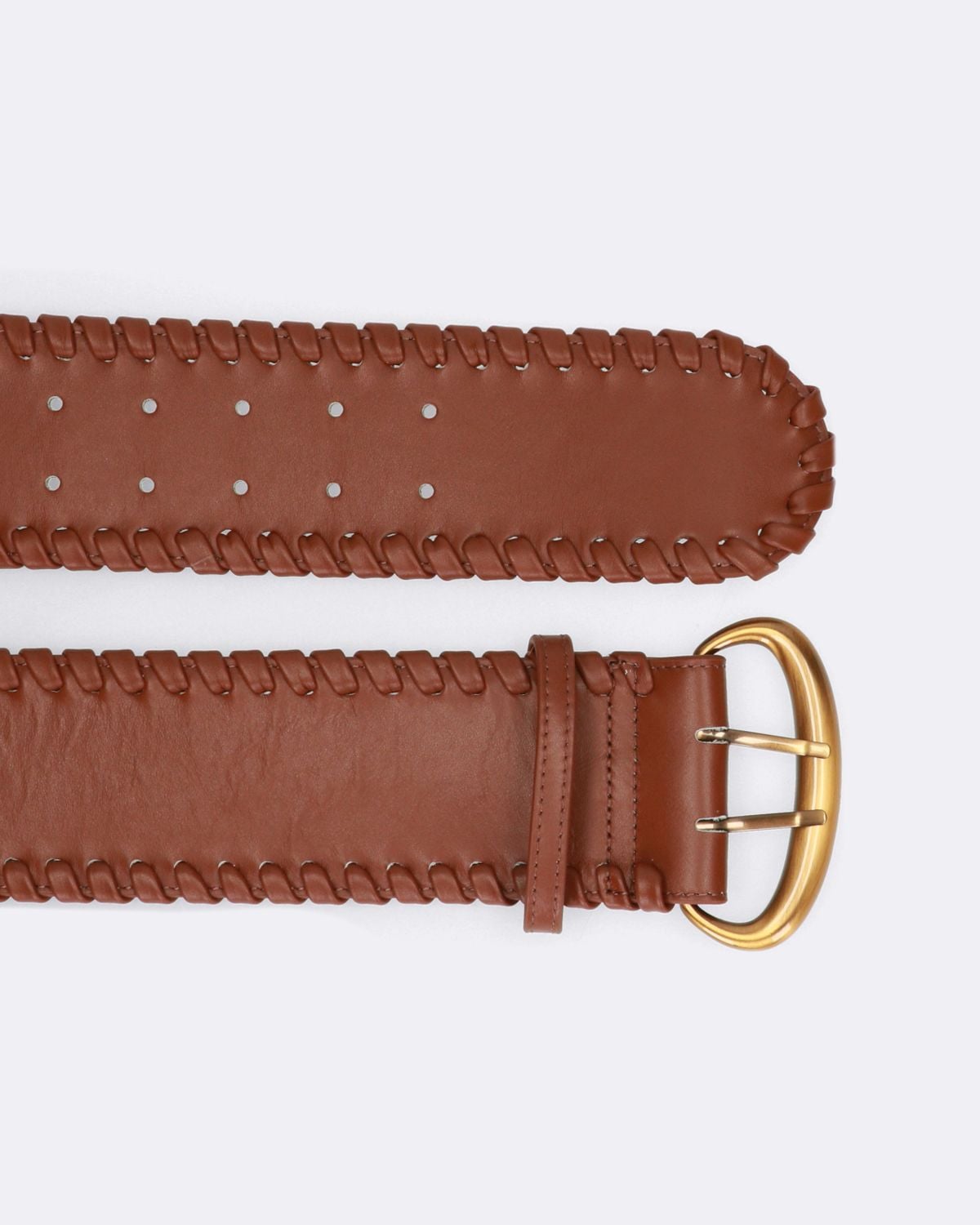 Cintura alta marrone bruciato in pelle con impunture fatte a mano, chiusura con fibbia, altezza 7cm, collezione donna Maliparmi Autunno Inverno 2023/2024