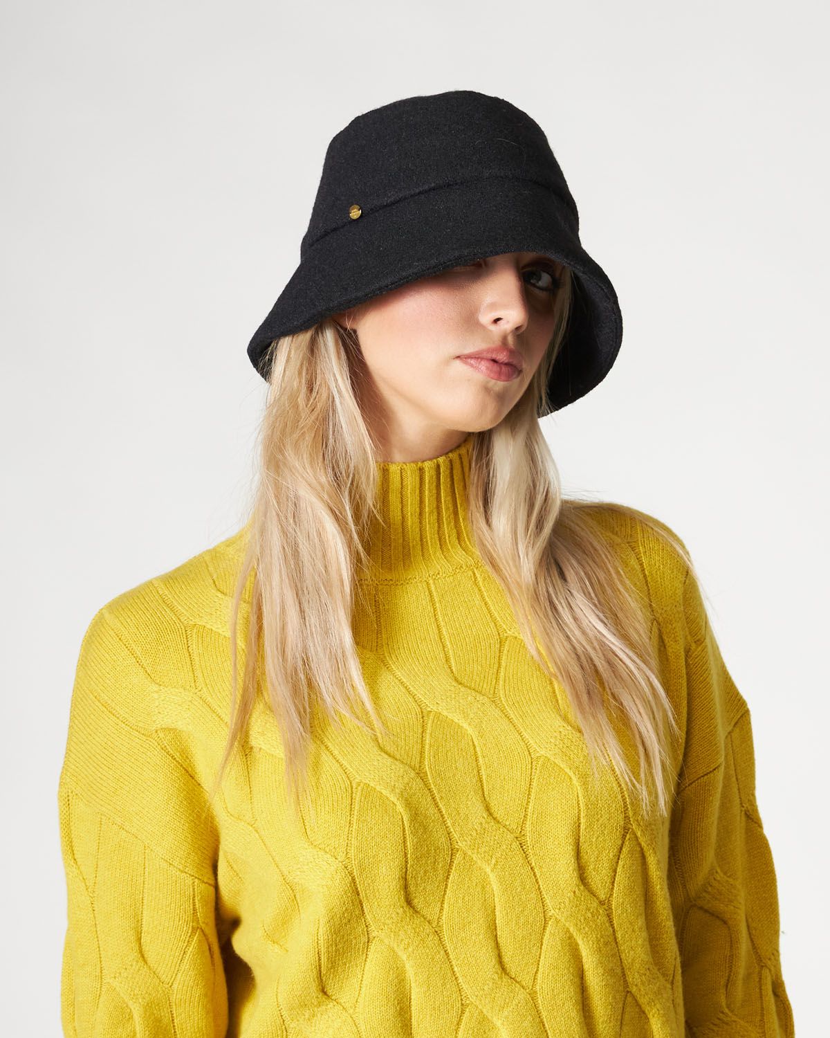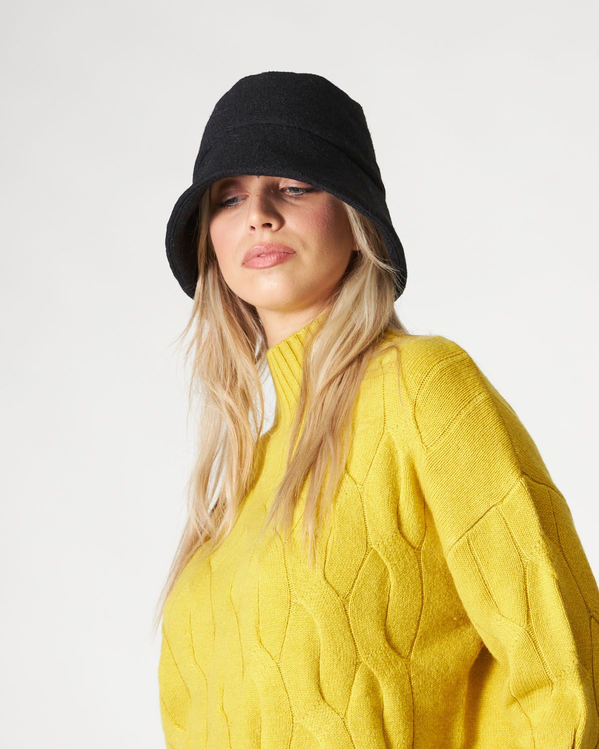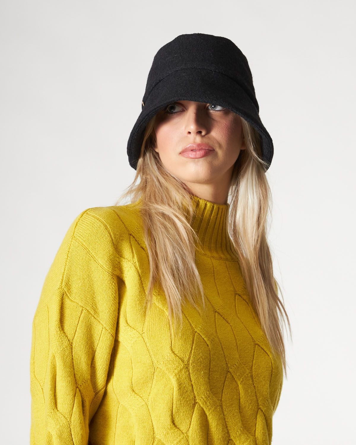 Cappello effetto lana cotta color nero, made in Italy, Collezione Autunno Inverno Rosamunda 2023/24