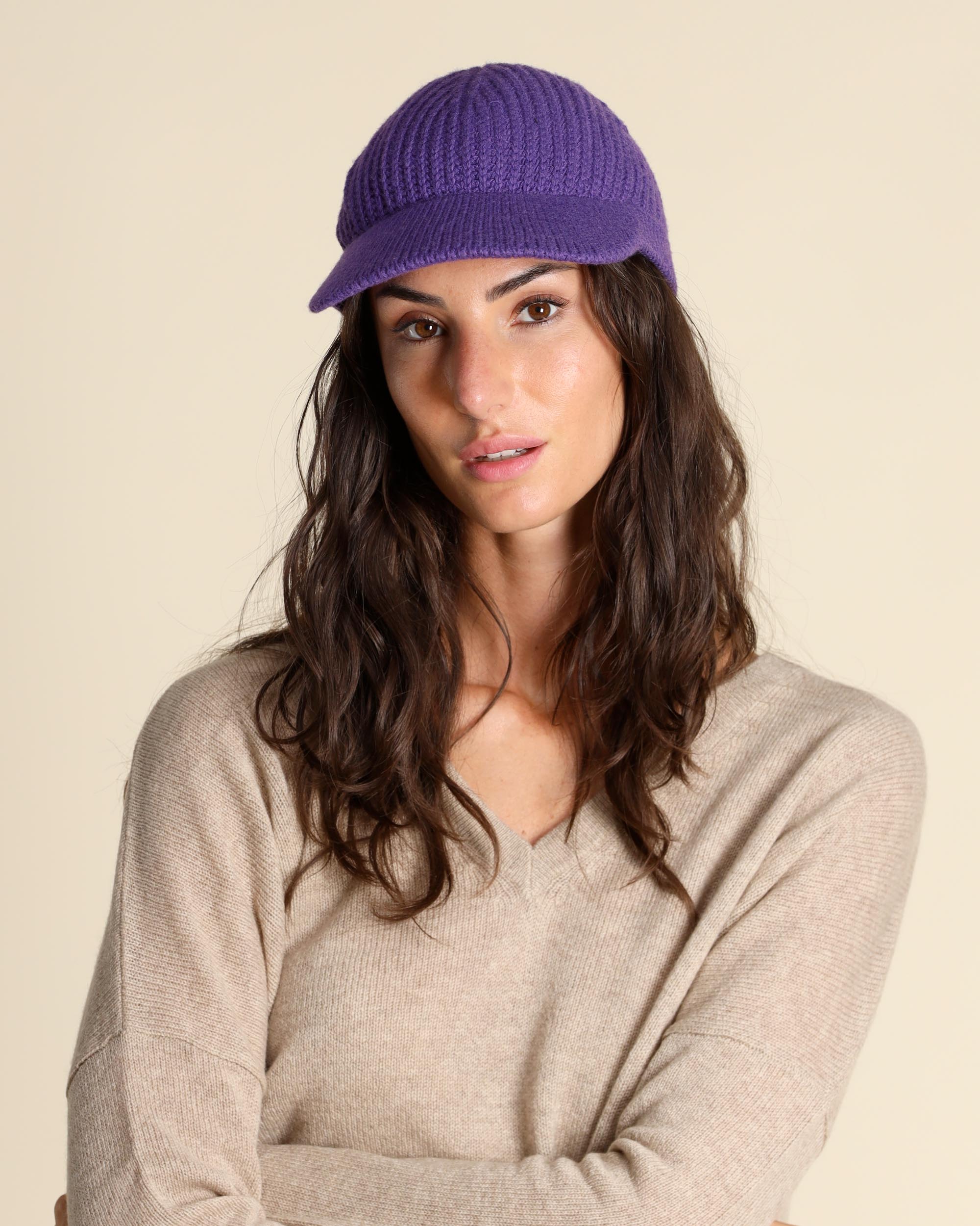 Cappello con visiera viola in misto viscosa, lana merino e cashmere, made in Italy, collezione donna Rosamunda Autunno Inverno 2025/26