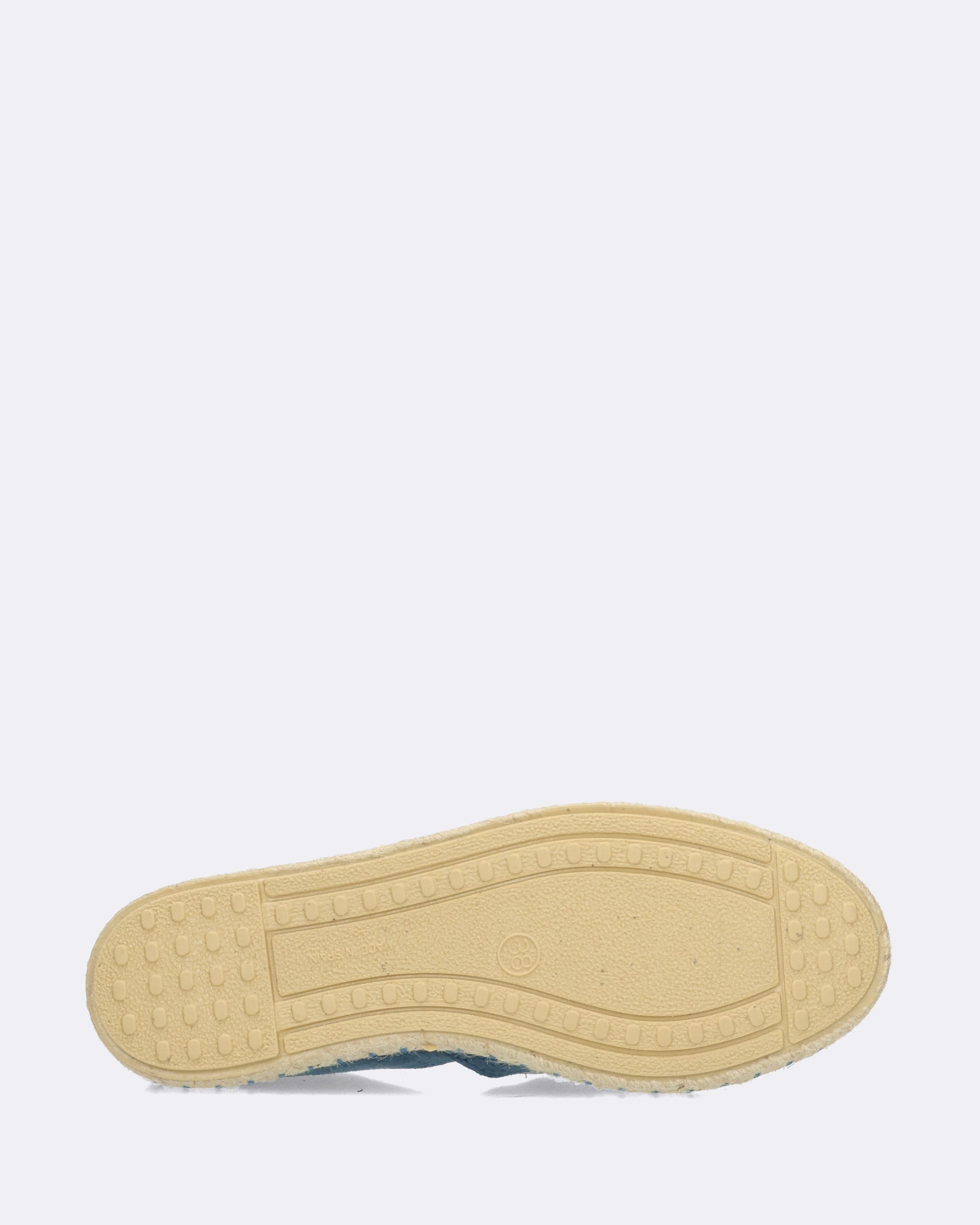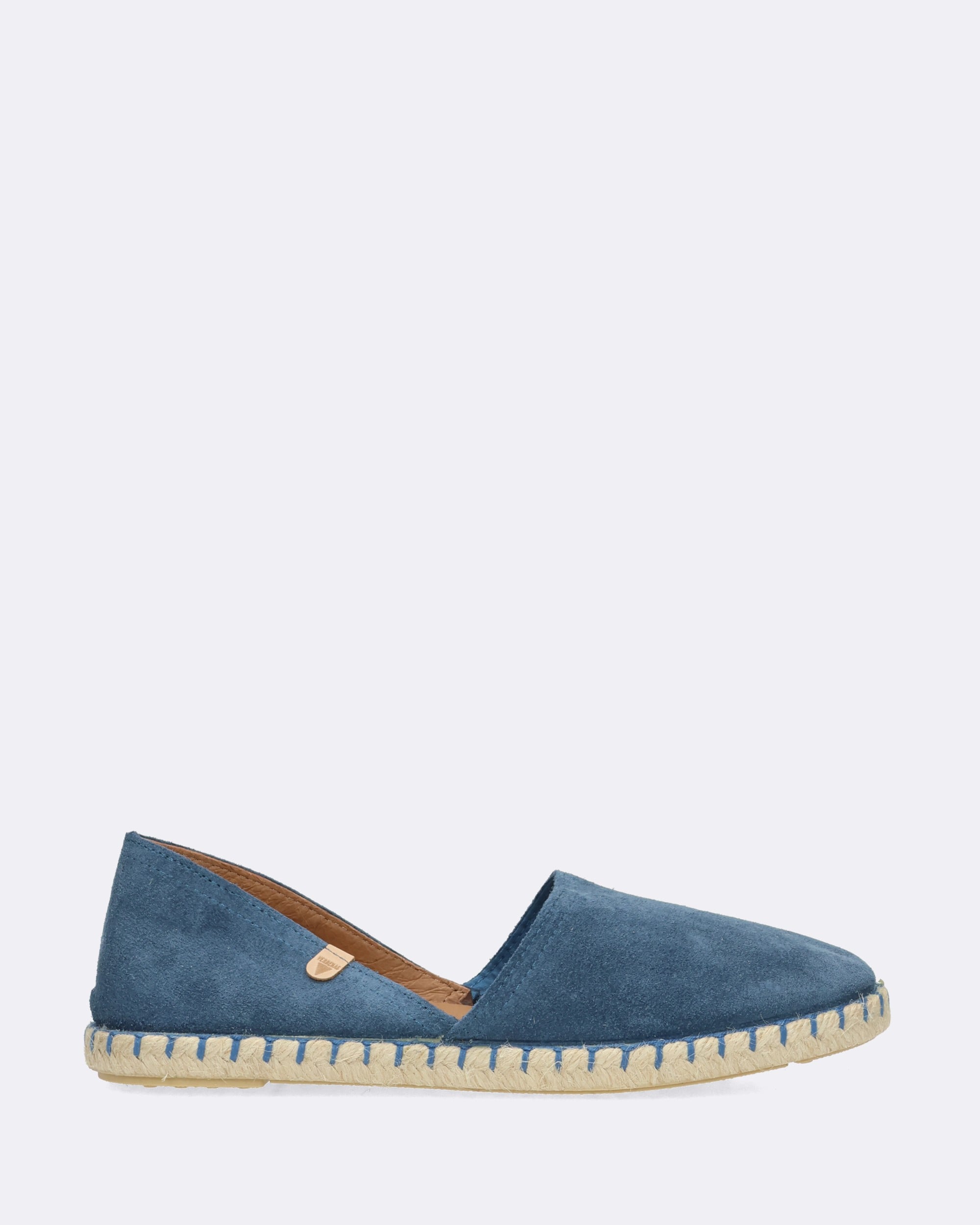 Espadrilles in pelle scamosciata blu, sottopiede in pelle imbottito, platform 10mm, suola in gomma, punta tonda, piccolo elastico interno sul tallone, collezione donna Verbenas Primavera Estate