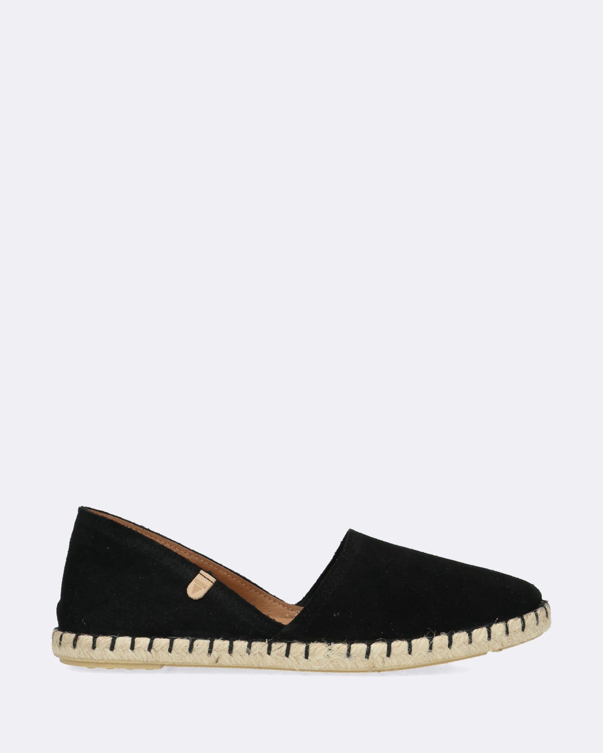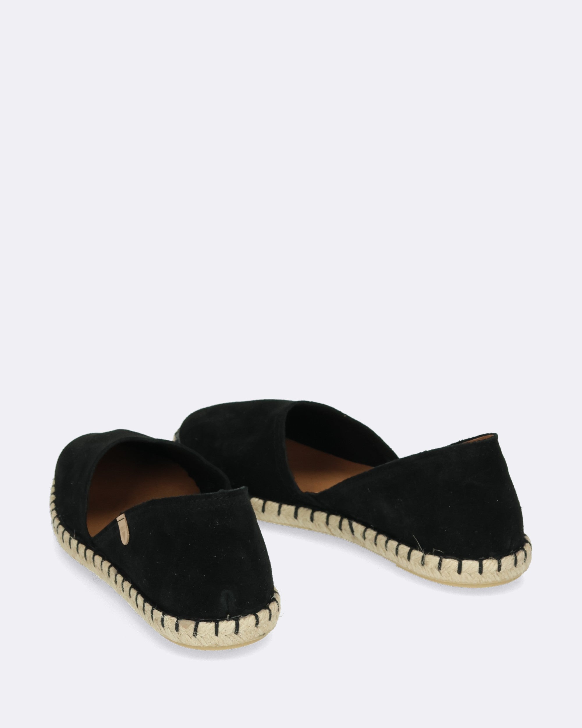 Espadrilles in pelle scamosciata nera, sottopiede in pelle imbottito, platform 10mm, suola in gomma, punta tonda, piccolo elastico interno sul tallone, collezione donna Verbenas Primavera Estate