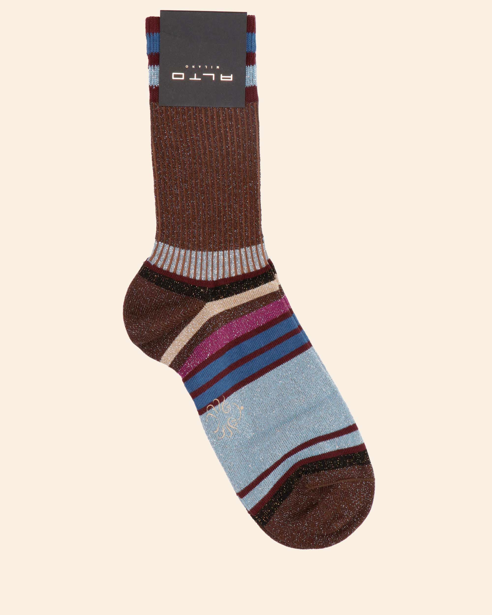 Calza corta multicolor a righe in misto cotone stretch con lurex, taglia unica, made in Italy, collezione Alto Milano