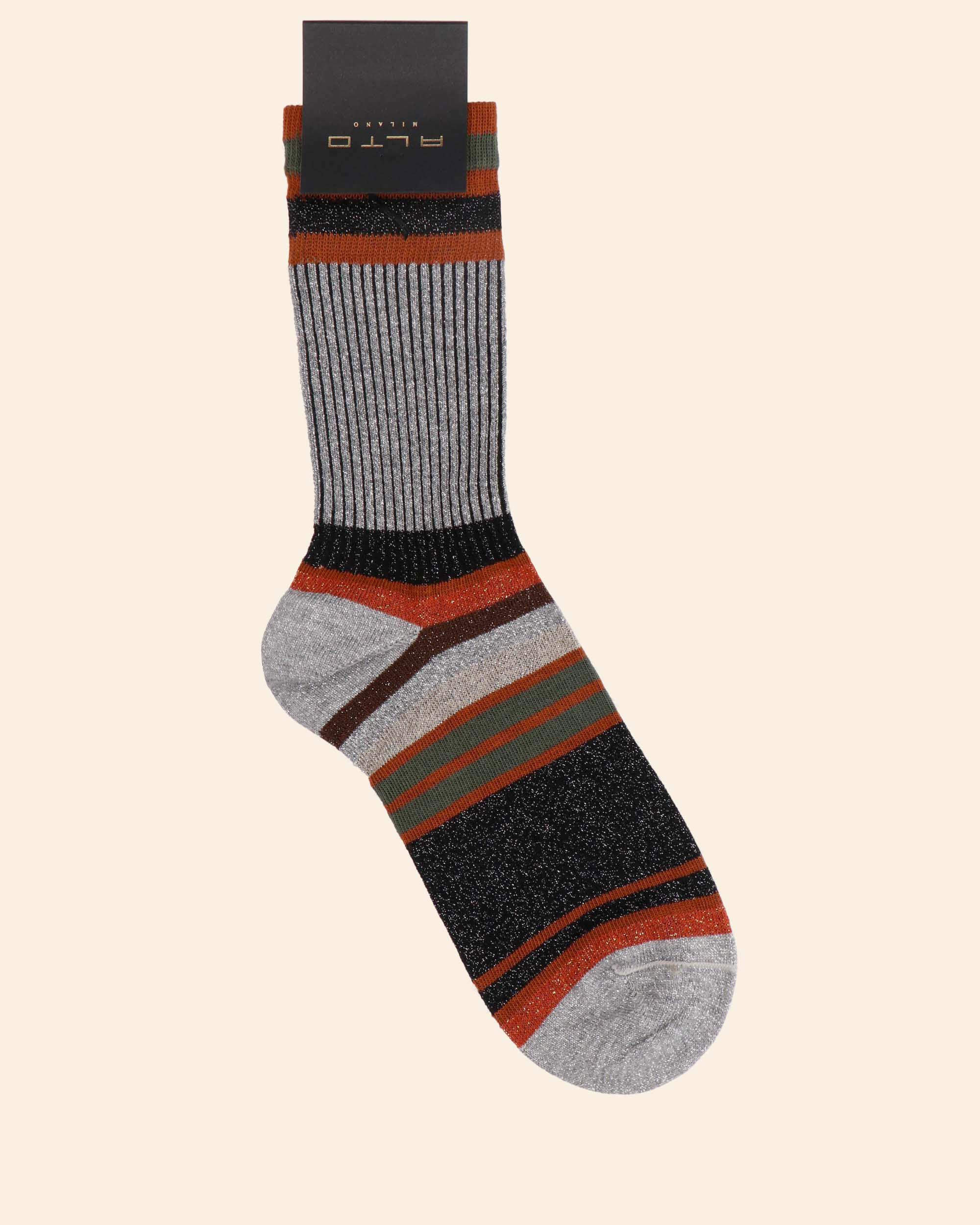 Calza corta multicolor a righe in misto cotone stretch con lurex, taglia unica, made in Italy, collezione Alto Milano