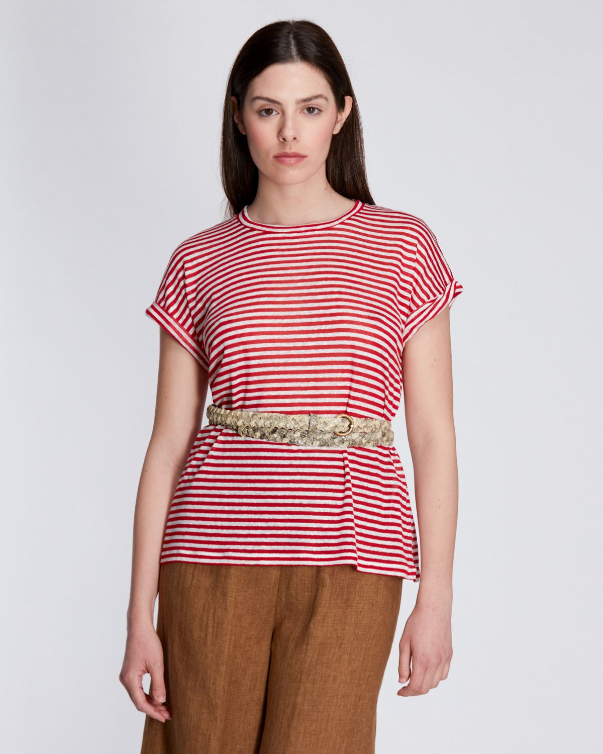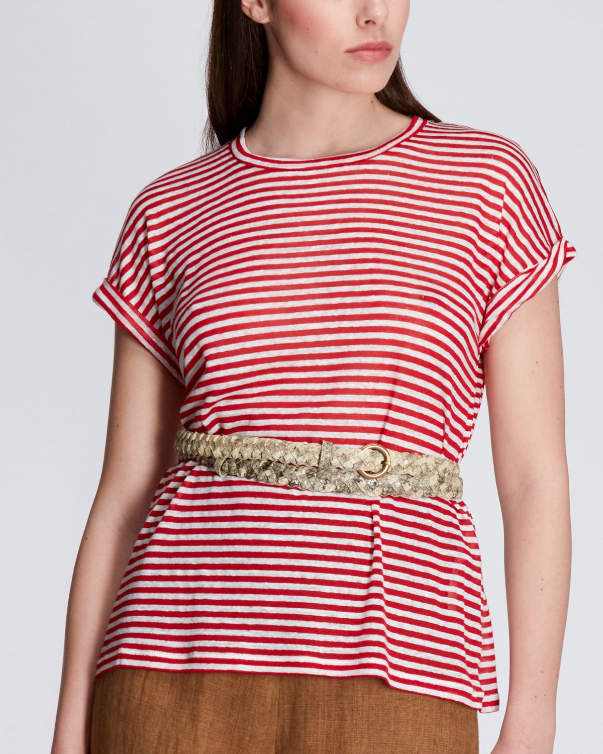 Cintura intrecciata in whips color naturale, fibbia metallica brunita, doppio giro, taglia unica, collezione donna Maliparmi Primavera Estate 2022