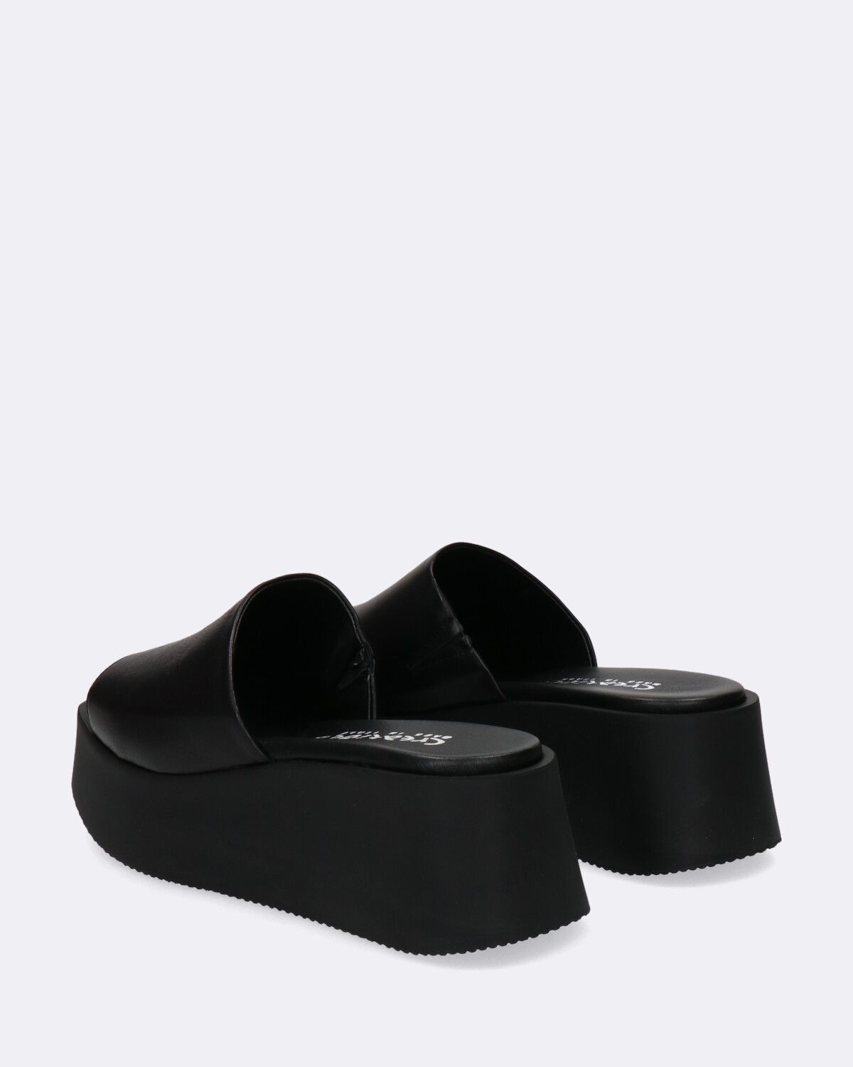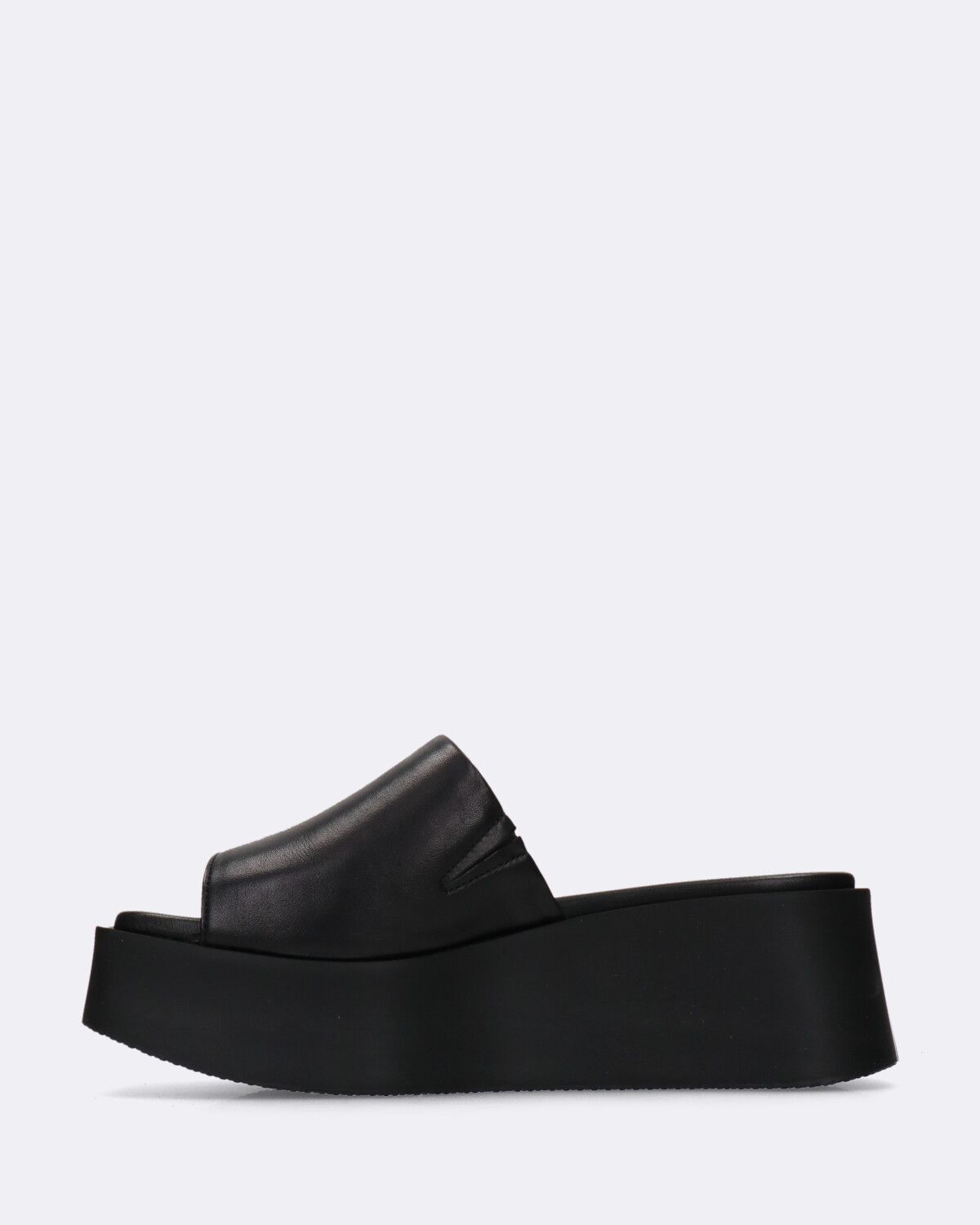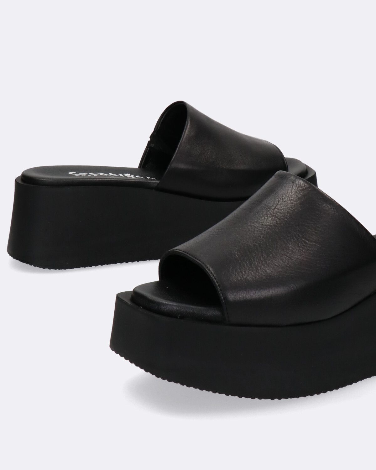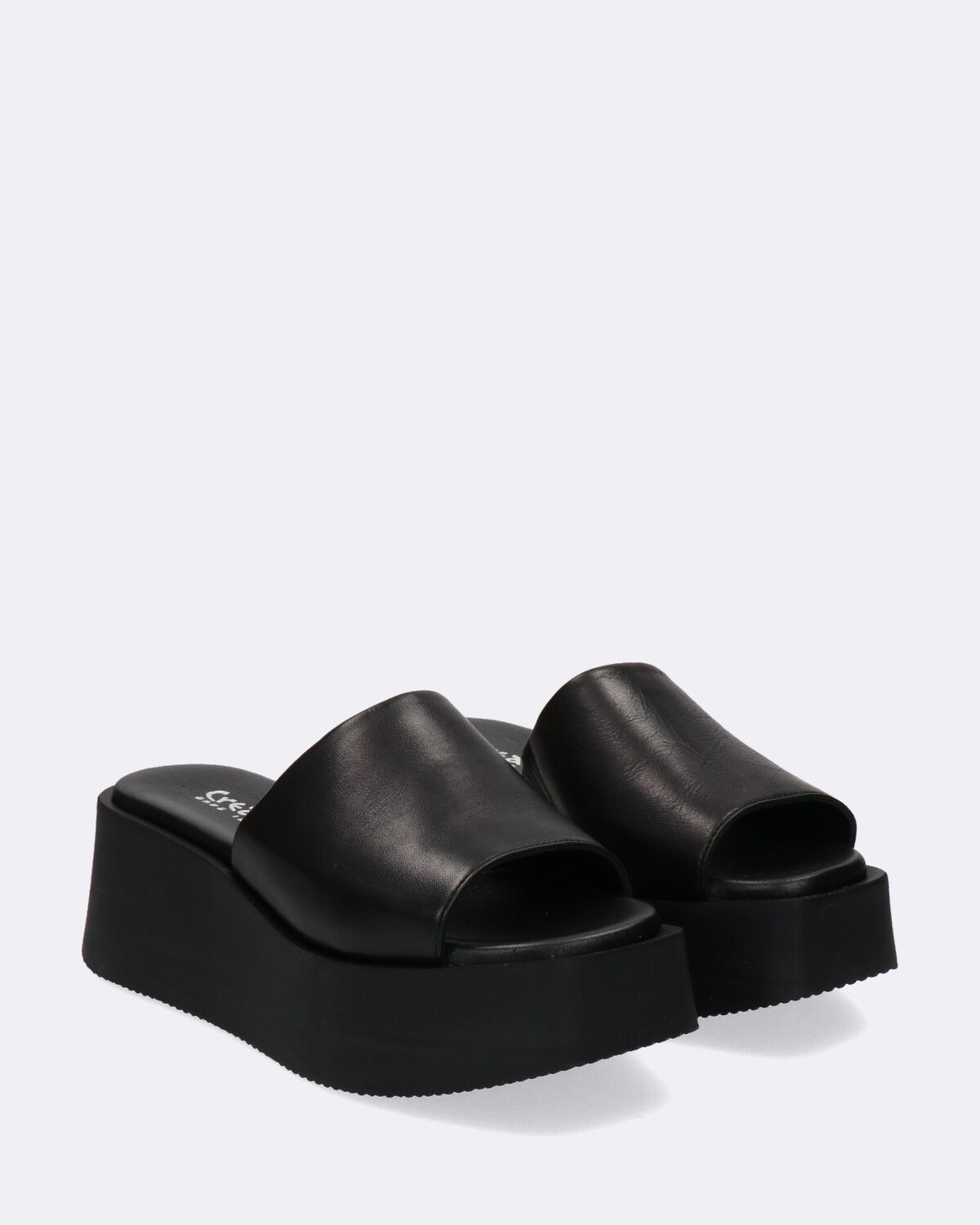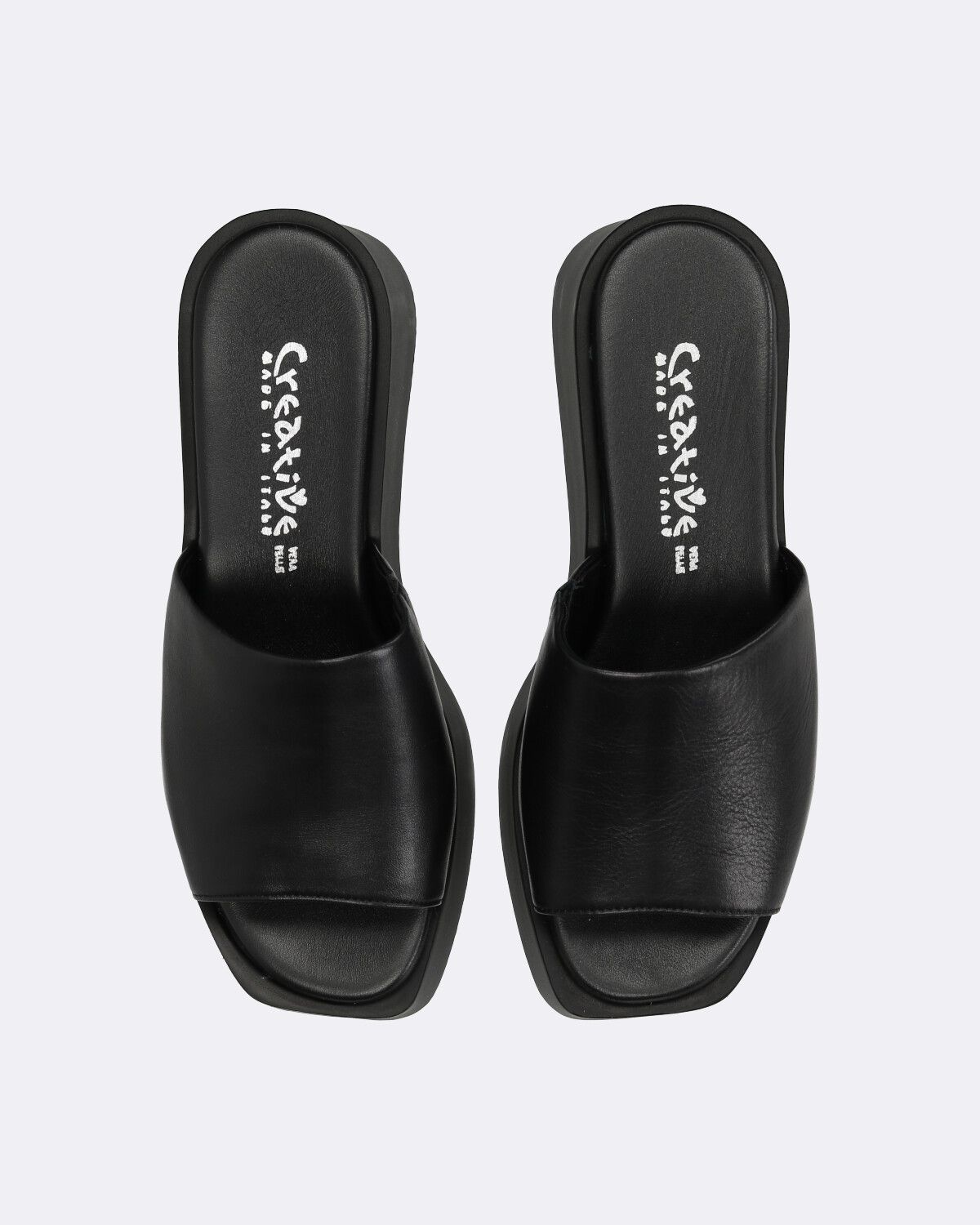 Sandali neri in pelle, zeppa 55mm, sottopiede imbottito in pelle, suola in gomma, made in Italy, collezione donna Creative Primavera Estate 2022