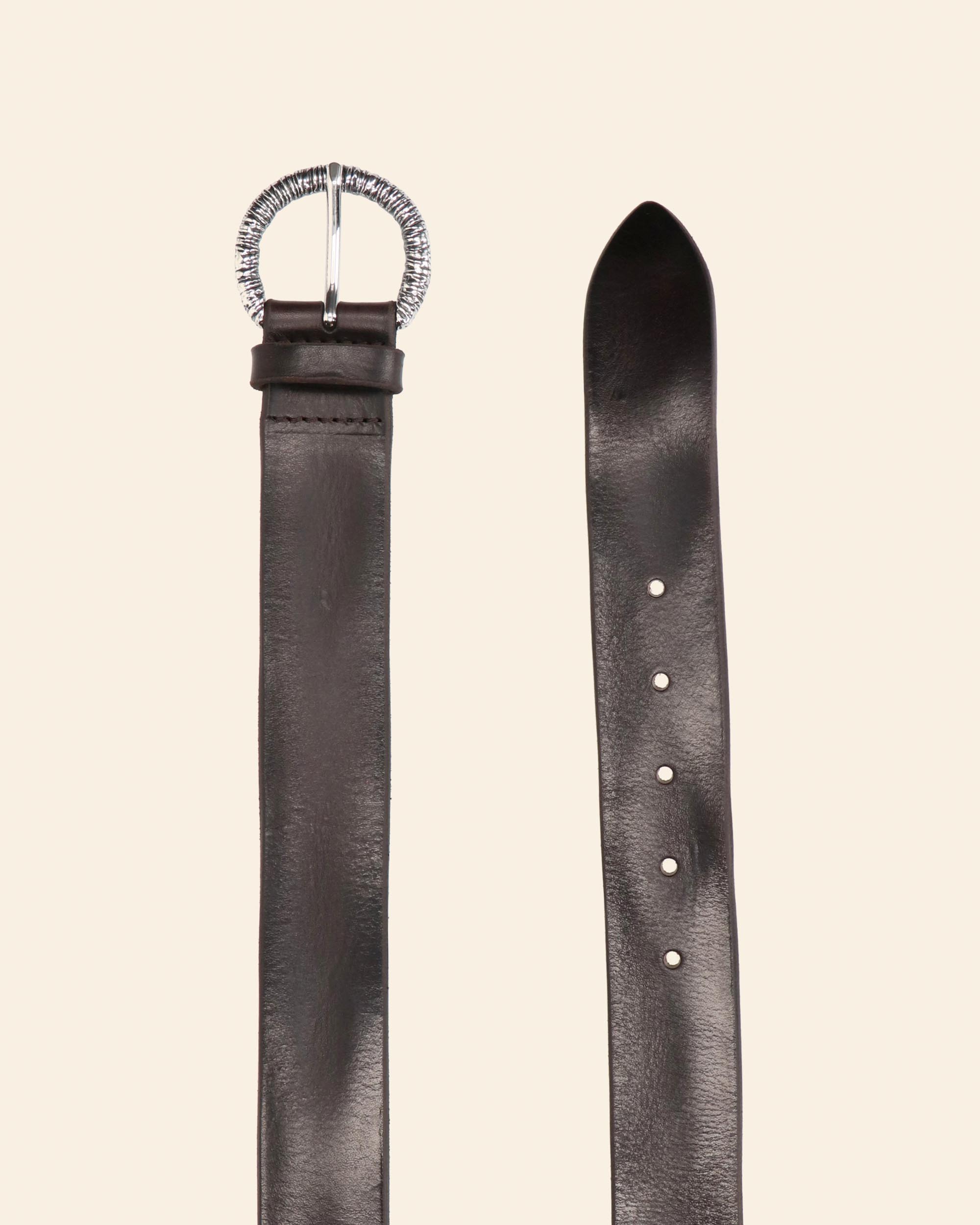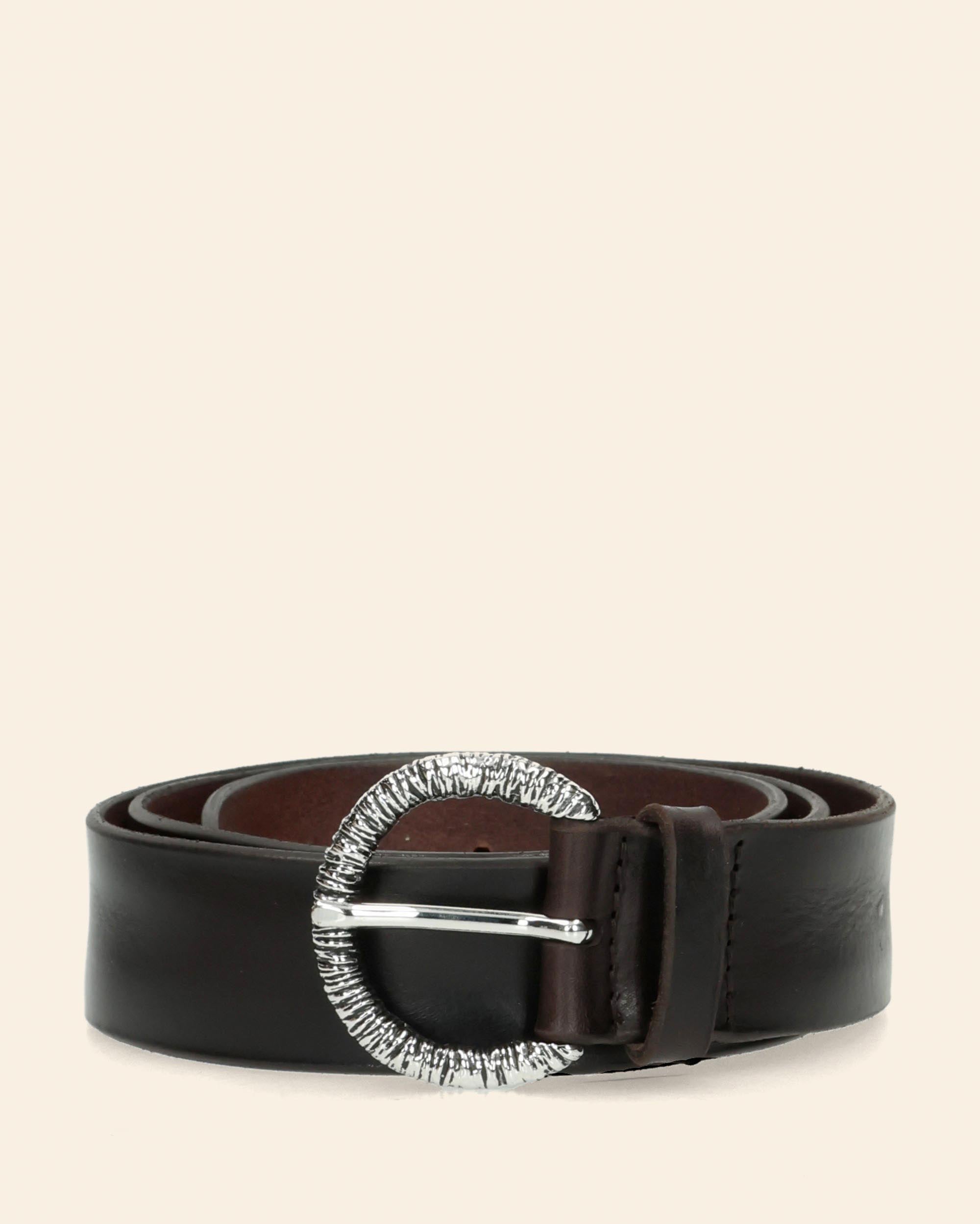 Cintura in cuoio schiacciato spazzolato testa moro, altezza 3.5 cm, fibbia con finitura nickel spazzolato, made in Italy, collezione donna Orciani