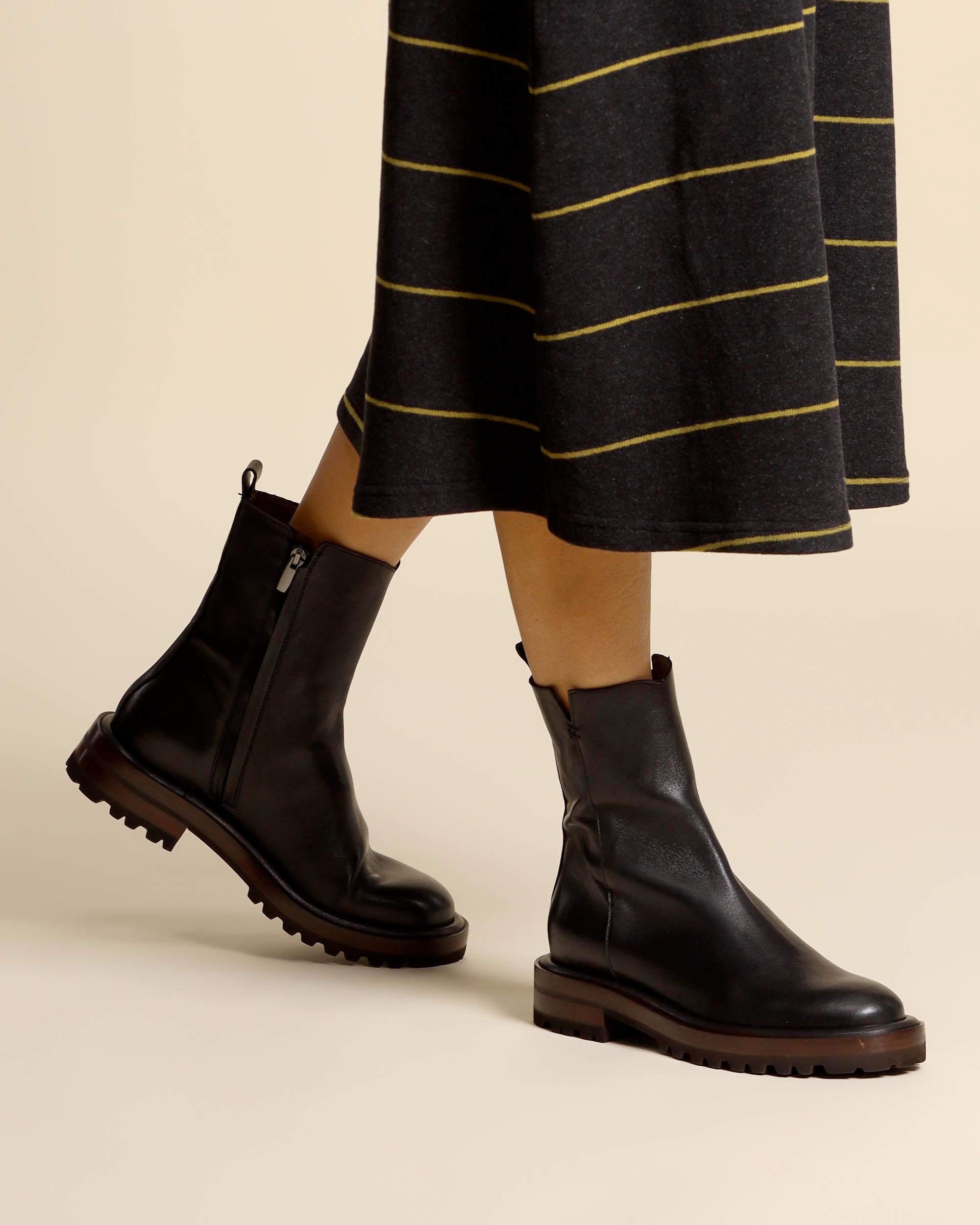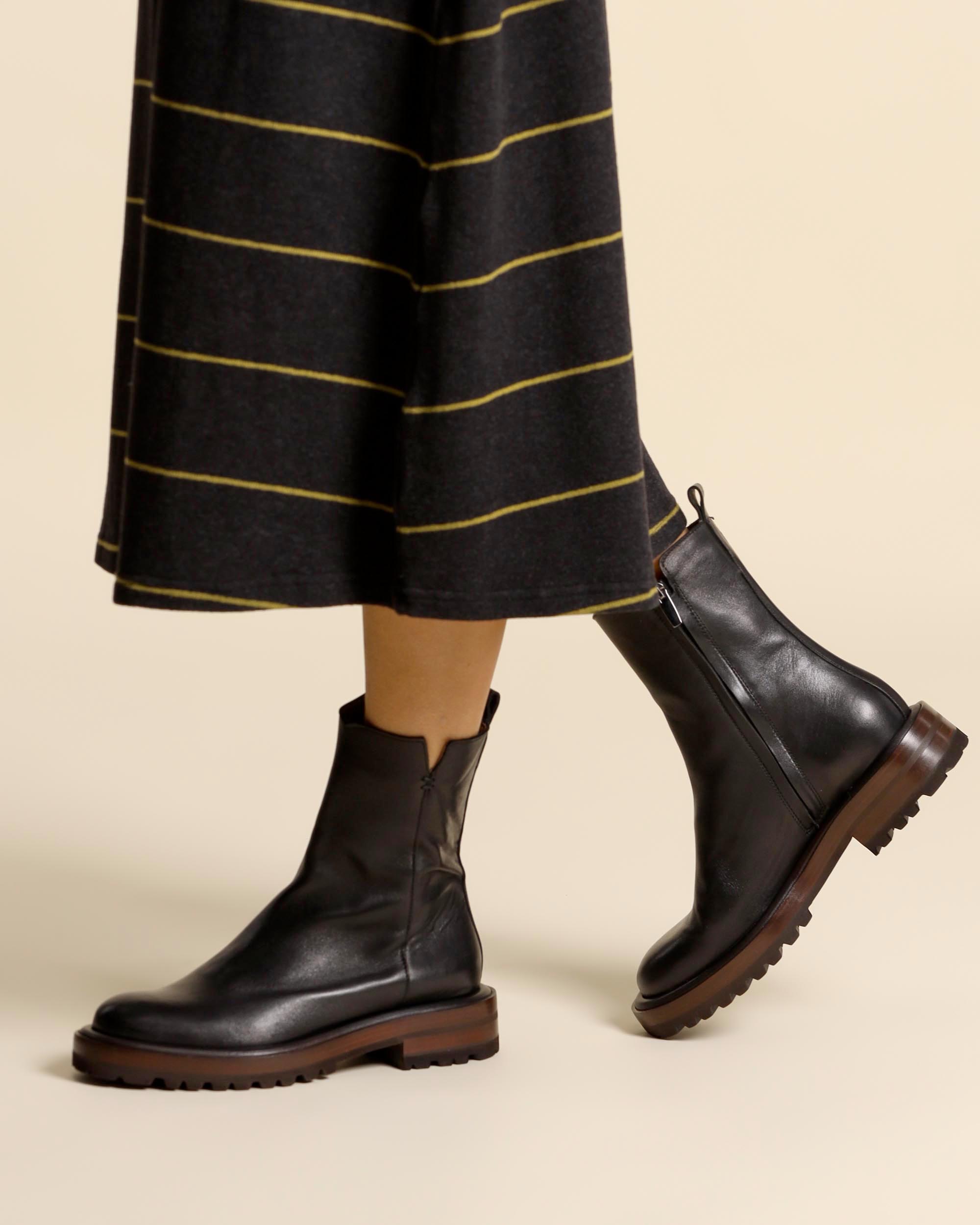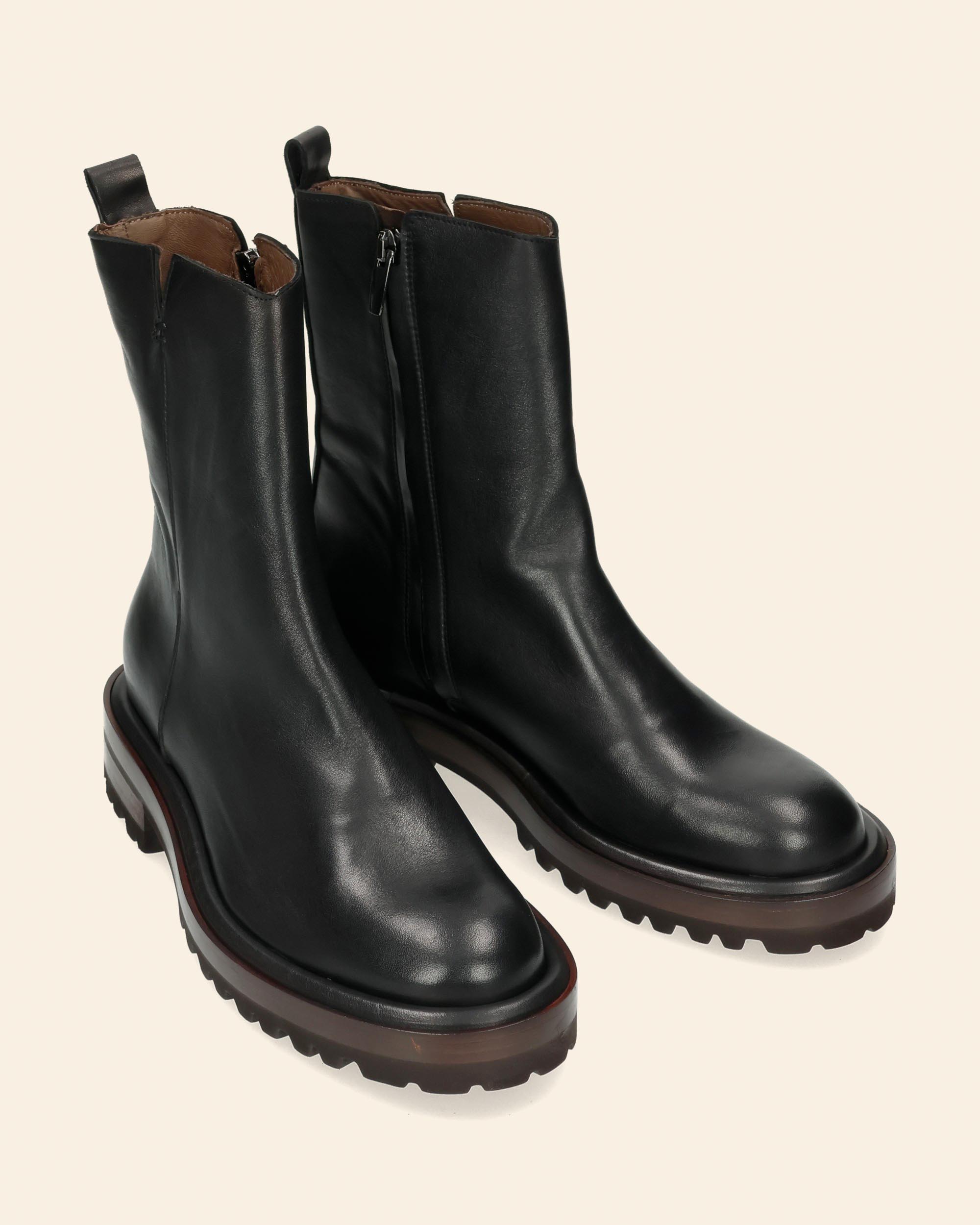 Tronchetti in pelle nera, suola in gomma, fodera in pelle, tacco 35mm, chiusura con zip interna, sottopiede in pelle, punta tonda, made in Italy, collezione donna Duccio del Duca autunno inverno 2025/2026