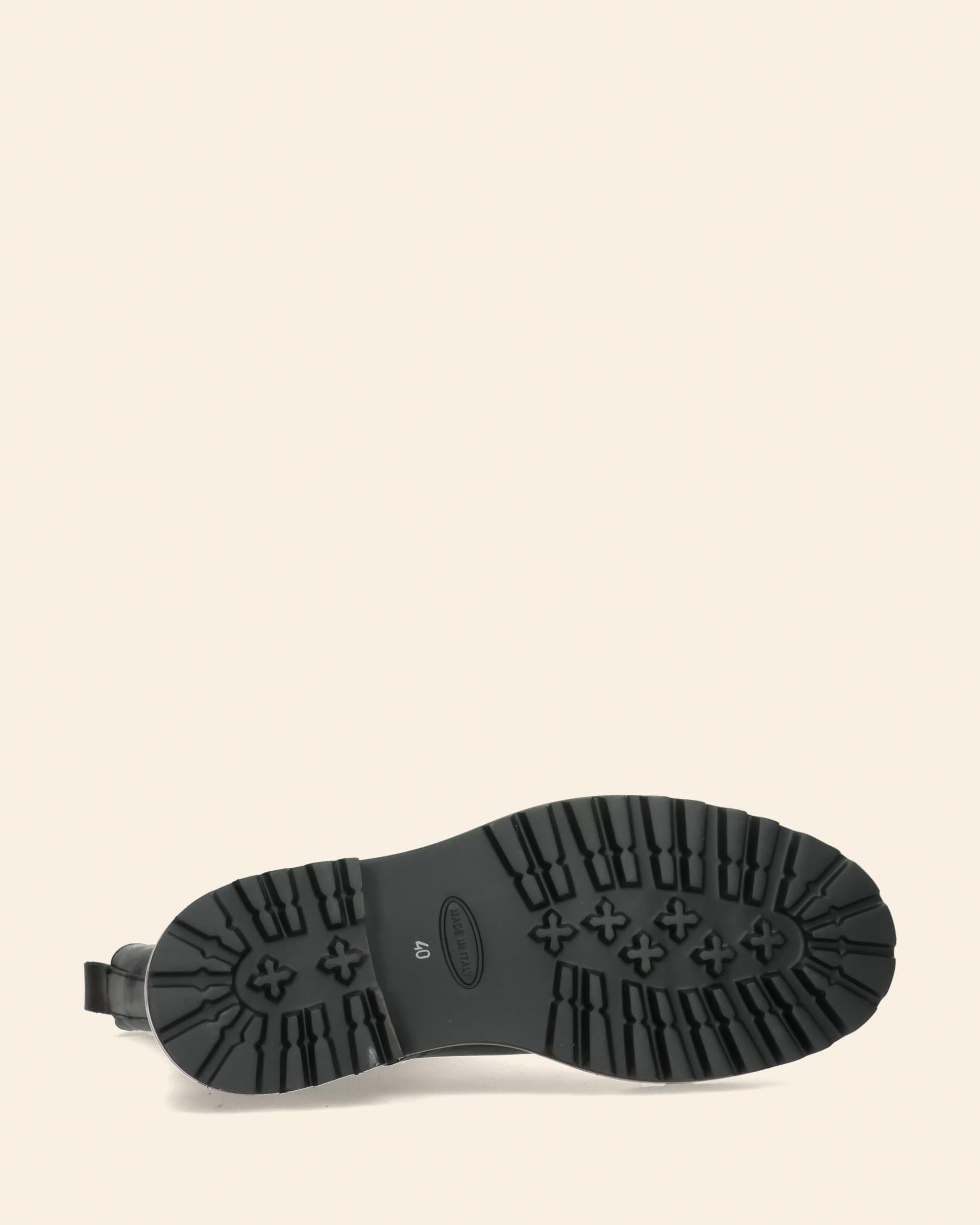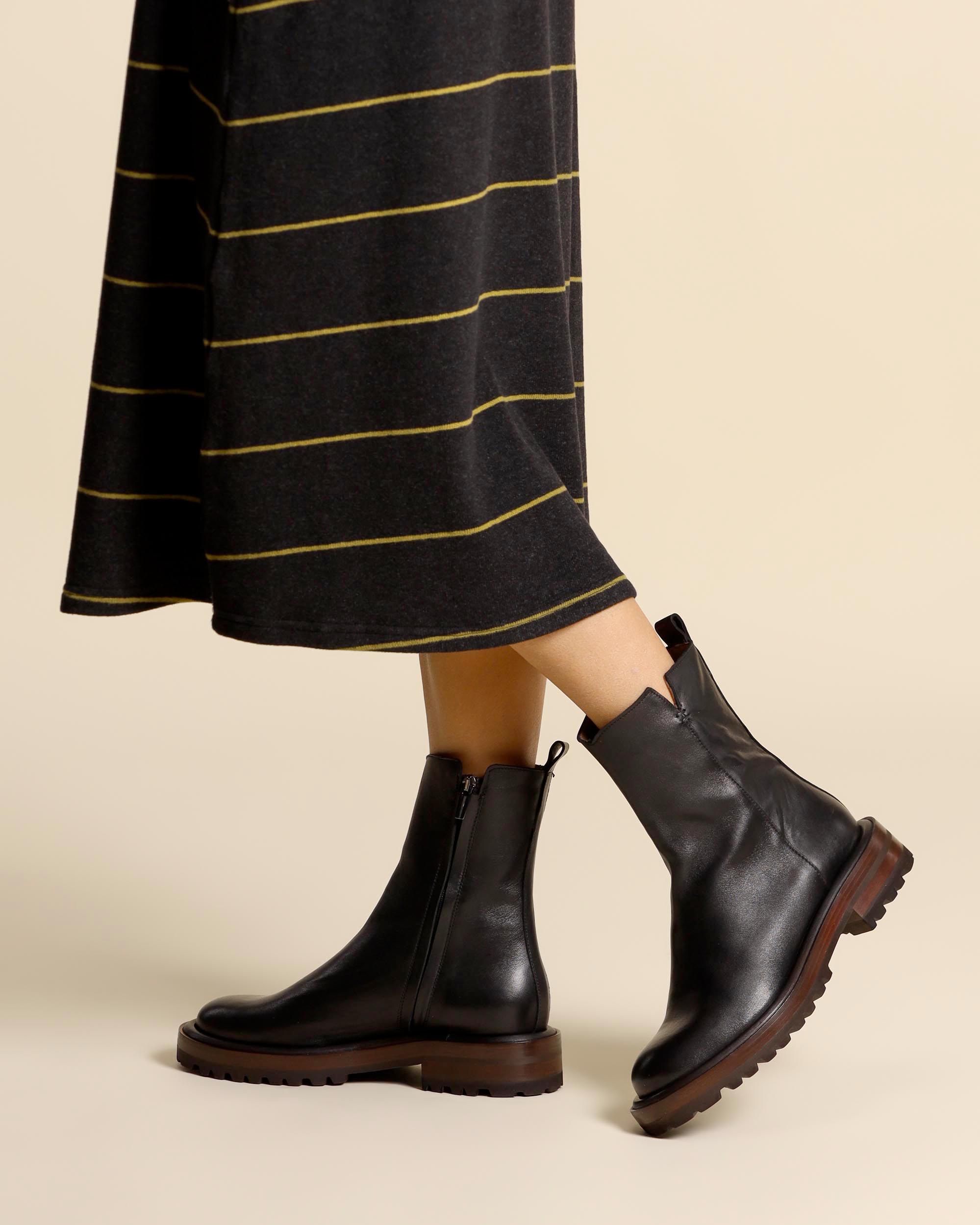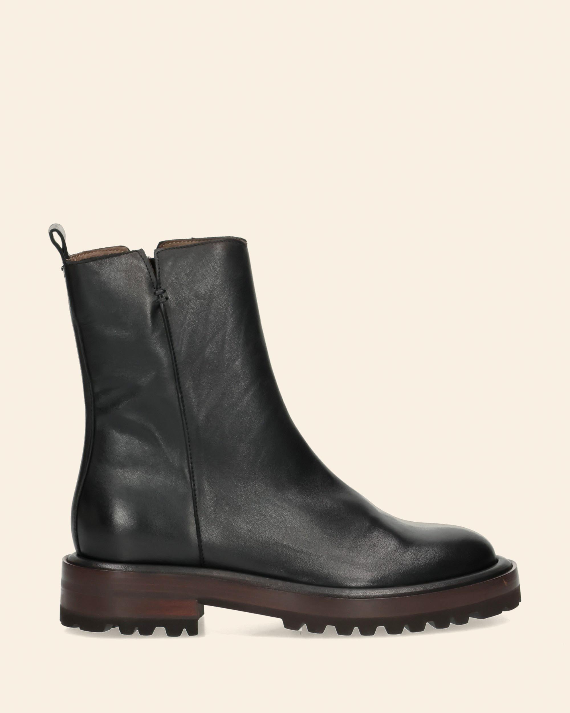 Tronchetti in pelle nera, suola in gomma, fodera in pelle, tacco 35mm, chiusura con zip interna, sottopiede in pelle, punta tonda, made in Italy, collezione donna Duccio del Duca autunno inverno 2025/2026