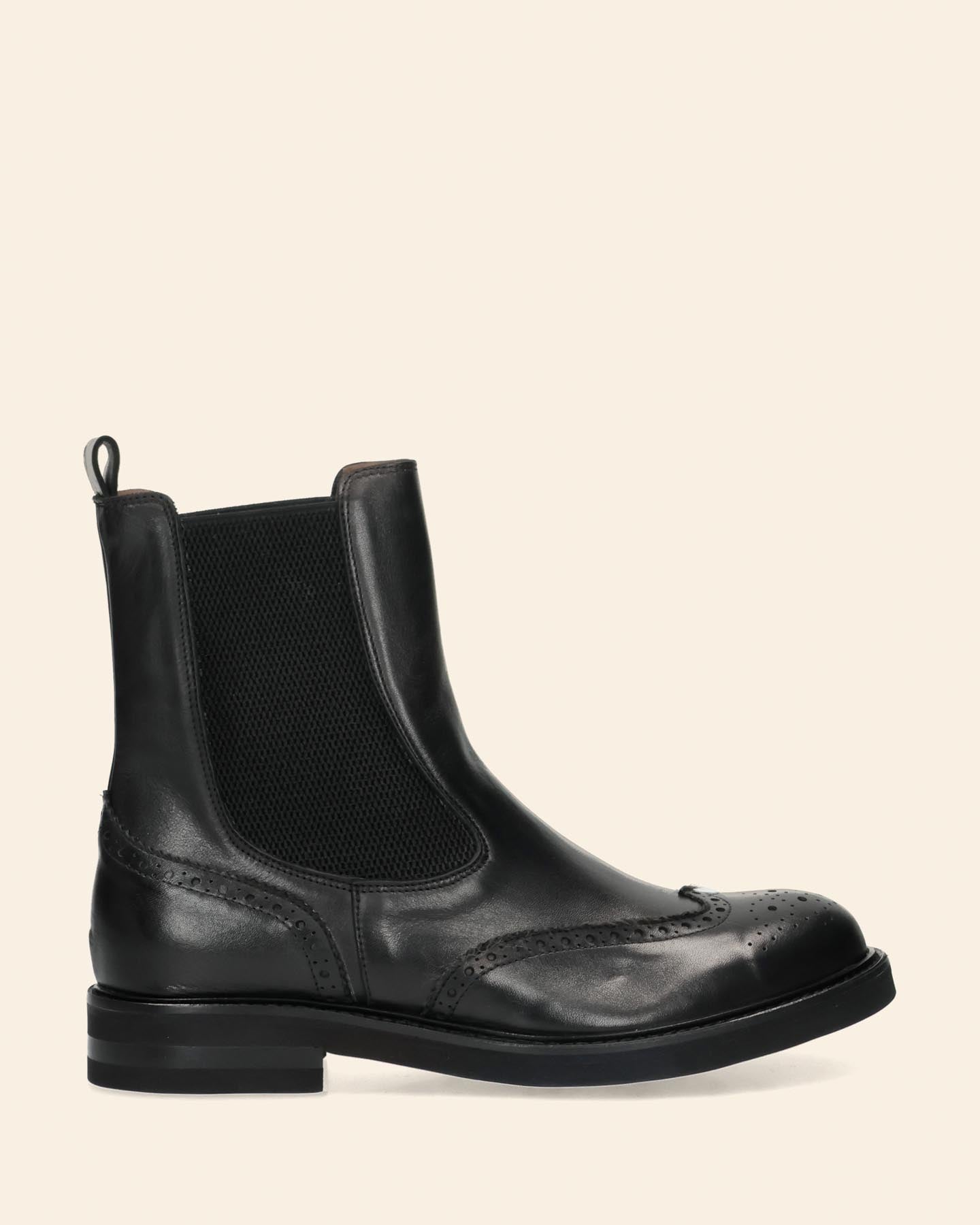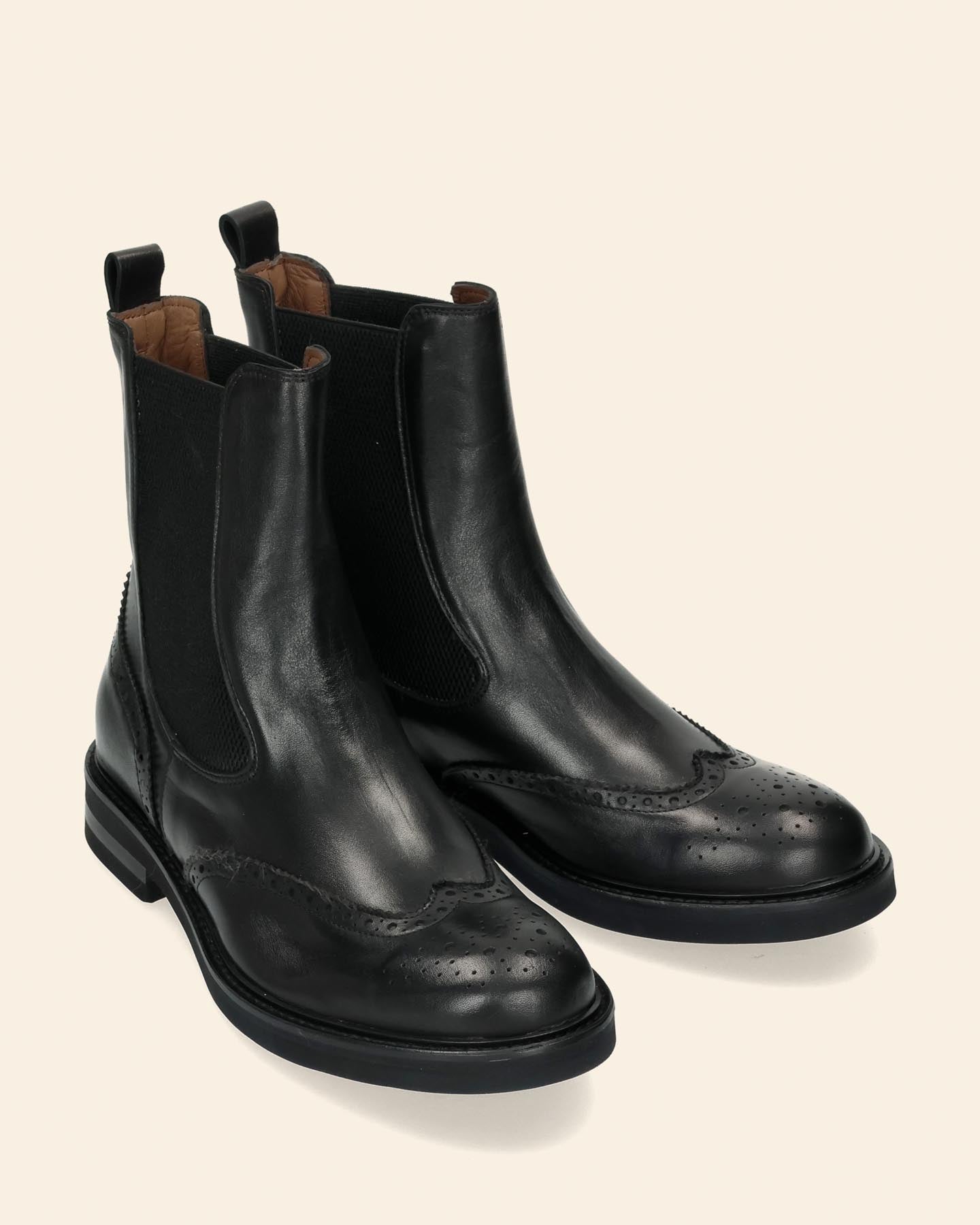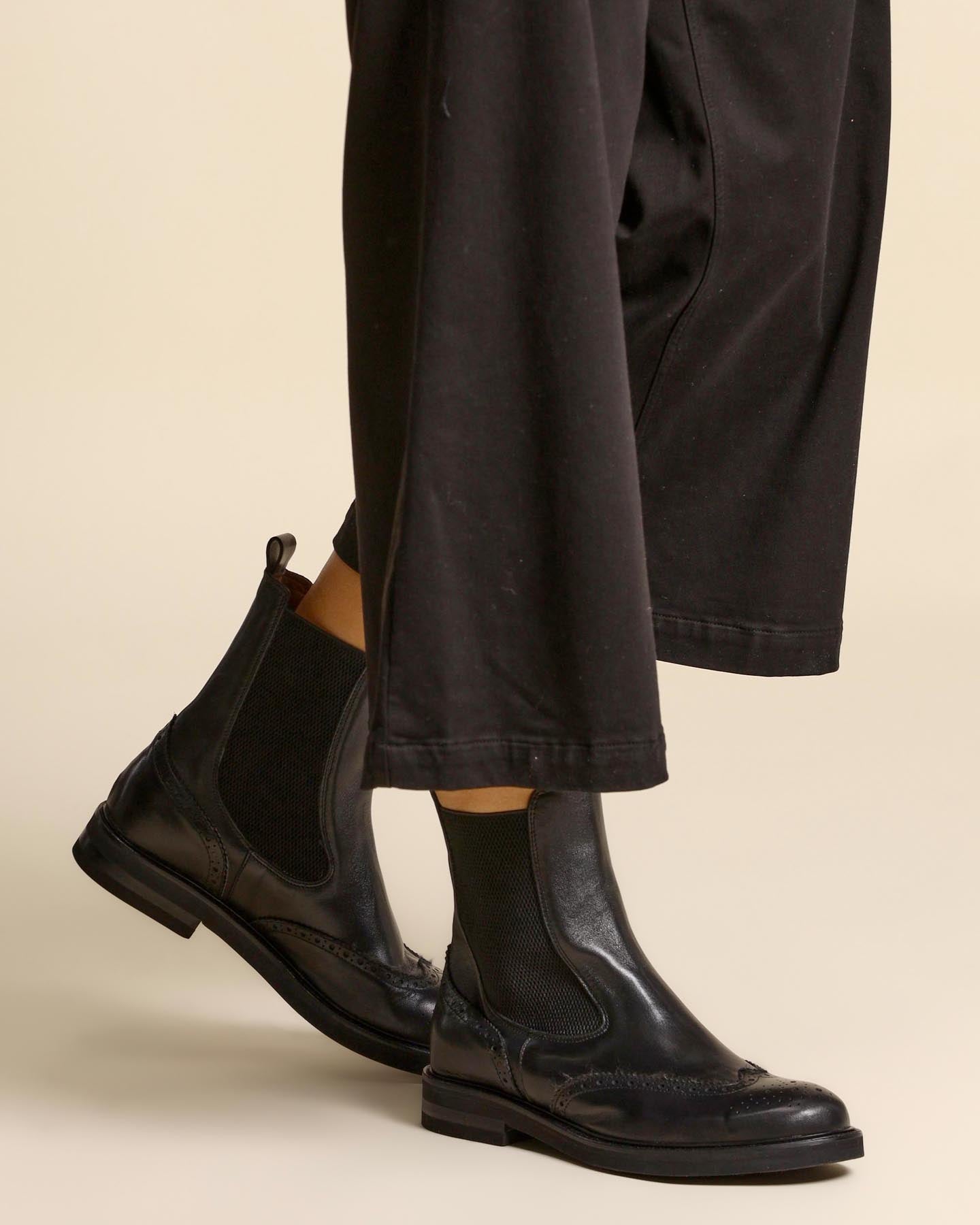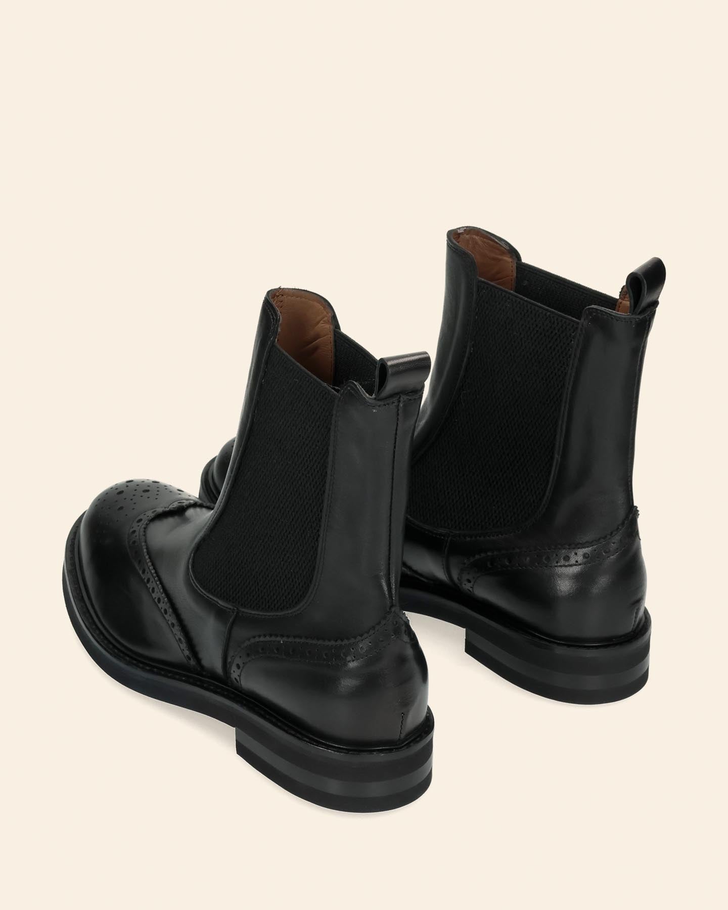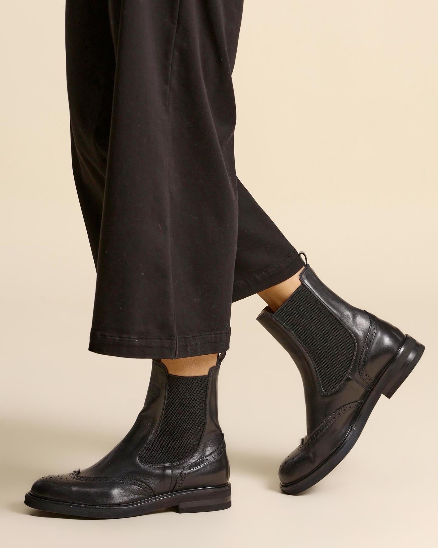 Tronchetti in pelle nera, elastici in tinta, suola in gomma Morflex Vibram, fodera in pelle, tacco 30mm, sottopiede in pelle, punta tonda, made in Italy, collezione donna Duccio del Duca autunno inverno 2025/2026