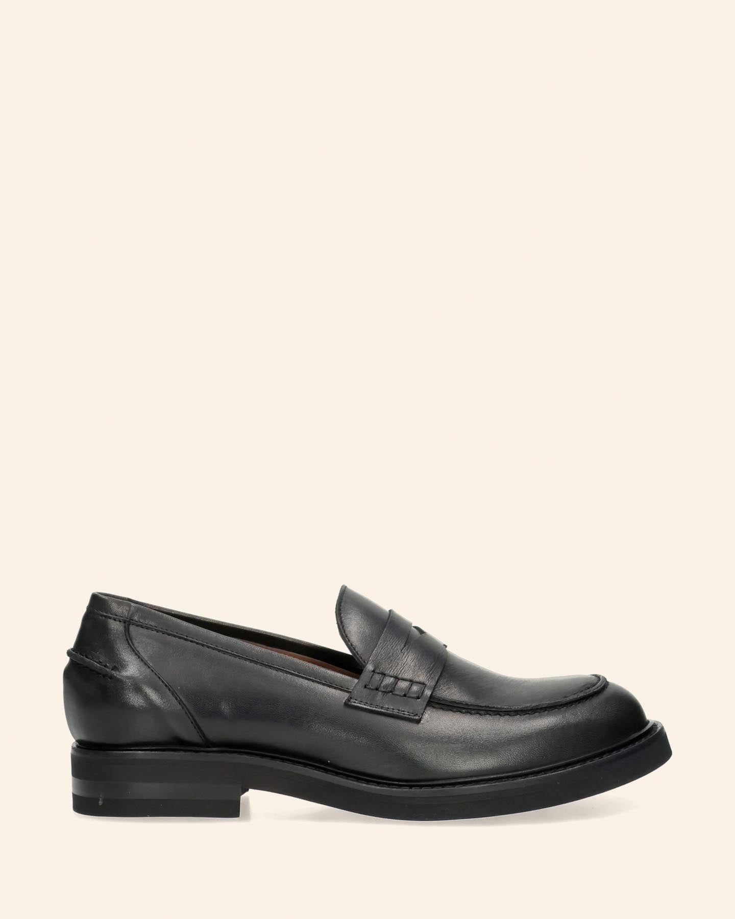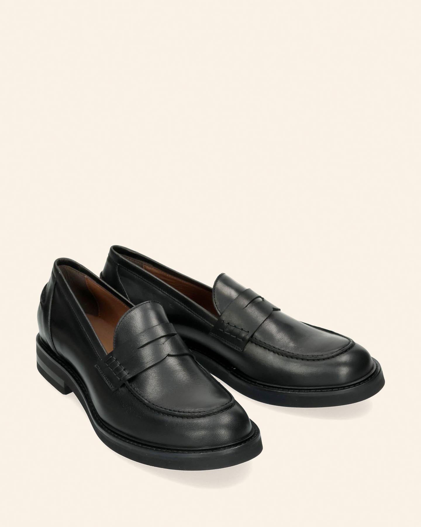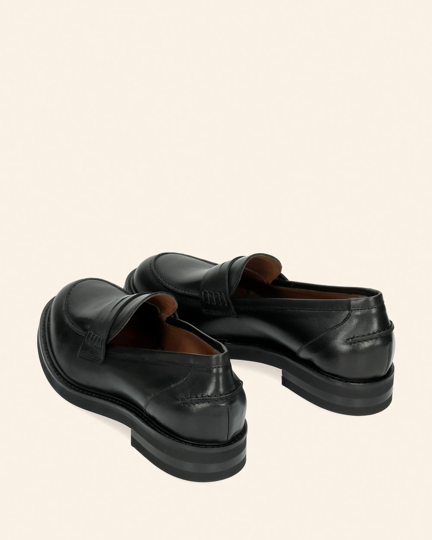 Mocassini in pelle nera, sottopiede in pelle, fodera in pelle, punta tonda, tacco 30mm, suola in gomma, Made in Italy, Collezione Autunno Inverno Duccio del Duca 2025/2026