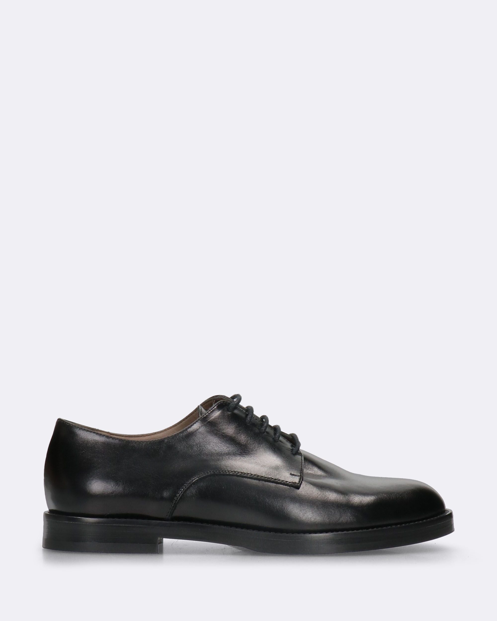 Stringate in pelle nera, lacci in tinta, tacco 25mm, suola in gomma, fodera in pelle, sottopiede in pelle, punta tonda, made in Italy, collezione donna Duccio del Duca Autunno Inverno 2024/25