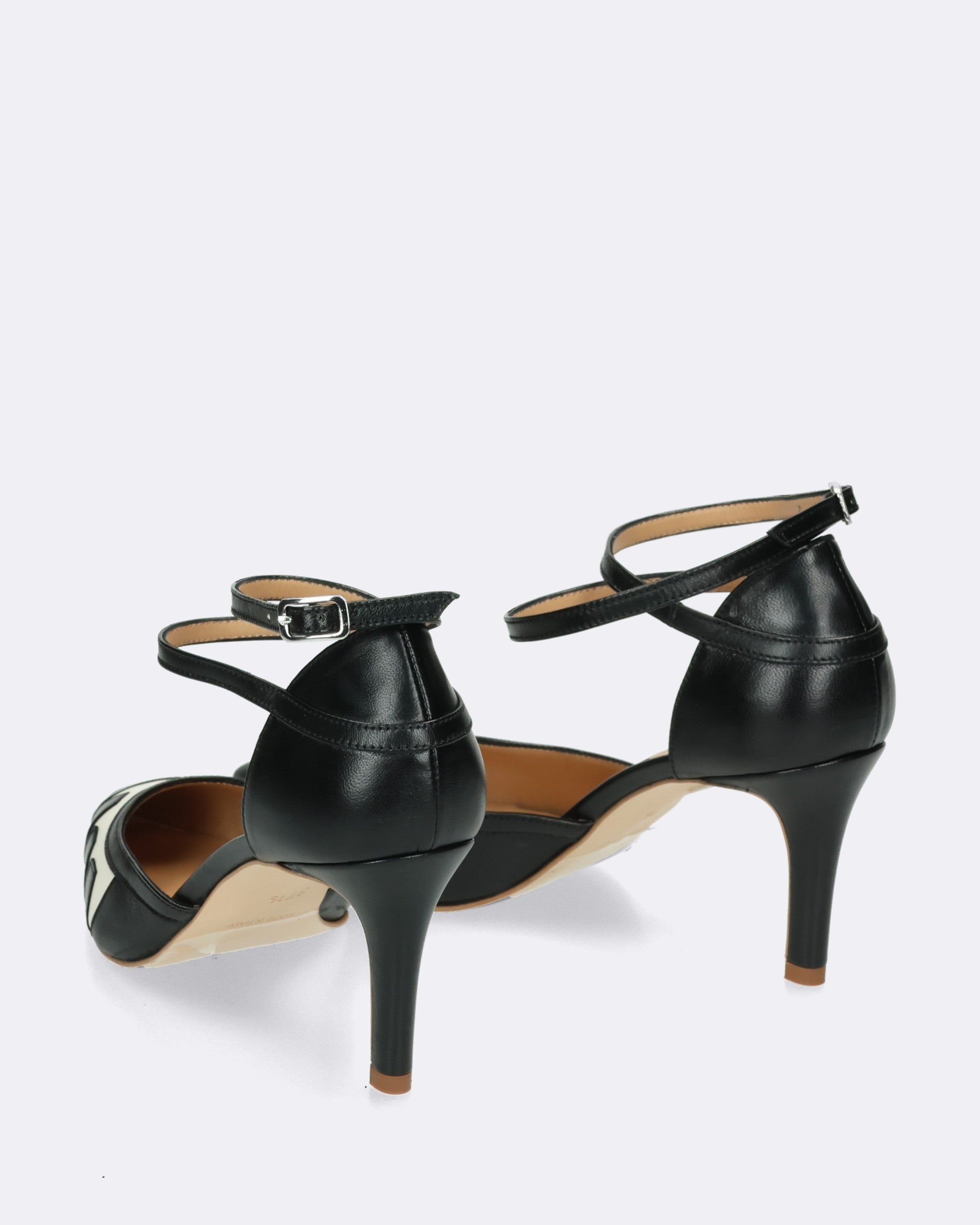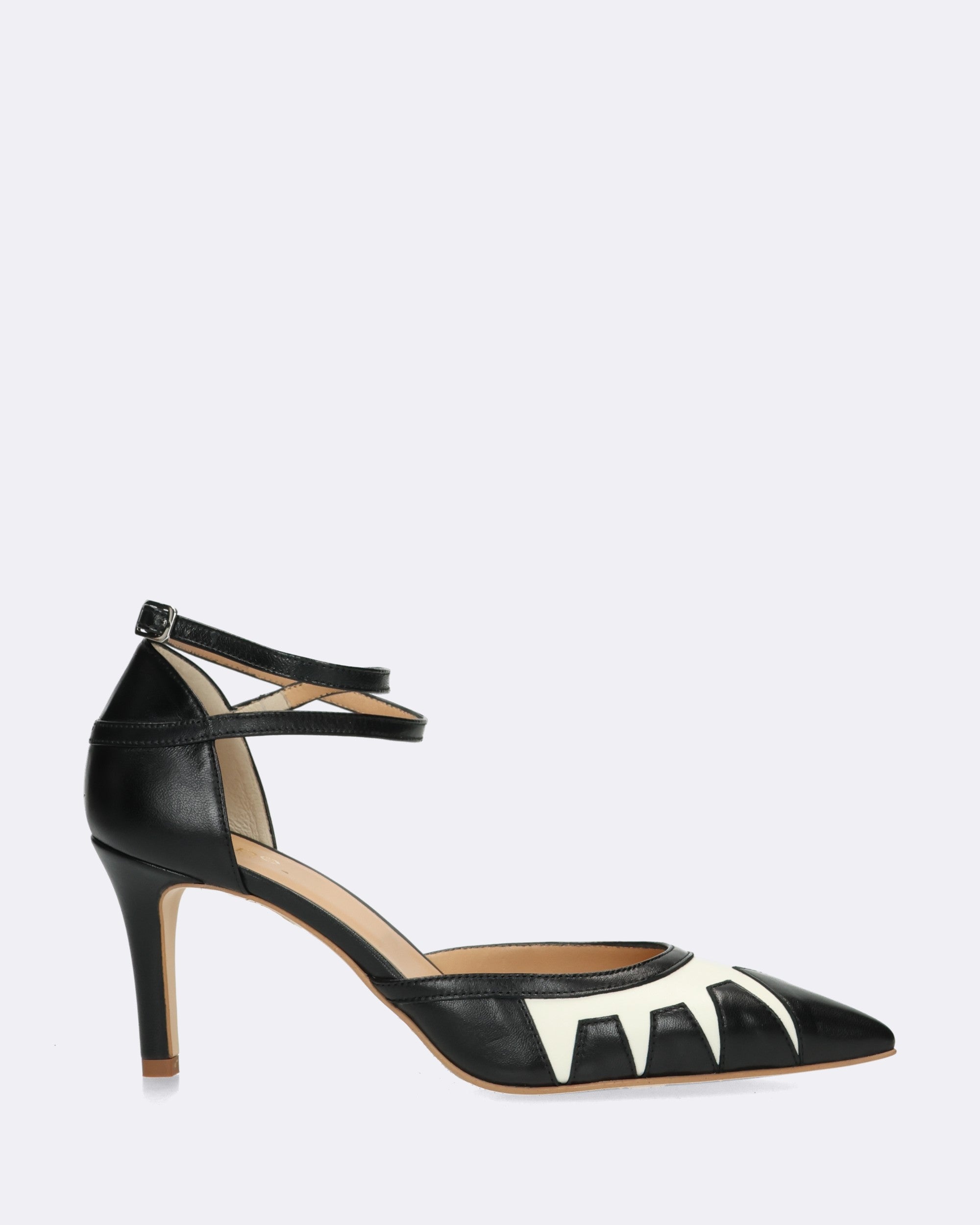 Decolletè in pelle nera e bianca, tacco ricoperto 75mm, sottopiede in pelle, suola in gomma, cinturino con fibbia, made in Italy, collezione donna Hope Primavera Estate 2025