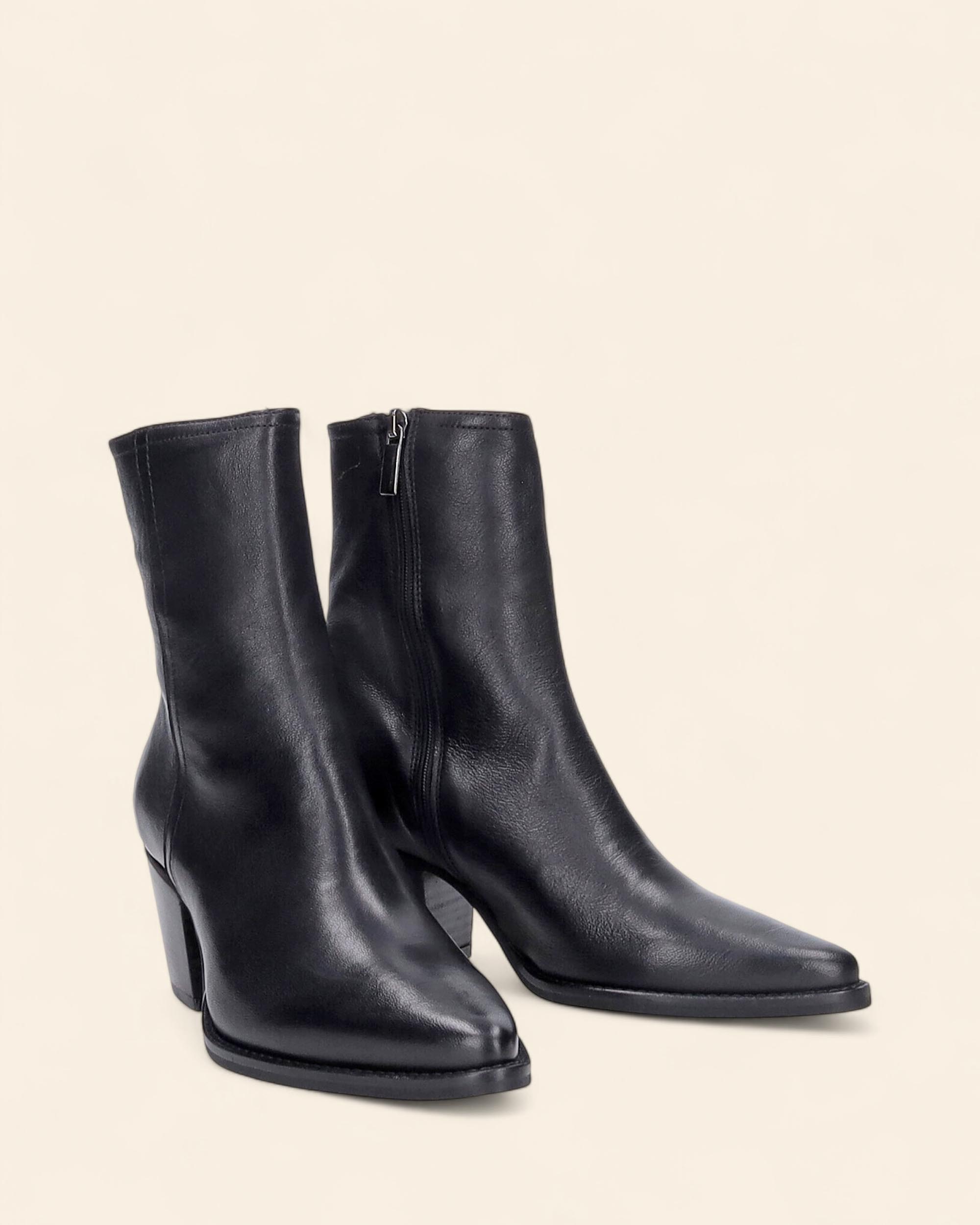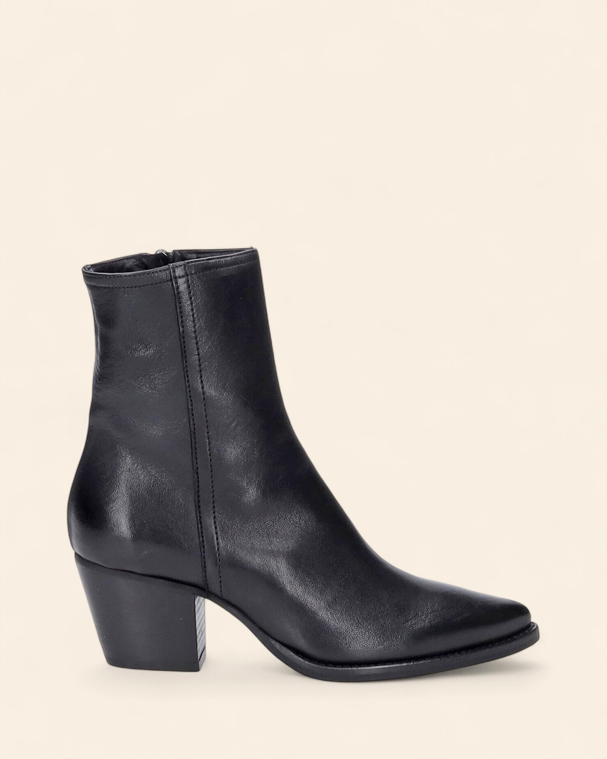 Stivaletti in pelle nera, fodera in pelle, sottopiede in pelle, a punta, suola in gomma, tacco 65mm, chiusura con zip interna, made in Italy, collezione donna Imma autunno inverno 2025/2026