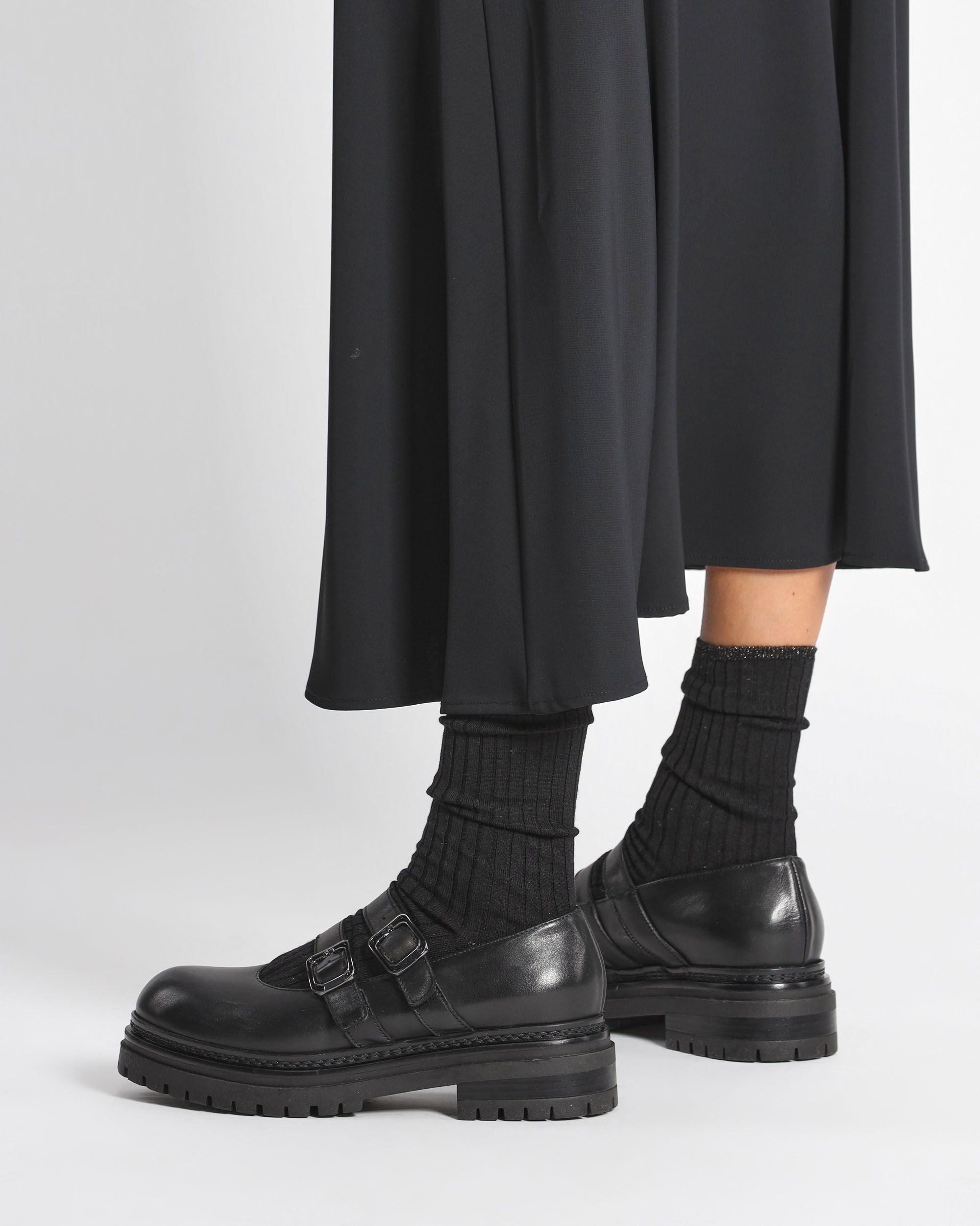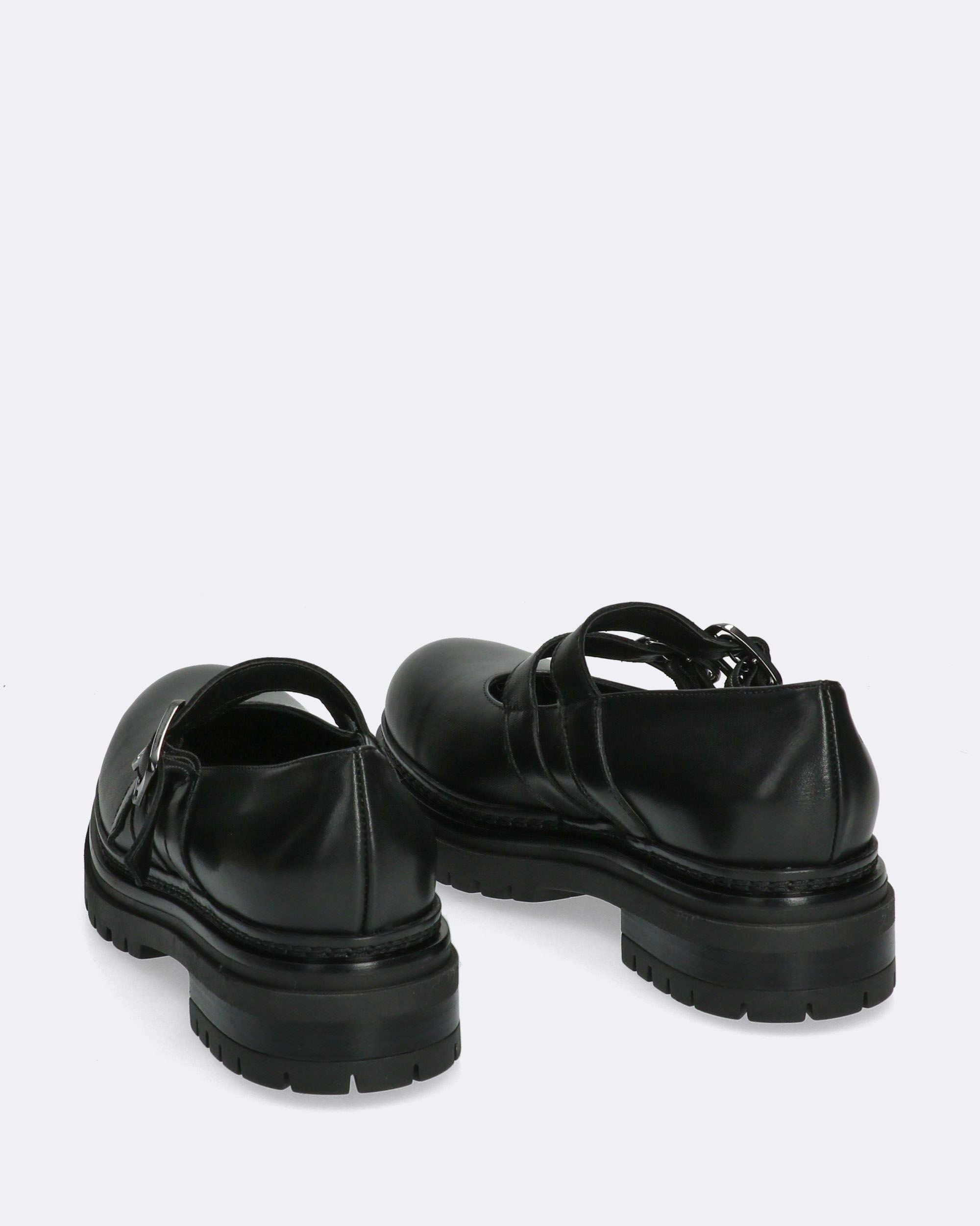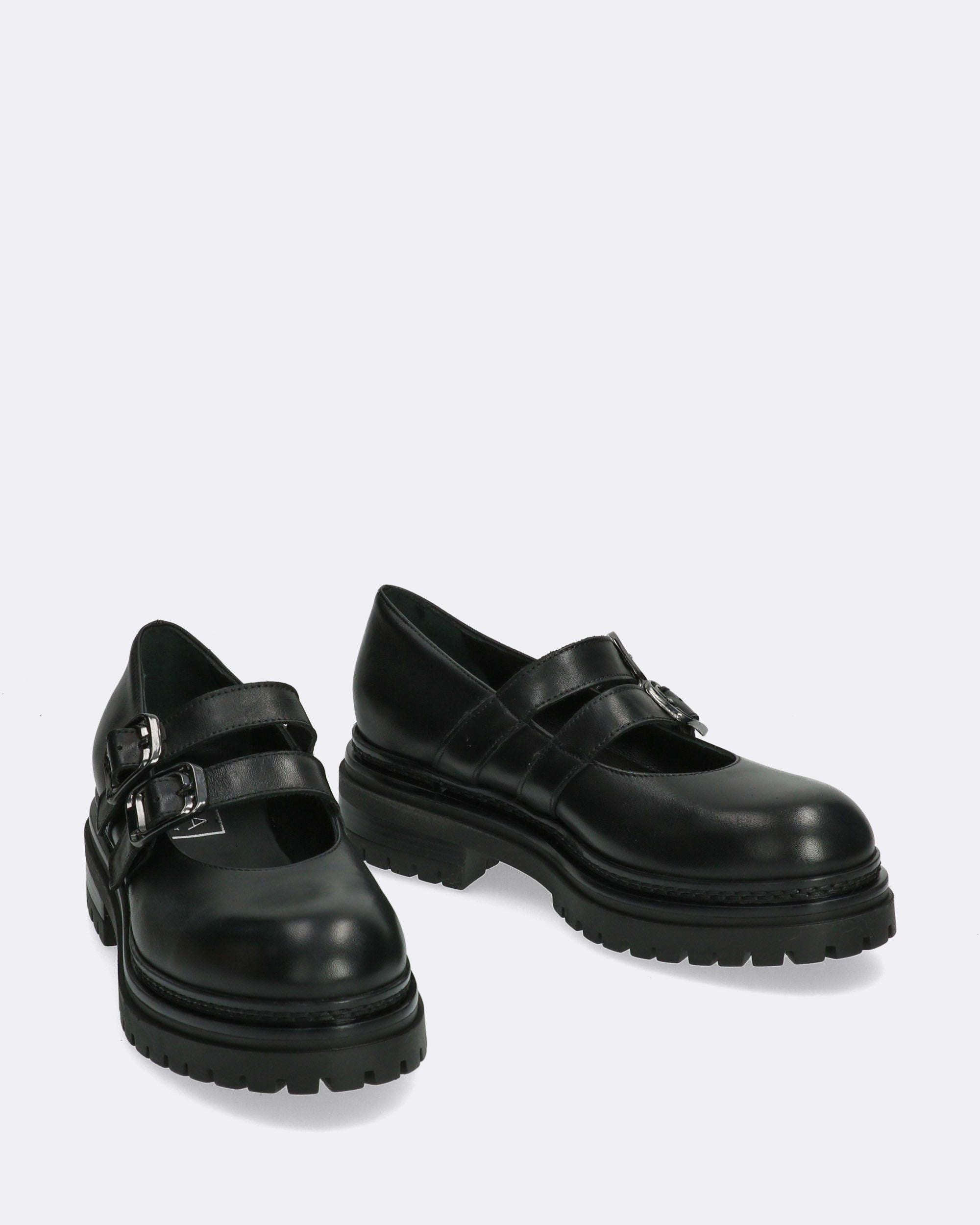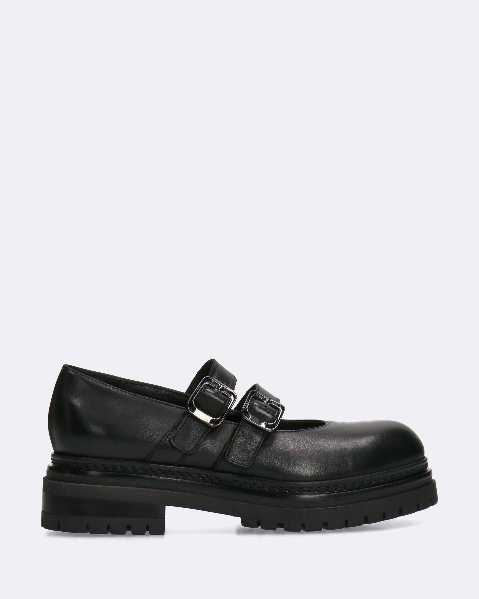 Ballerine con fibbie regolabili in pelle nera, suola in gomma, sottopiede in pelle, tacco 35mm,, platform 20mm, punta tonda, made in Italy, collezione donna Imma Autunno Inverno 2024/25