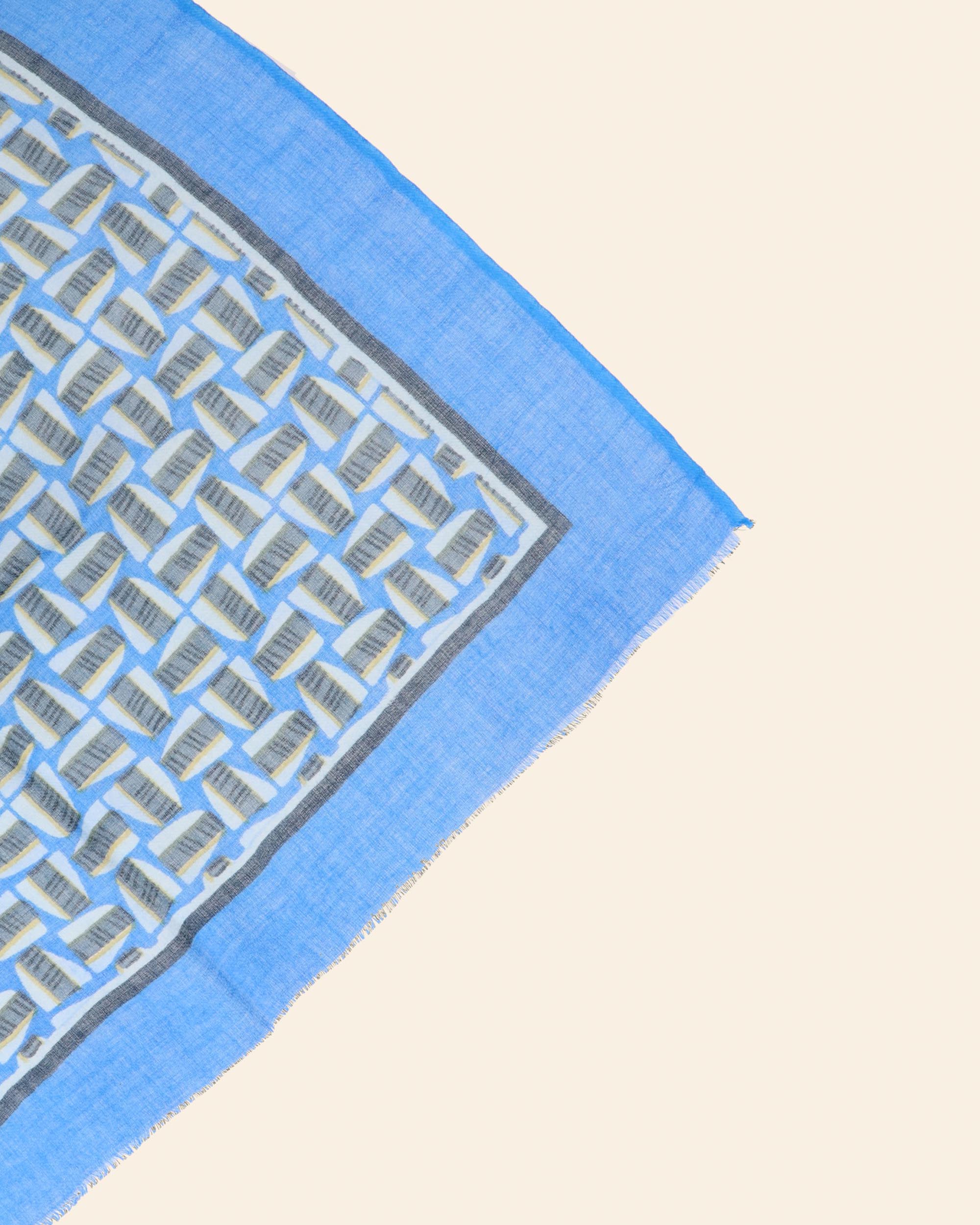 Foulard in garza di pura lana a fantasia azzurro, blu e avio con disegno della collezione,140 x 140 cm, collezione donna Maliparmi Autunno Inverno 2025/26